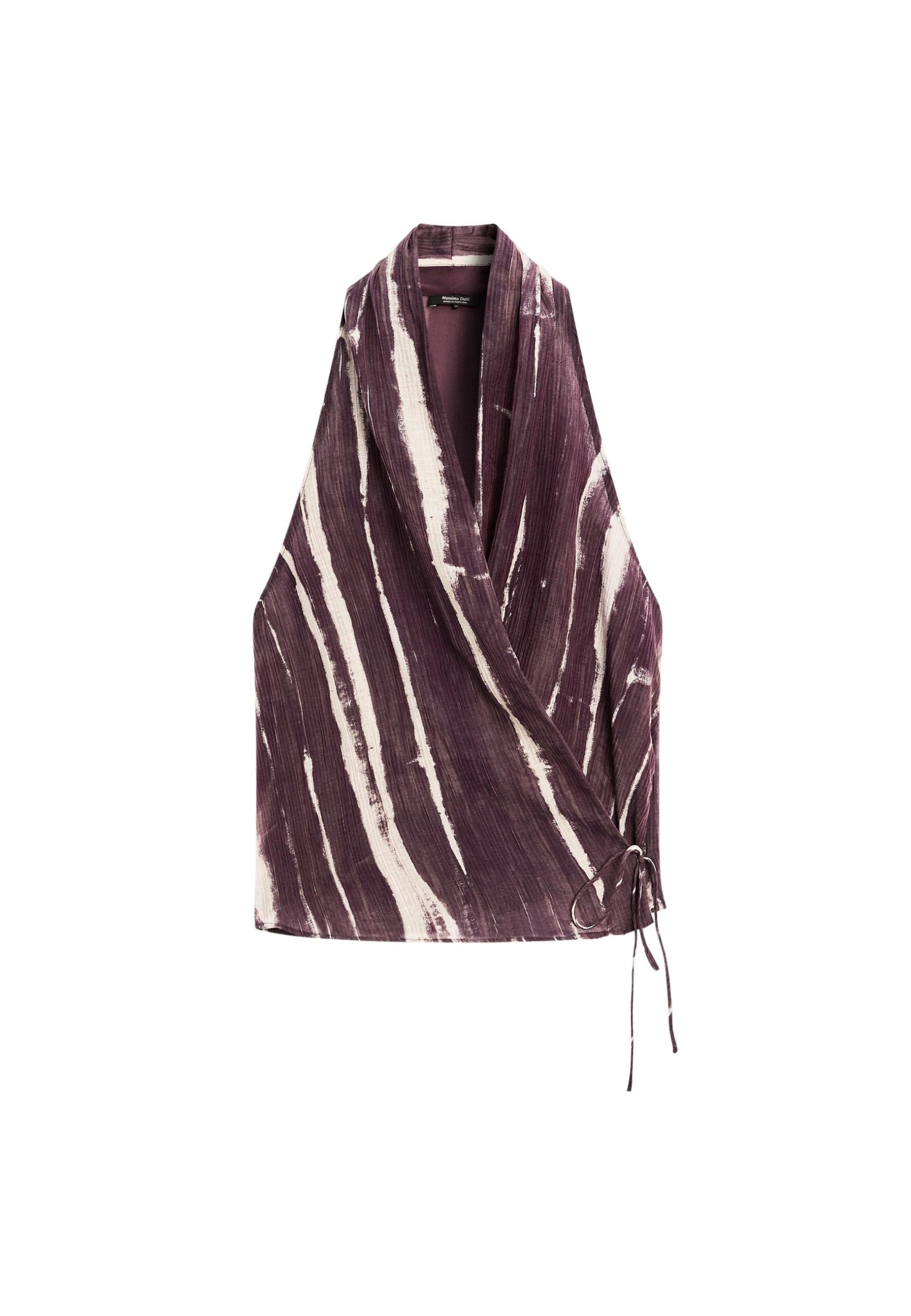STRIPE PRINT CROSSOVER HALTER NECK – Top – lilac