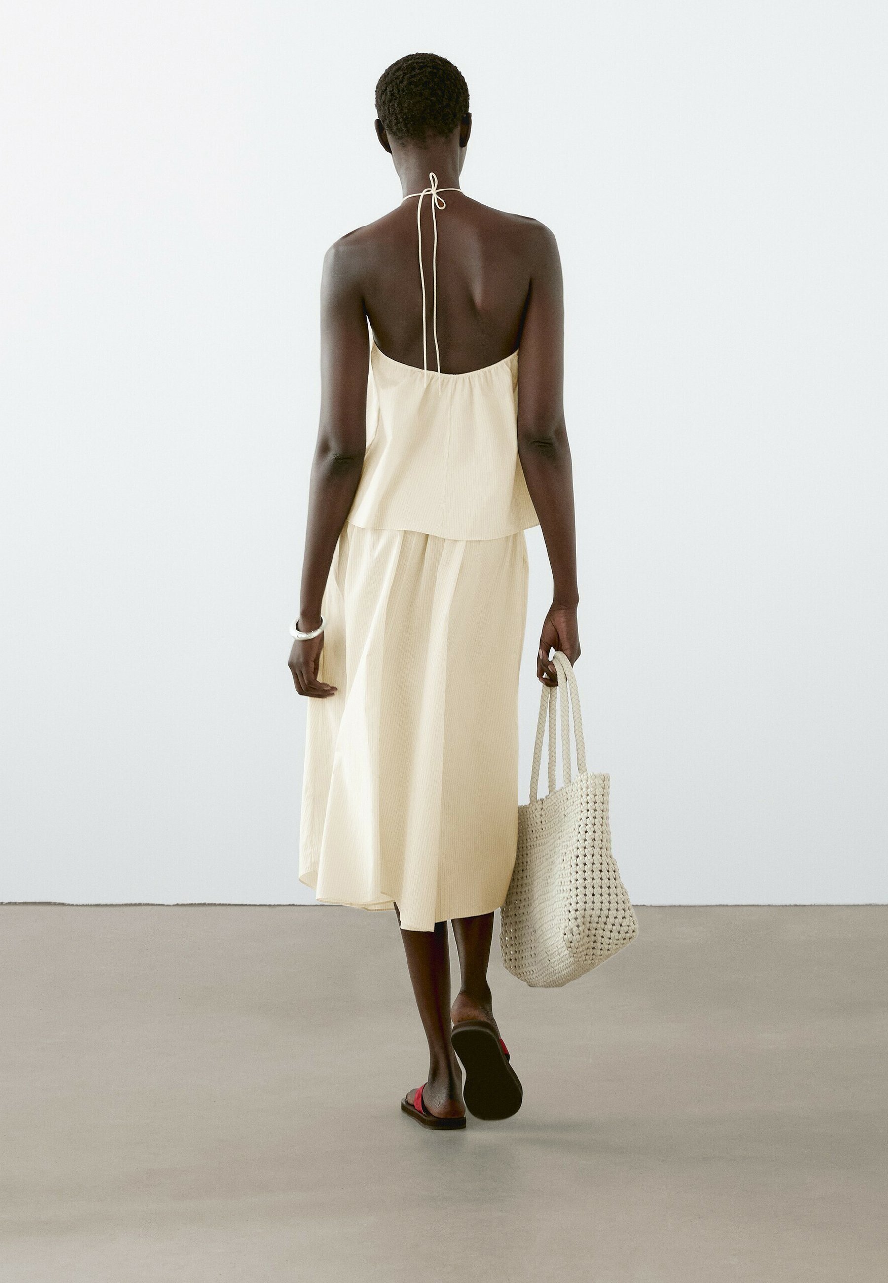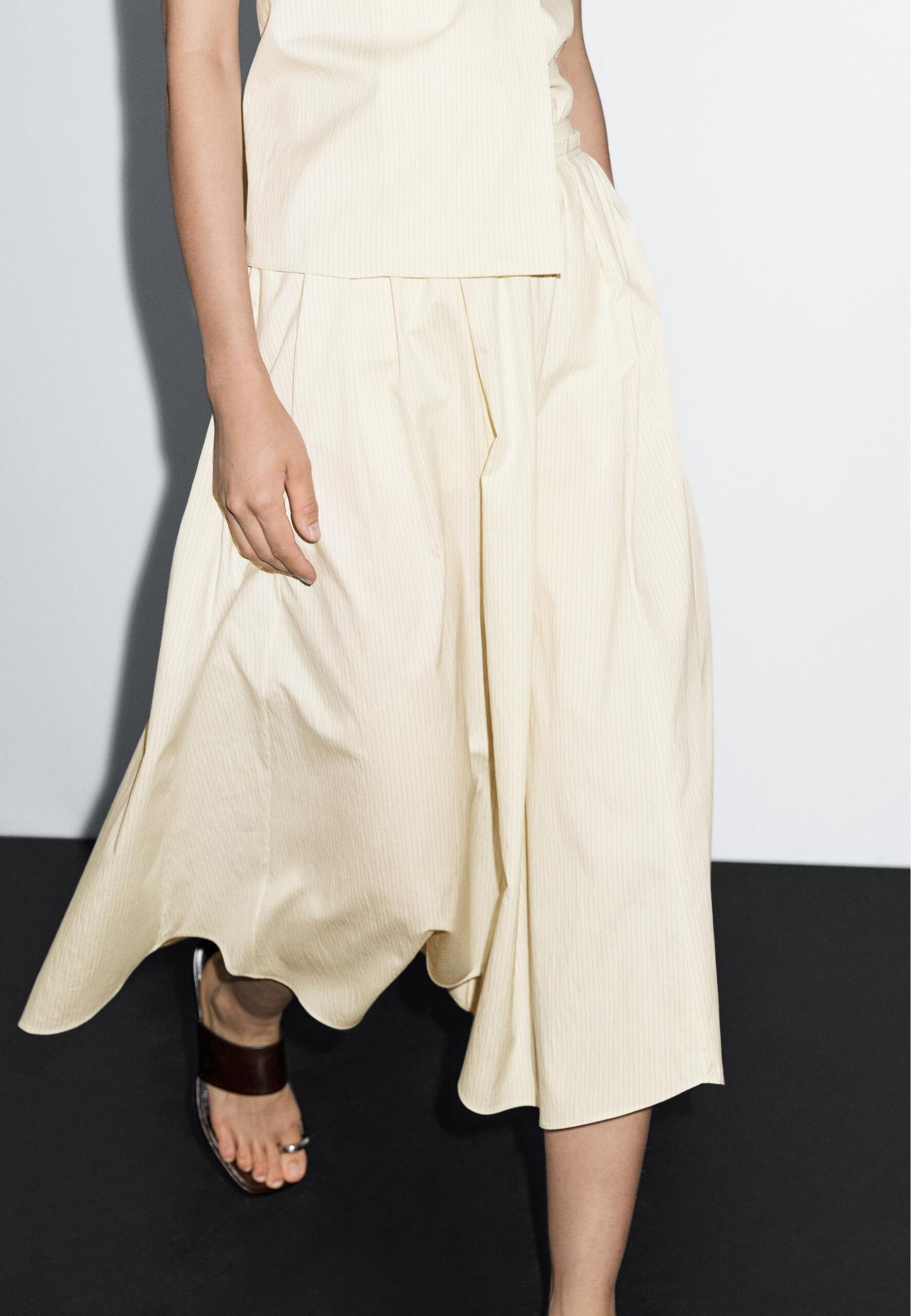 STRIPE PRINT FLARED MIDI – A-line skirt – mottled beige