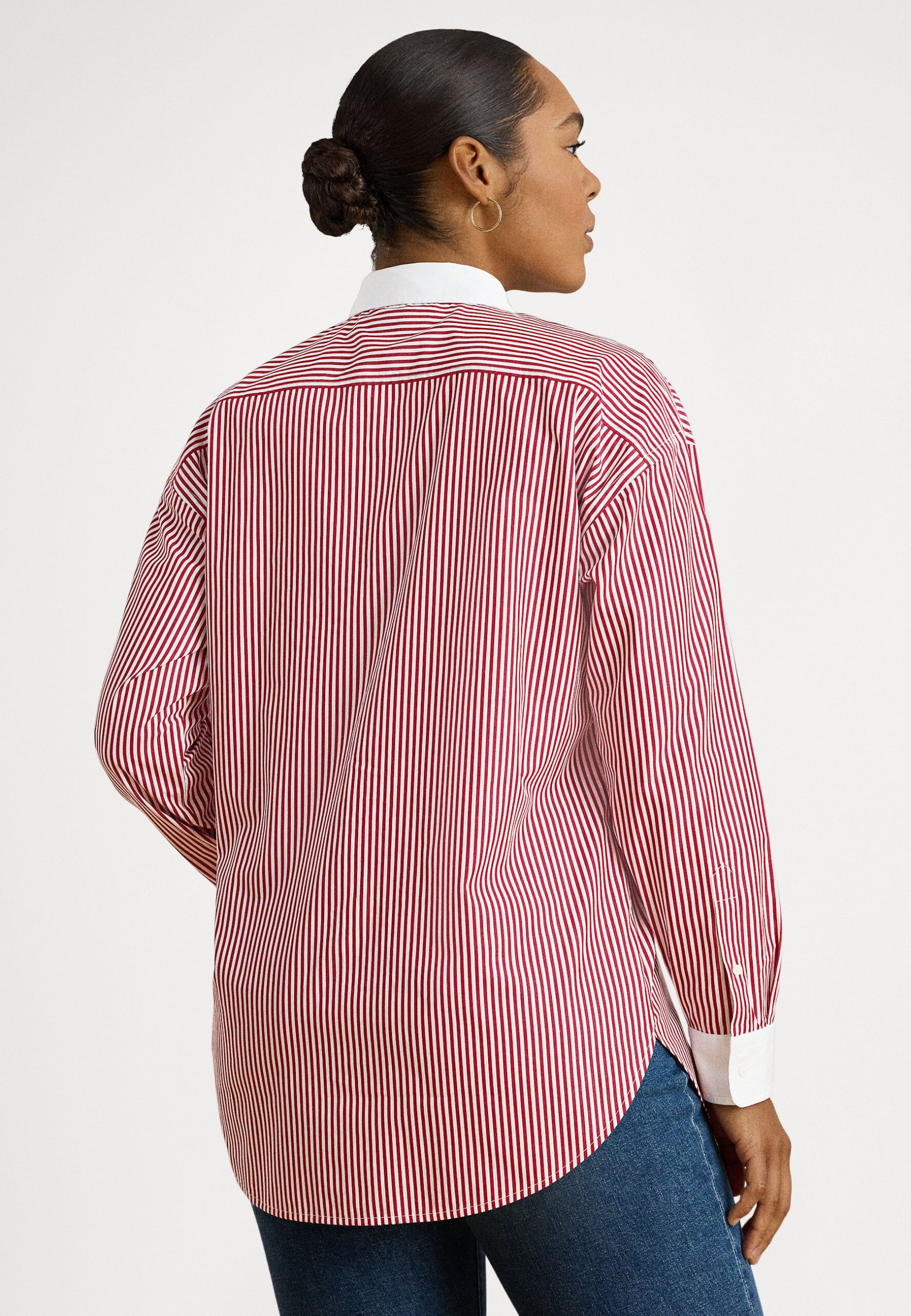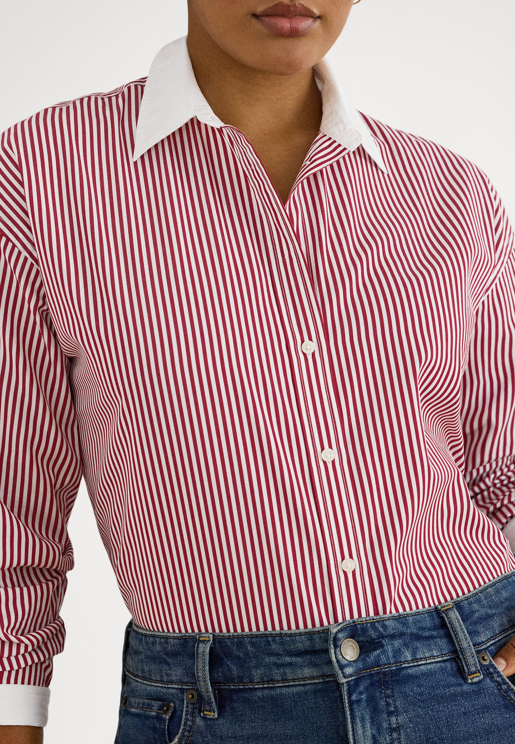 STRIPED COTTON BROADCLOTH SHIRT – Shirt – burgandy/white