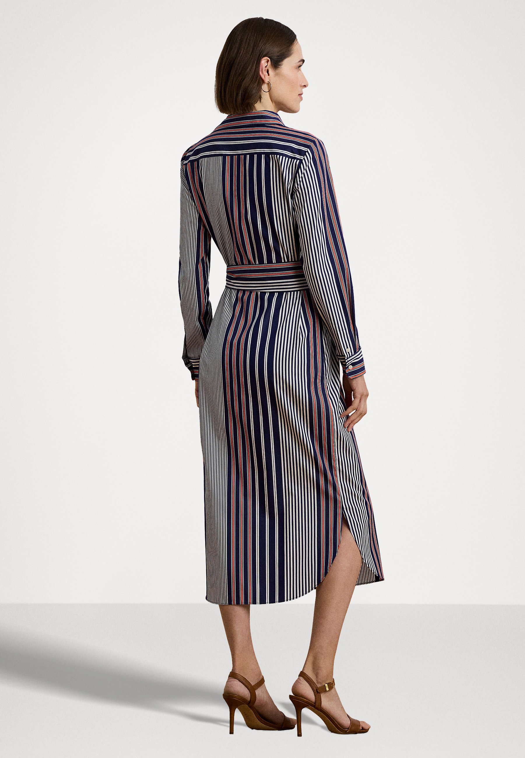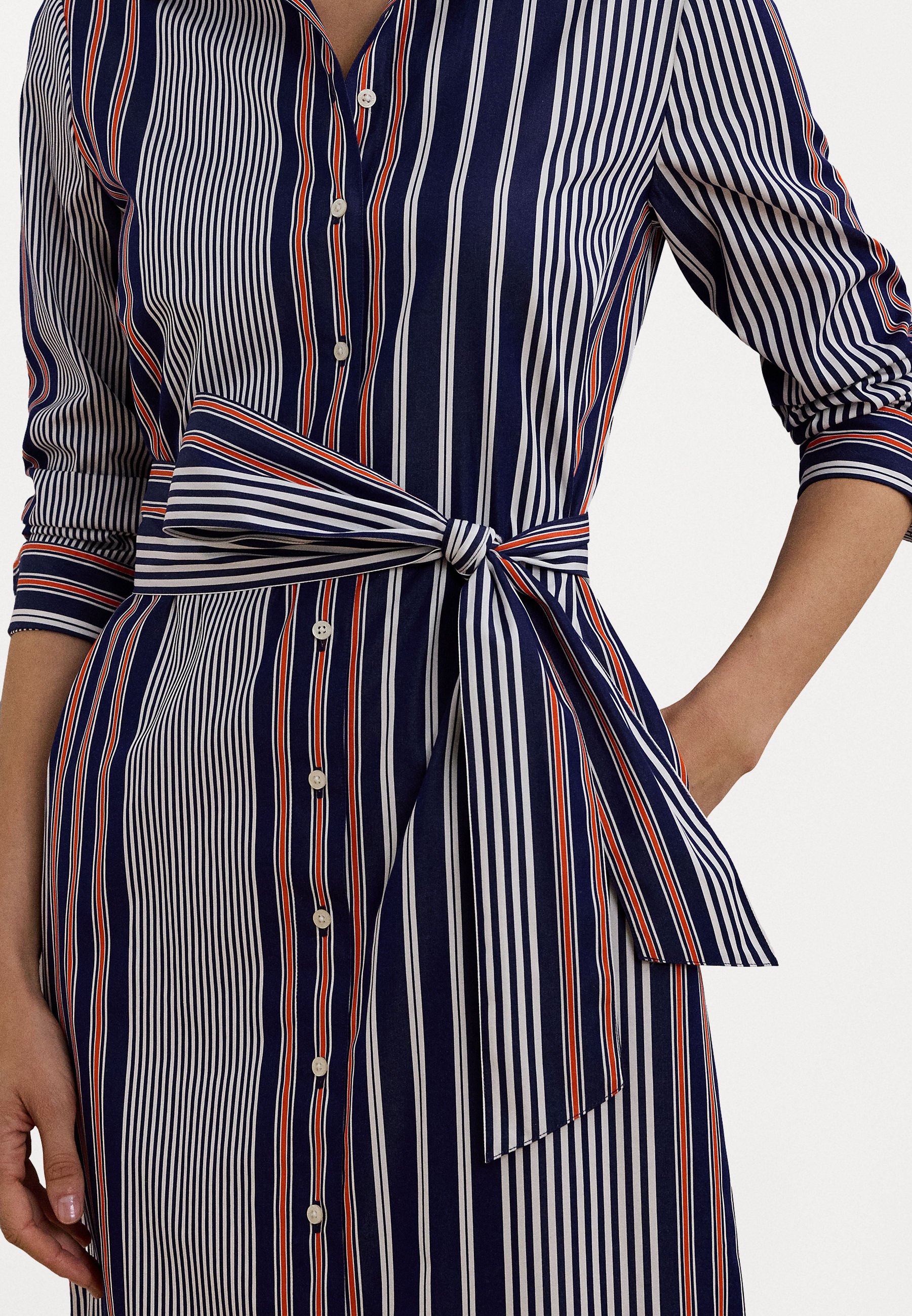 STRIPED COTTON BROADCLOTH SHIRTDRESS – Shirt dress – blue/white/orange