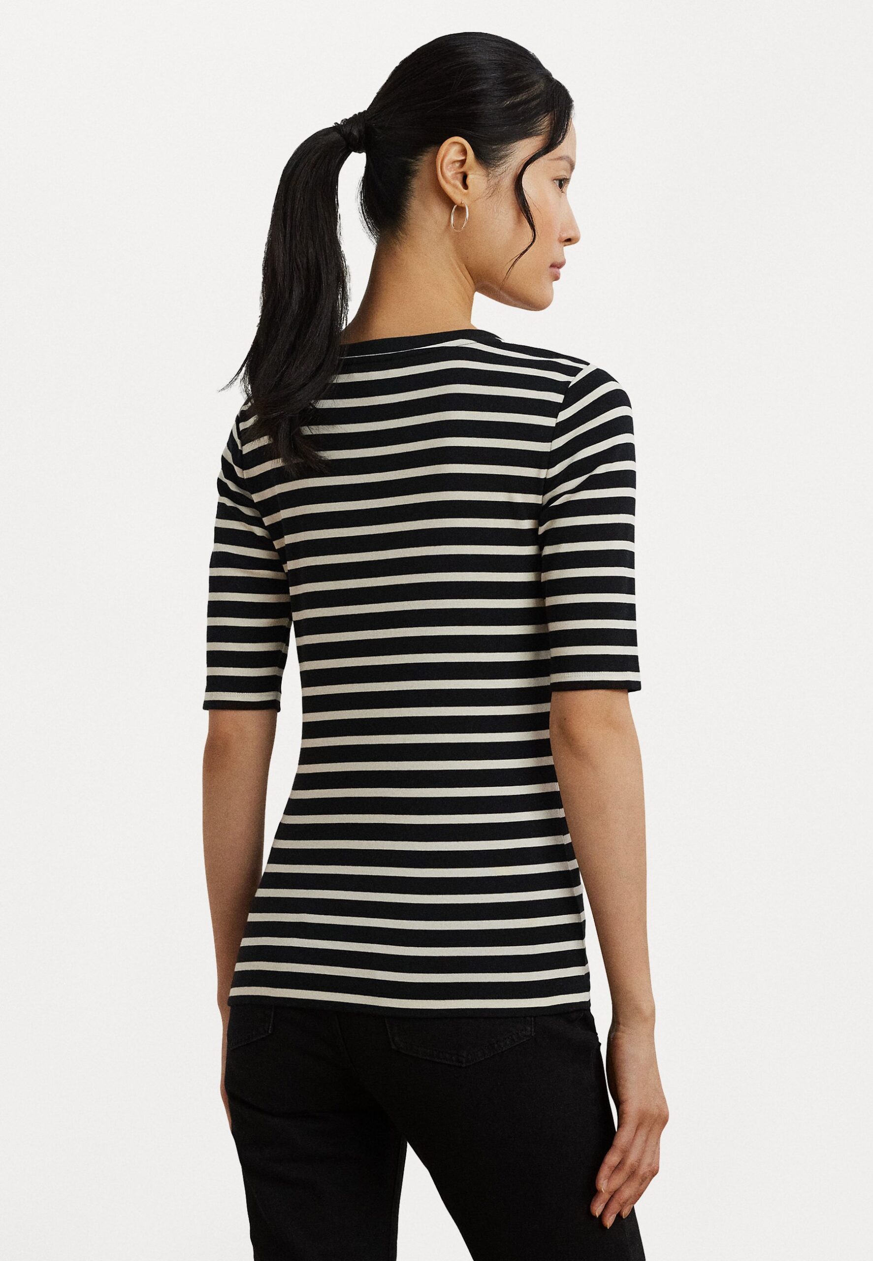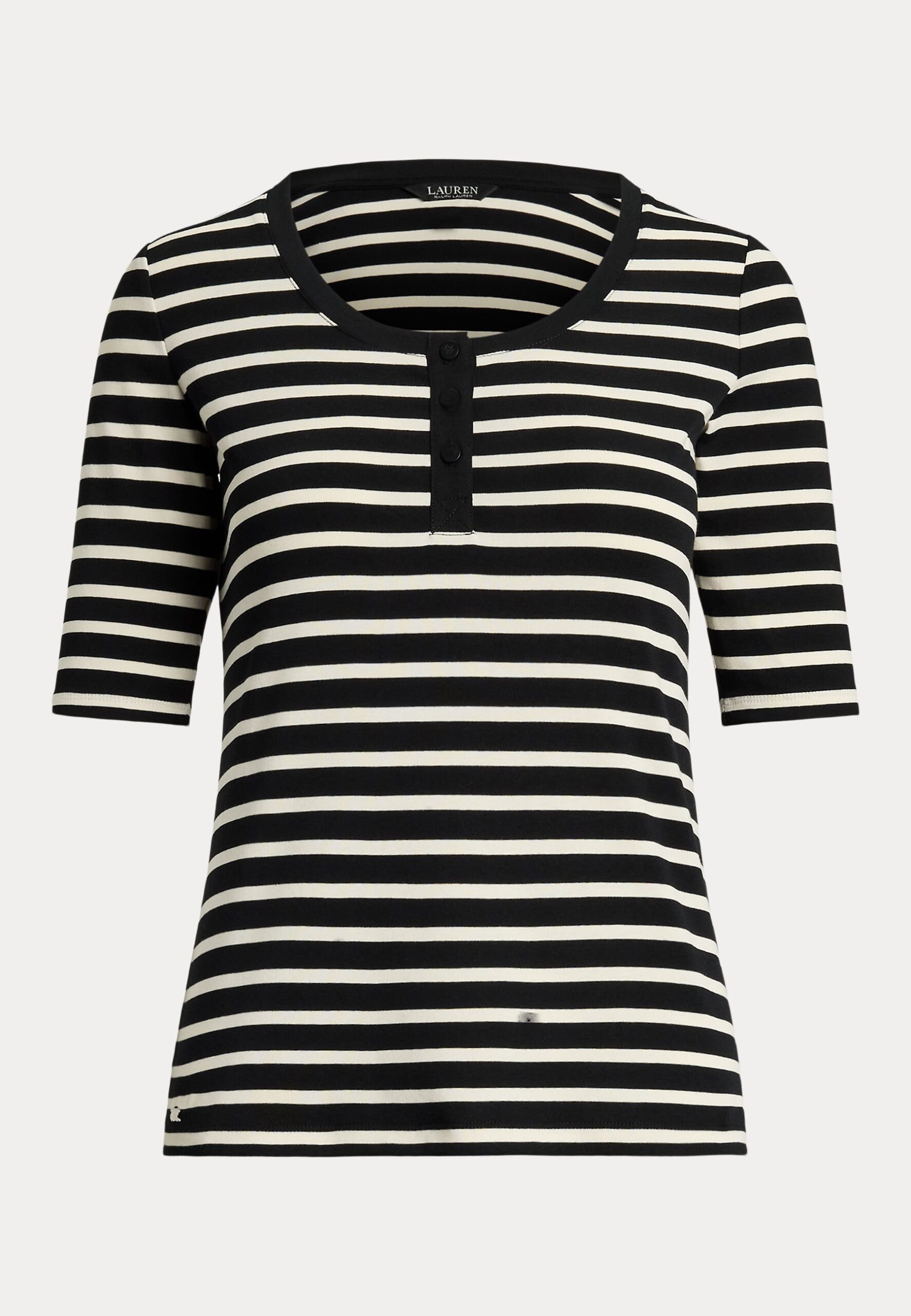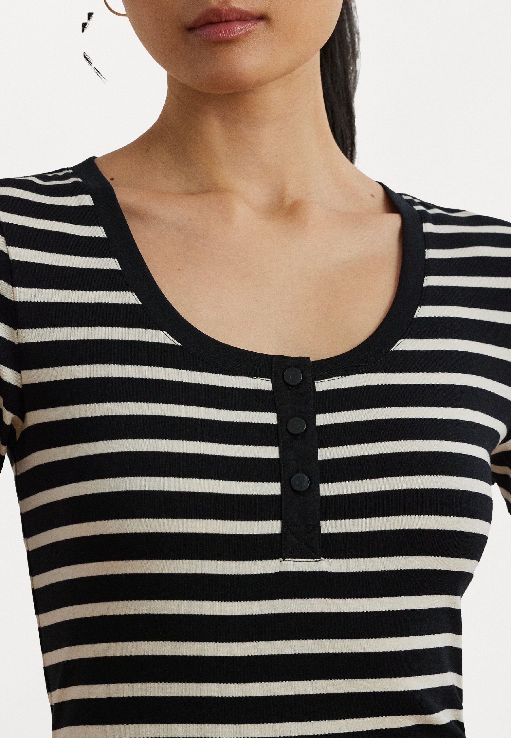 Striped Elbow Sleeve Henley Top – Print T-shirt – black/mascarpone cream