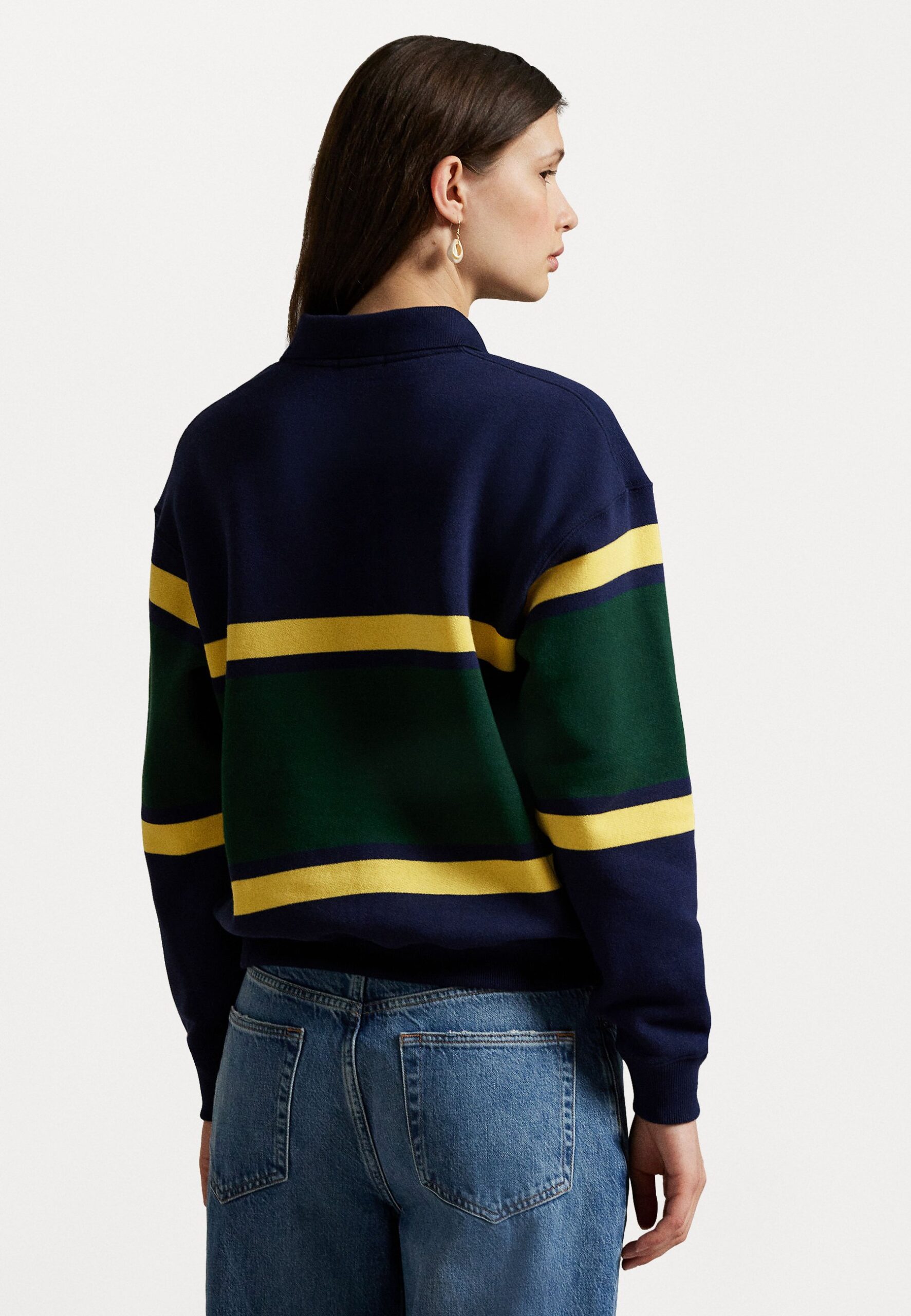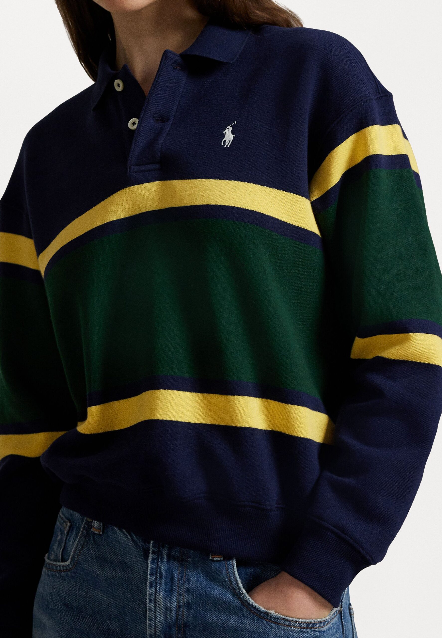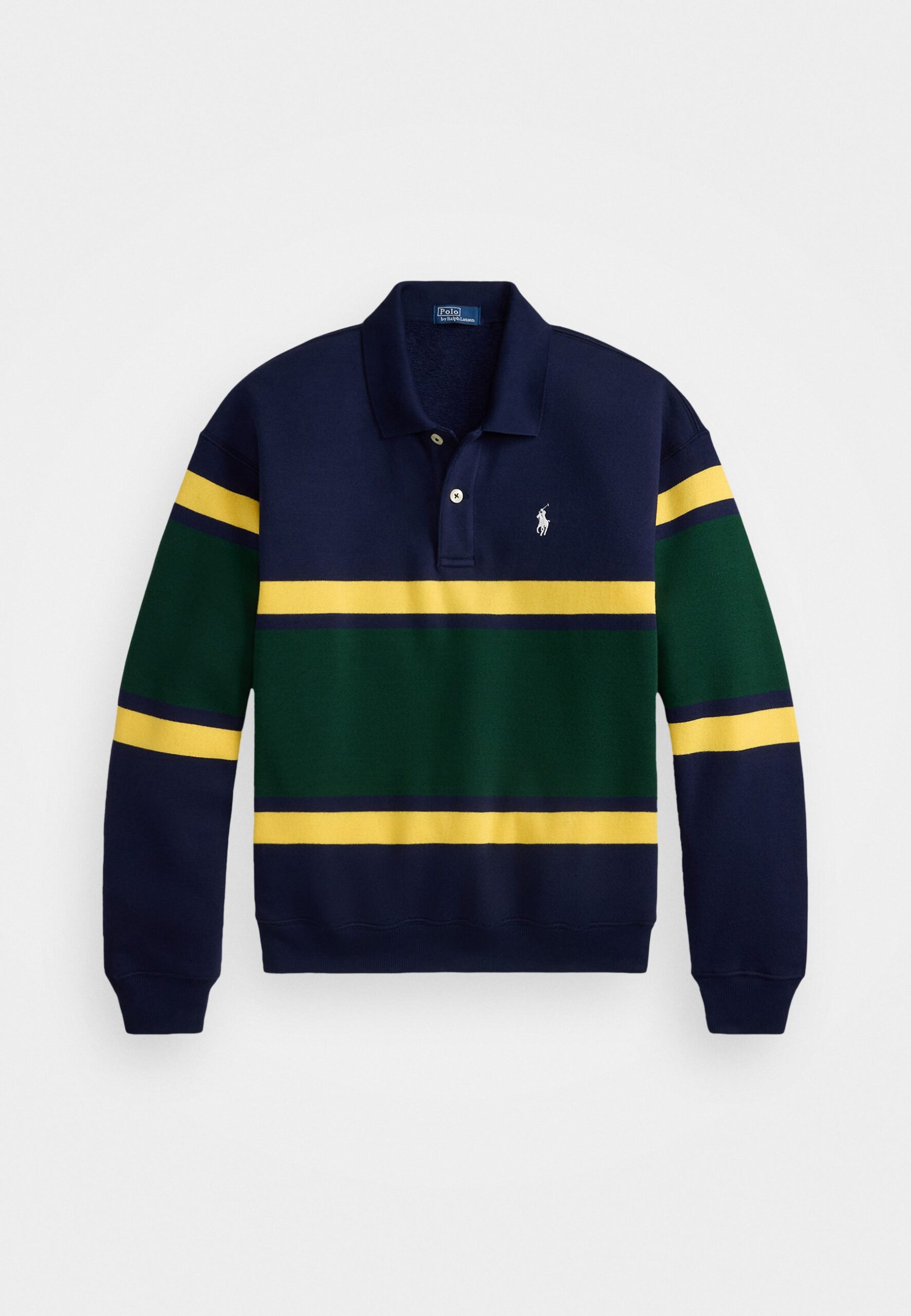 STRIPED FLEECE LONG SLEEVE POLO SHIRT – Sweatshirt – navy
