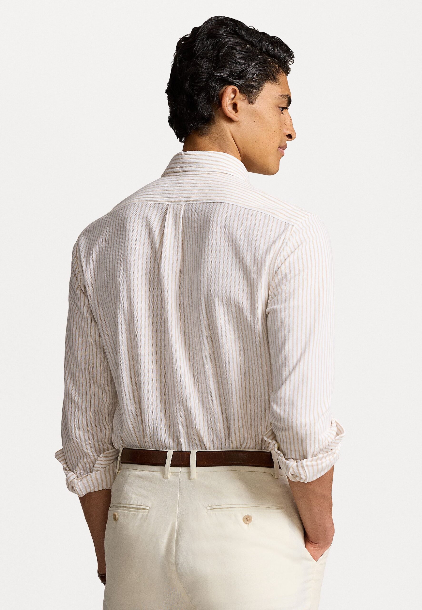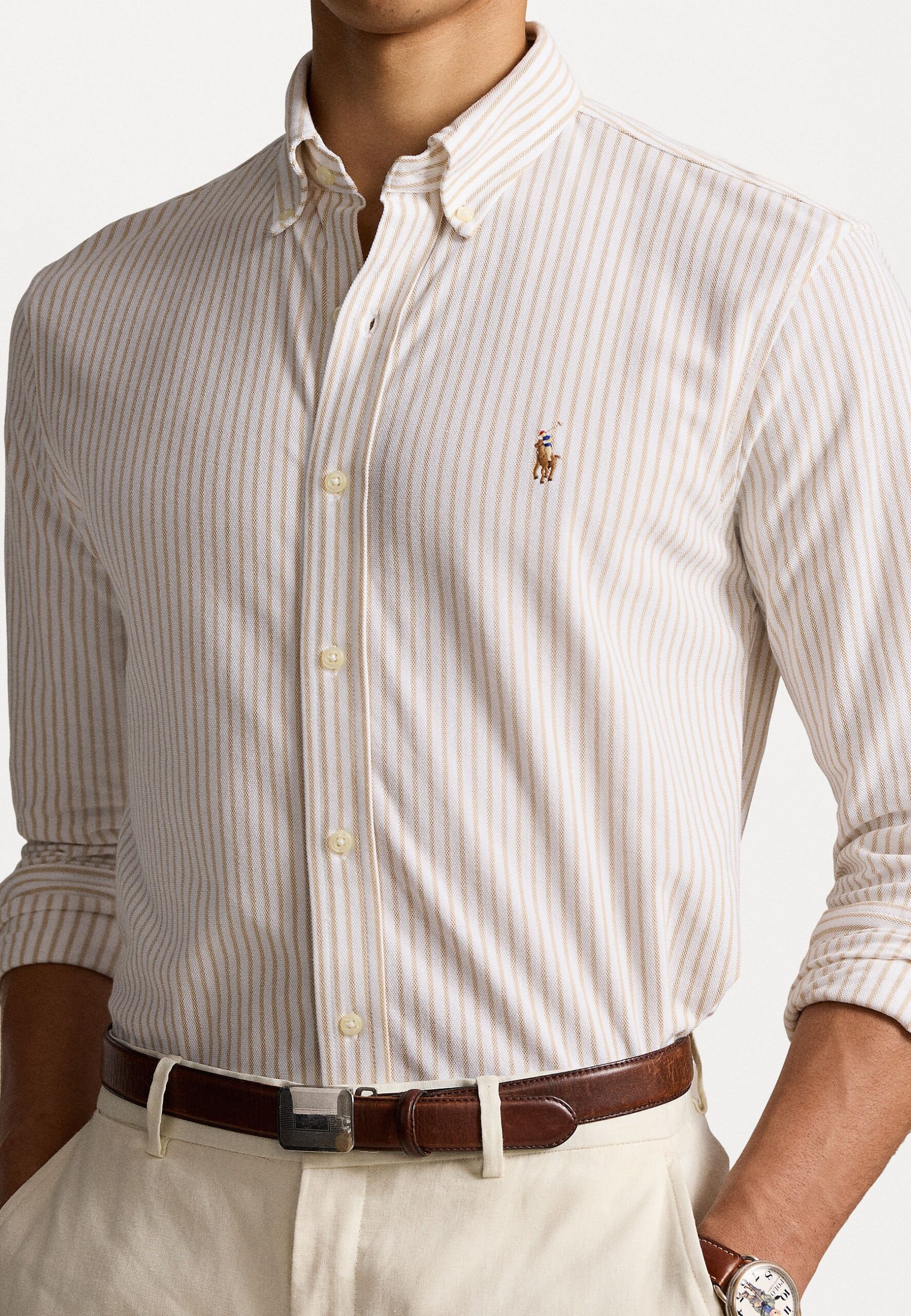 STRIPED KNIT OXFORD SHIRT – Shirt – white/coastal beige