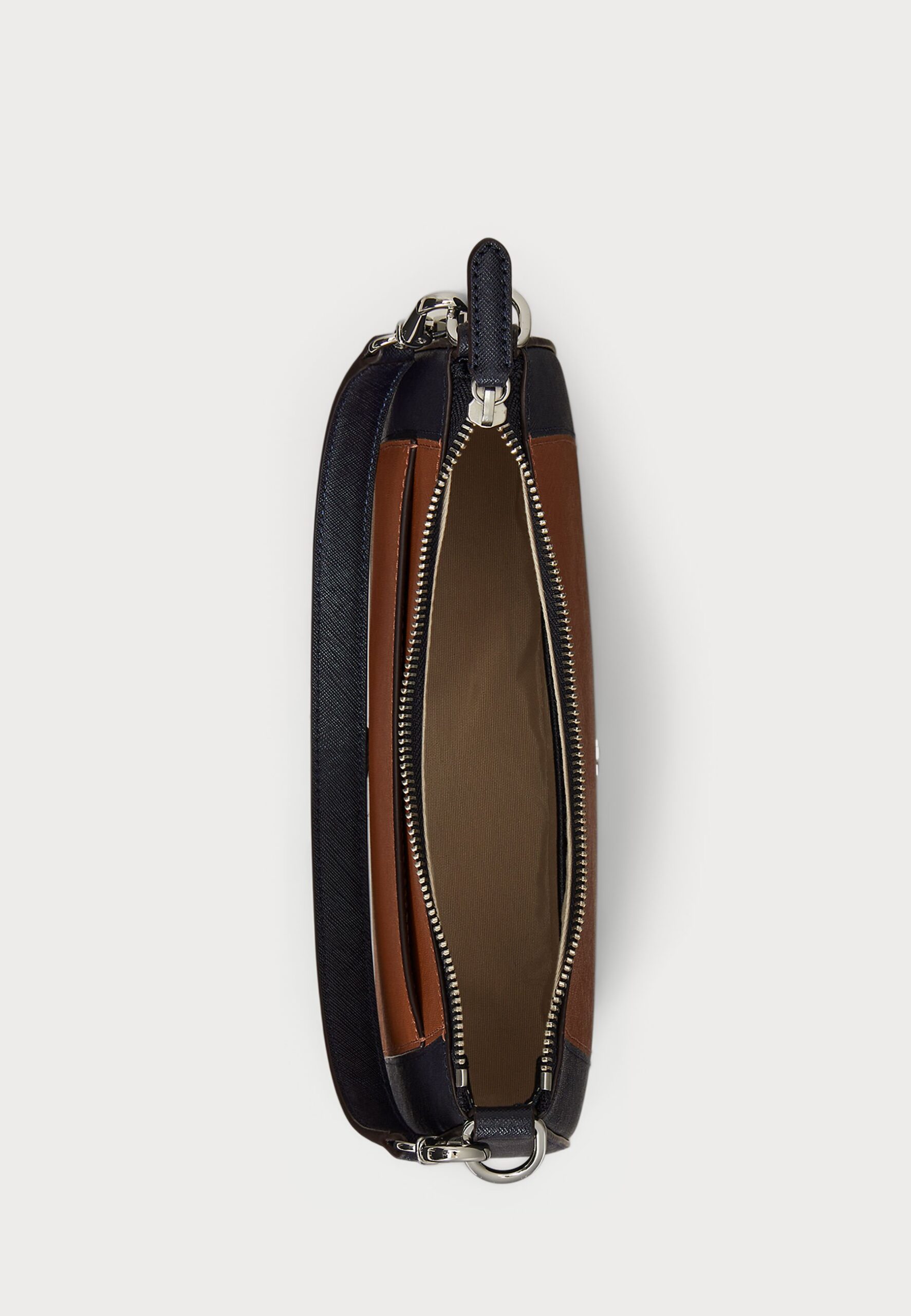 STRIPED LEATHER MEDIUM DANNI BAG – Handbag – brown/navy