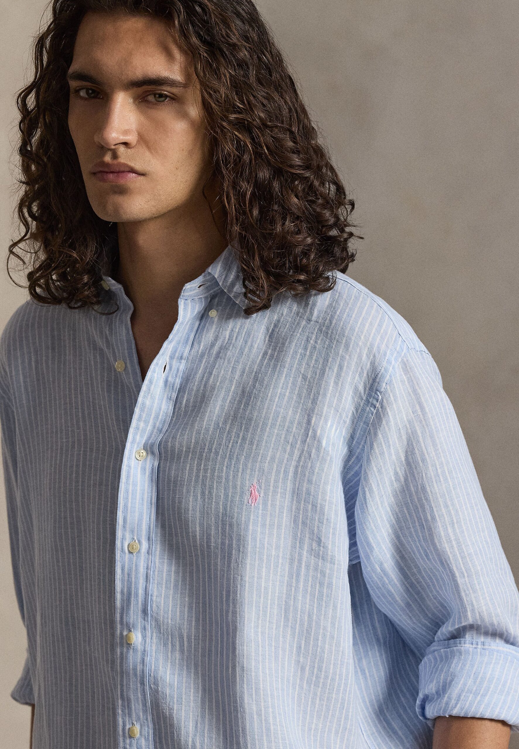 STRIPED LINEN SHIRT – Shirt – blue/white