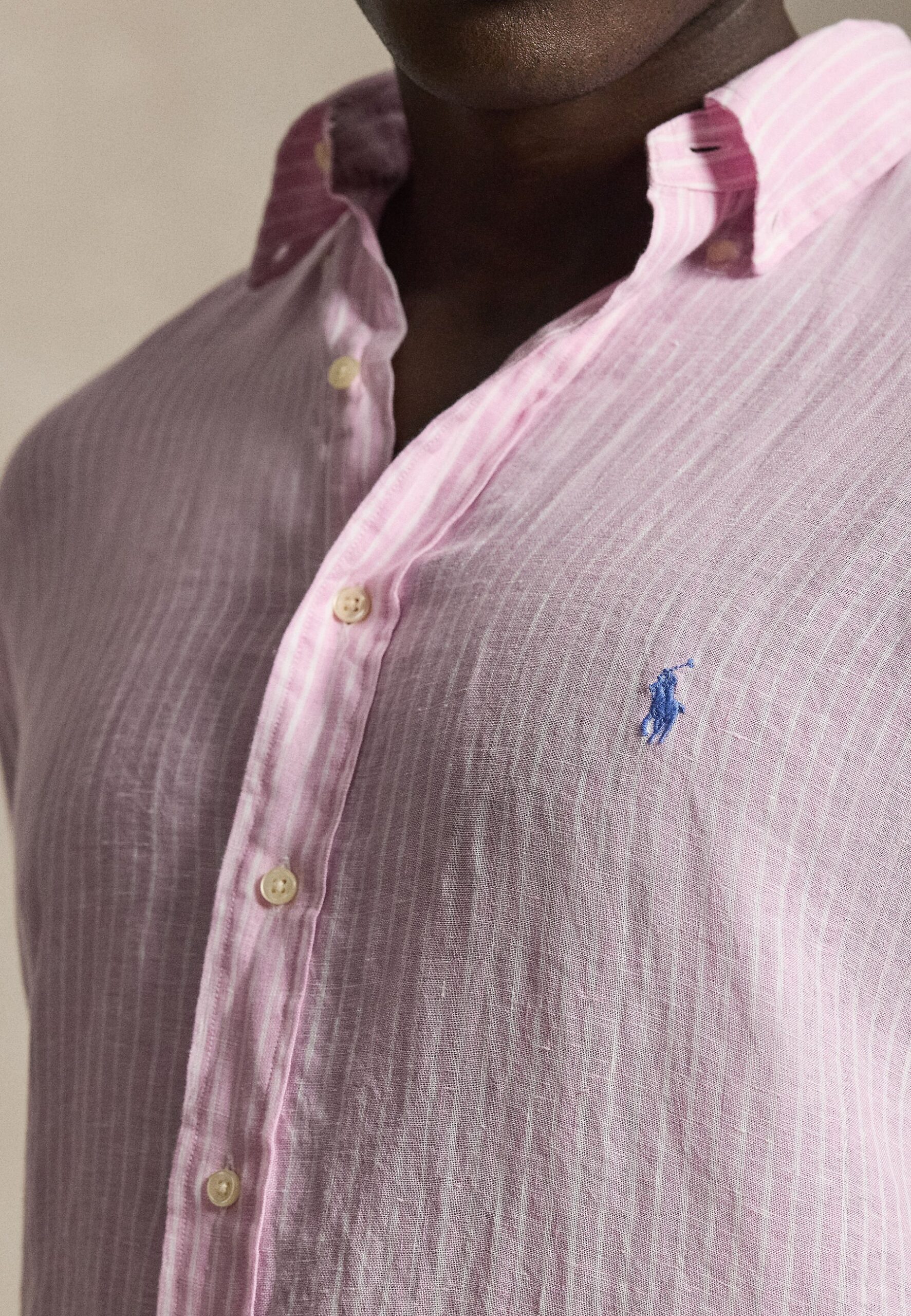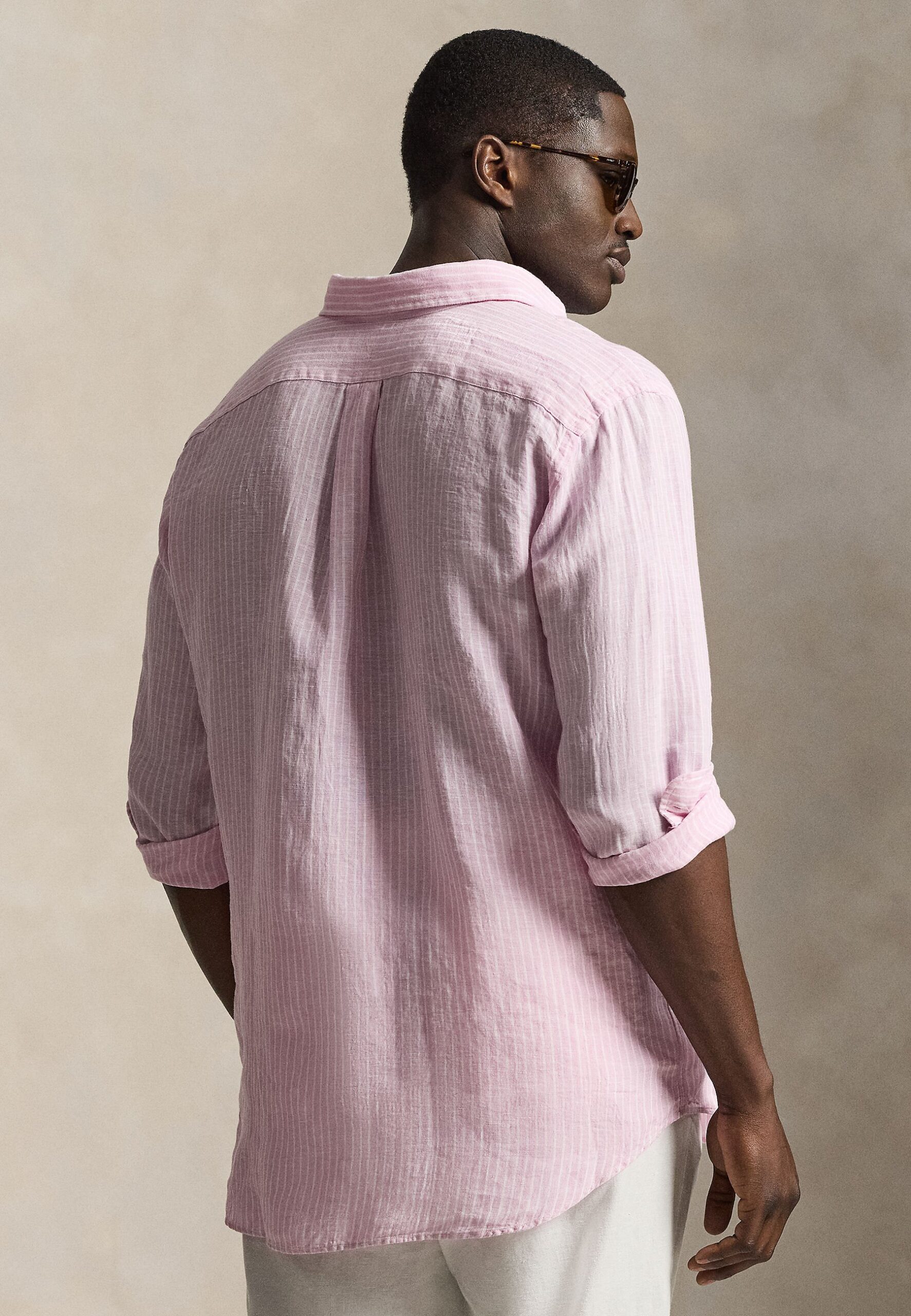 STRIPED LINEN SHIRT – Shirt – pink/white