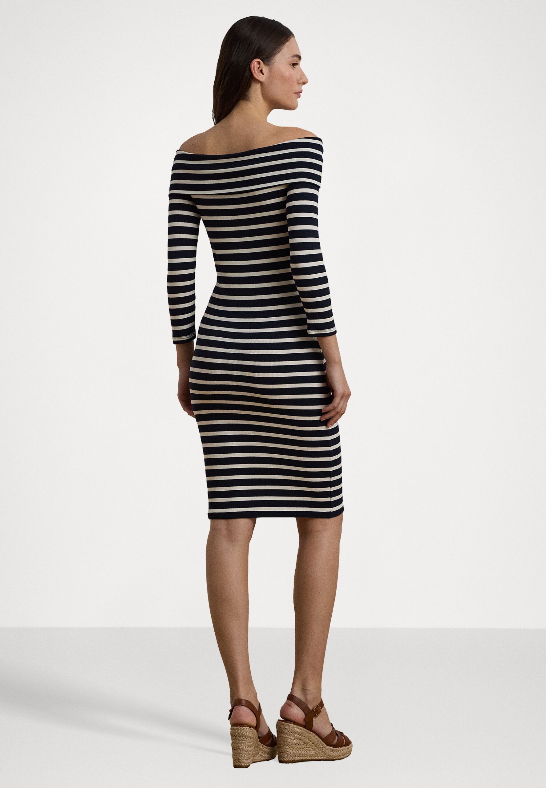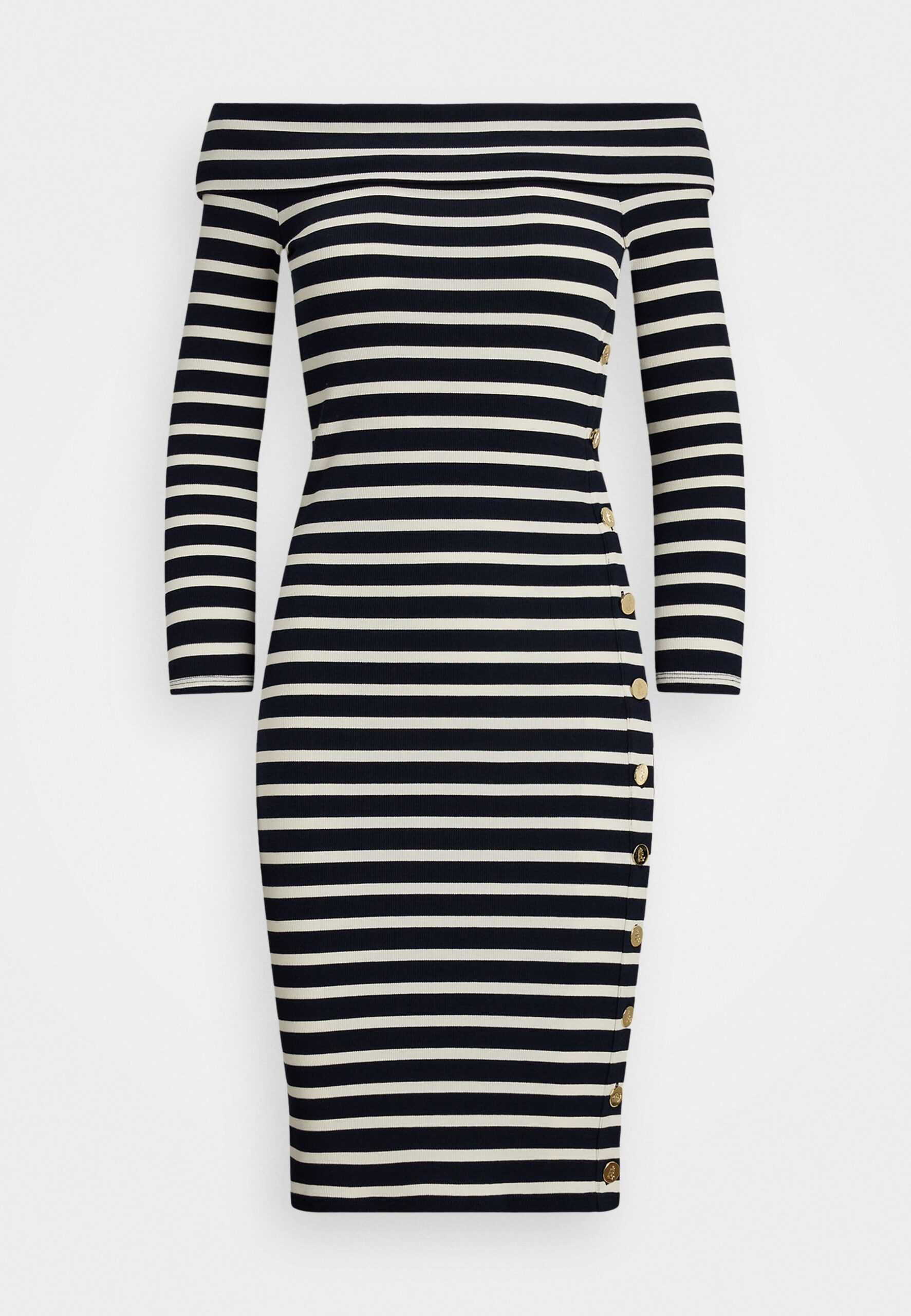 STRIPED RIBBED OFF THE SHOULDER DRESS – Shift dress – lauren navy/mascarpone cream