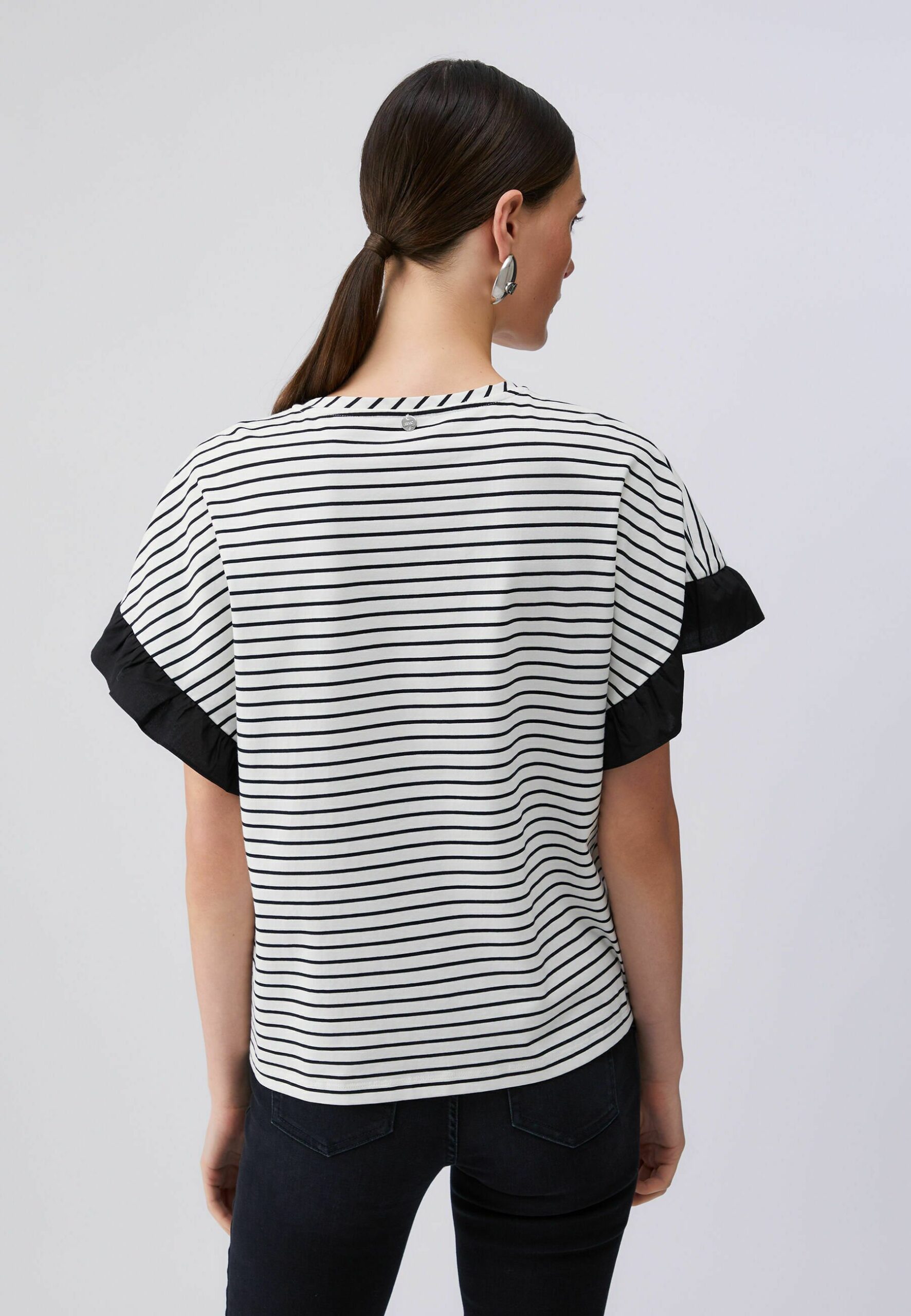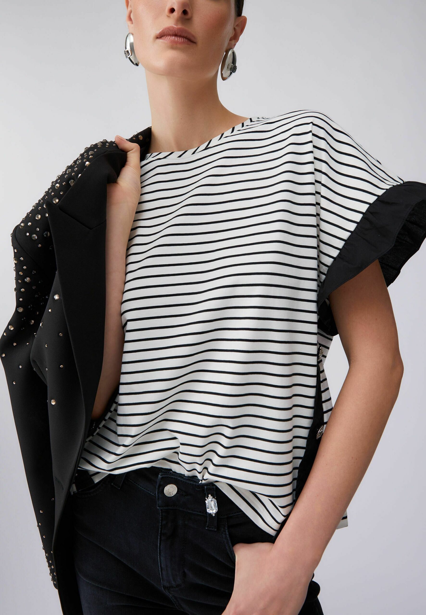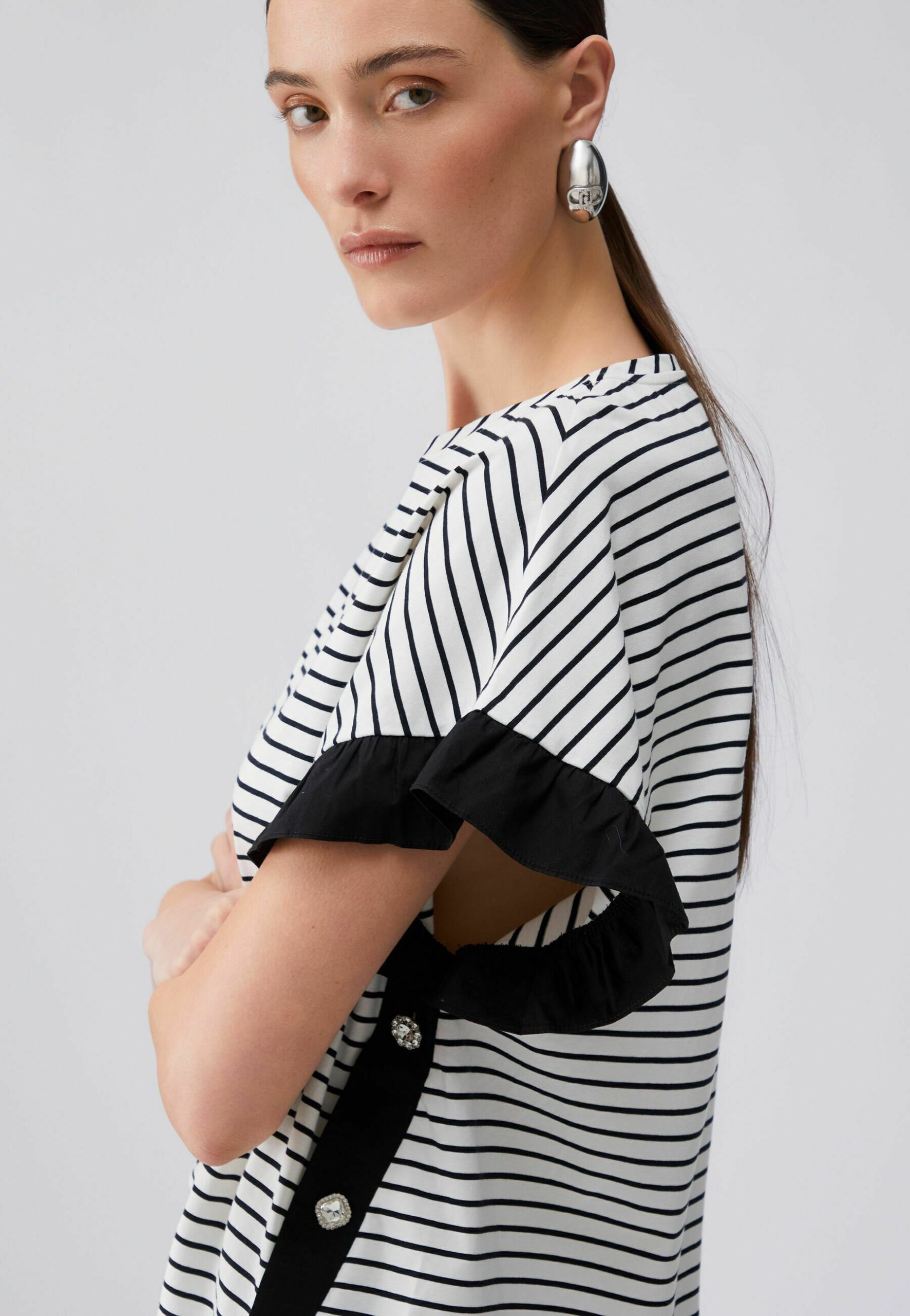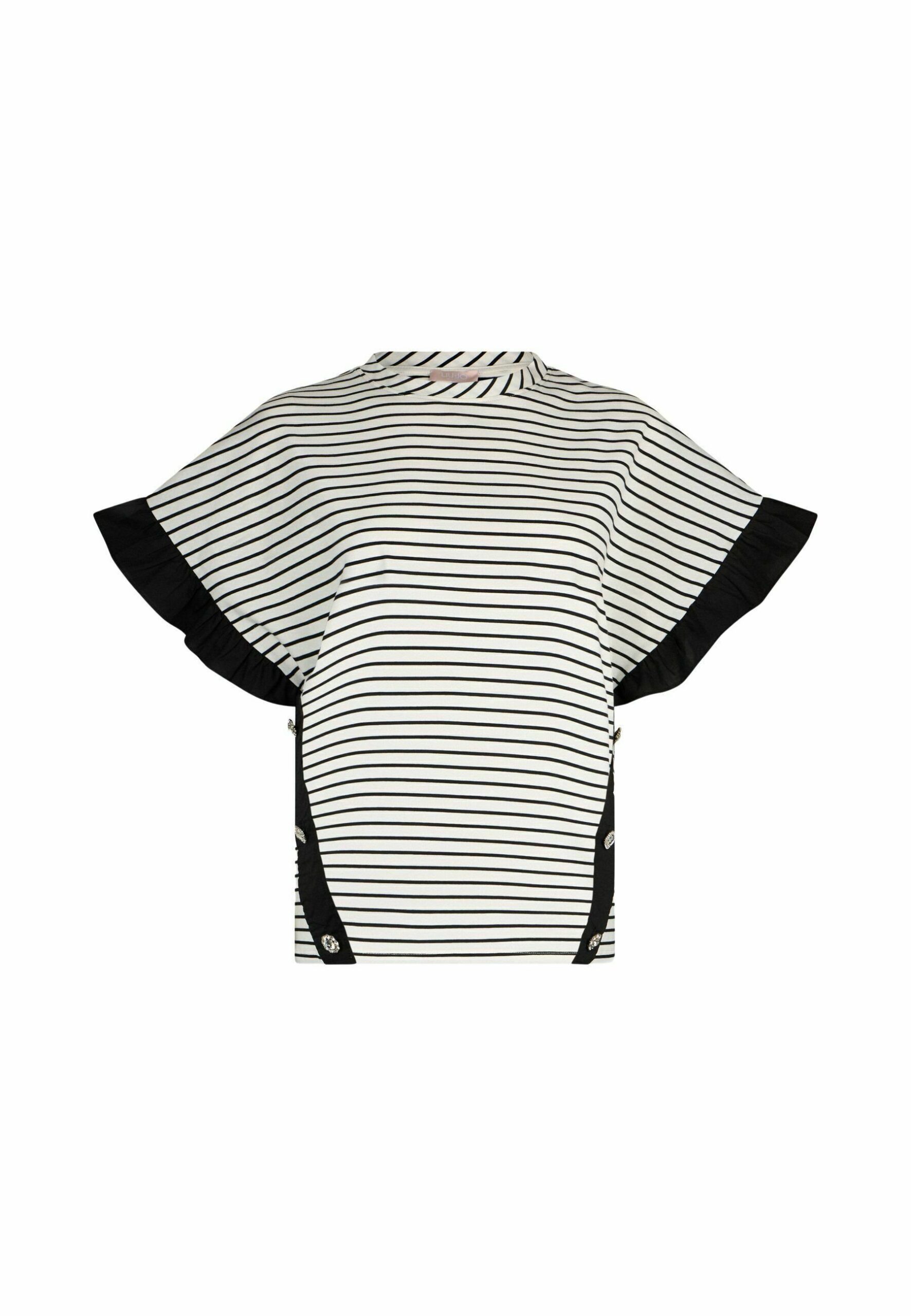 STRIPED WITH BEJEWELLED BUTTONS – Print T-shirt – black