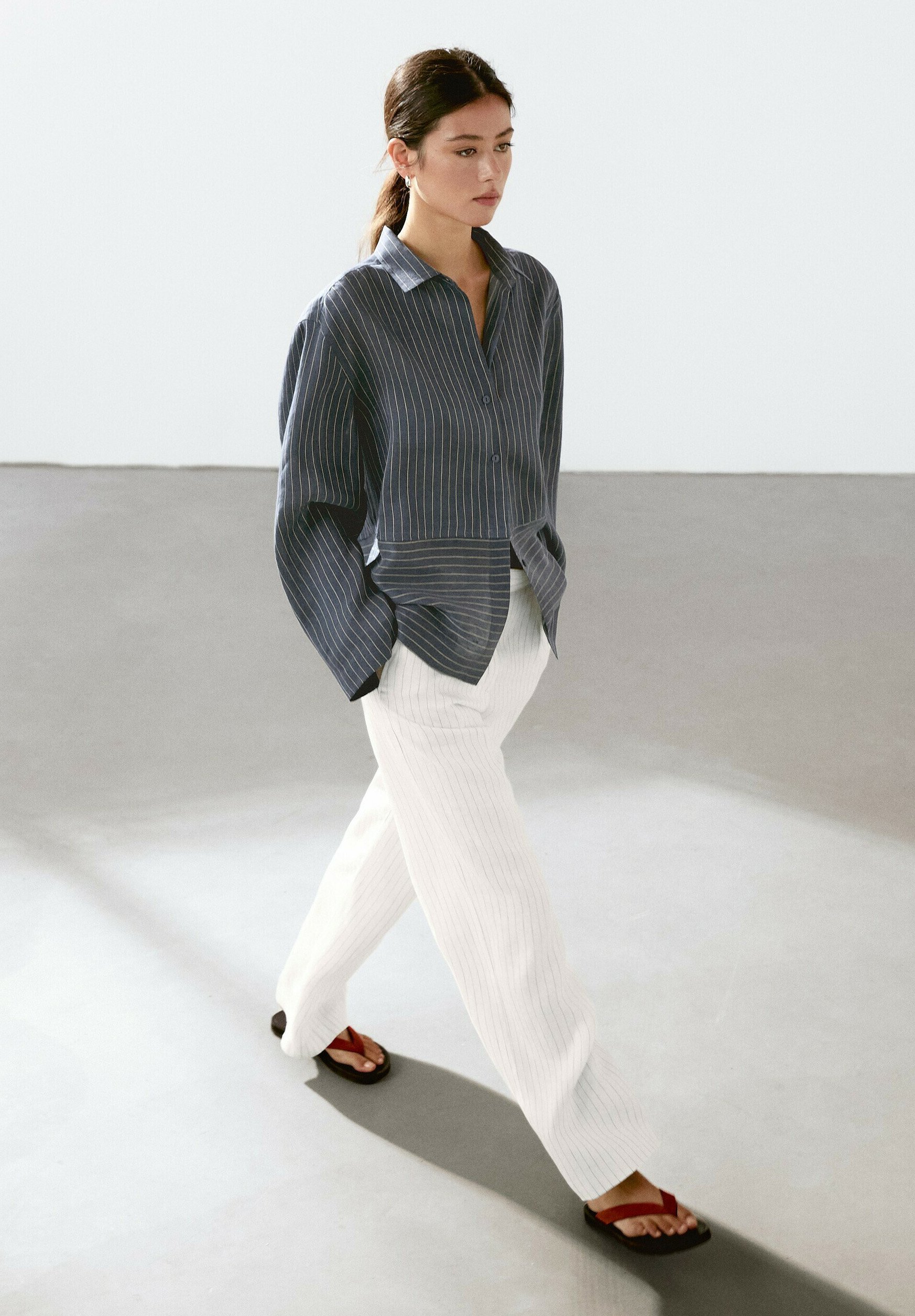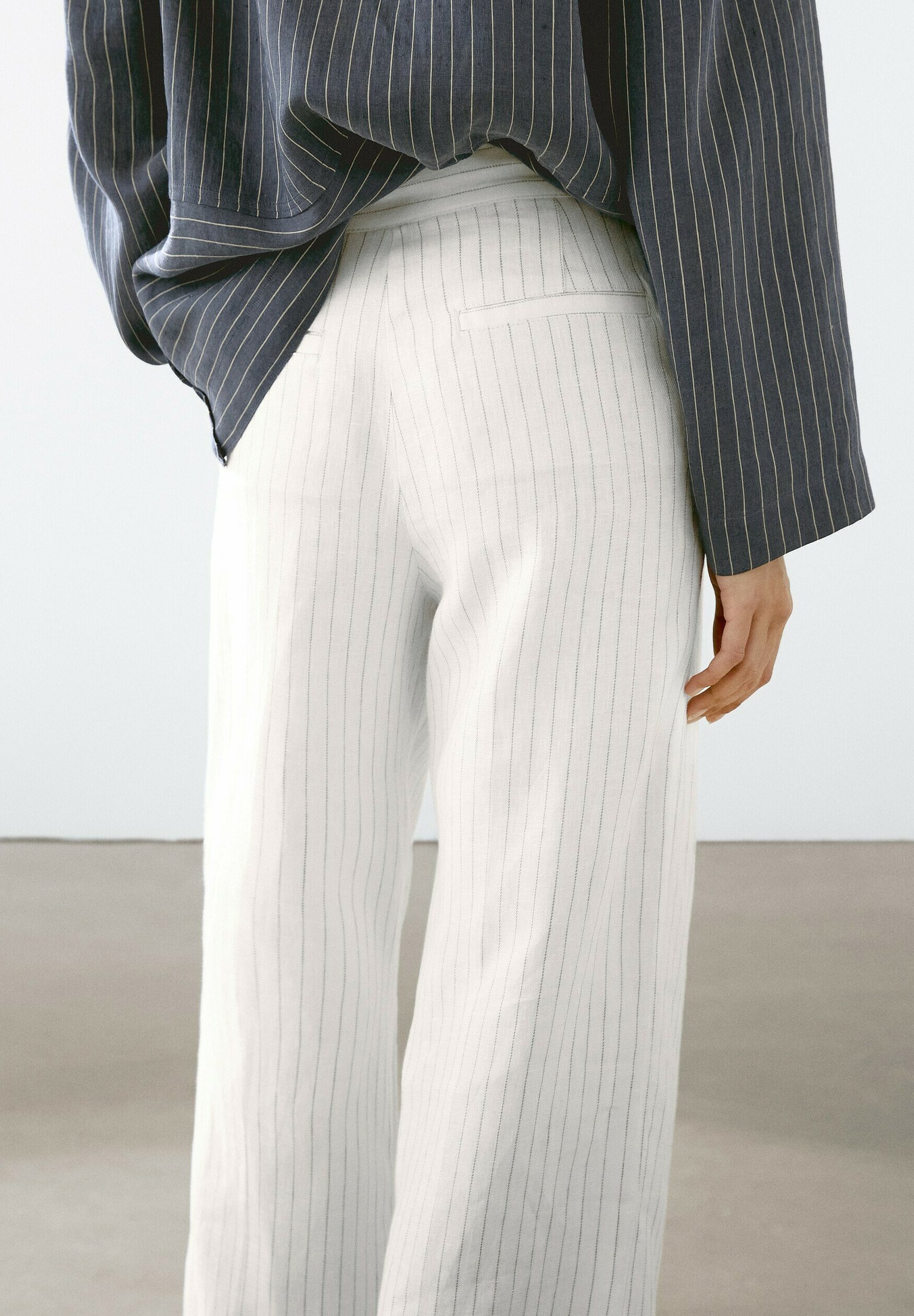 STRIPED WITH BUCKLE DETAIL – Trousers – white