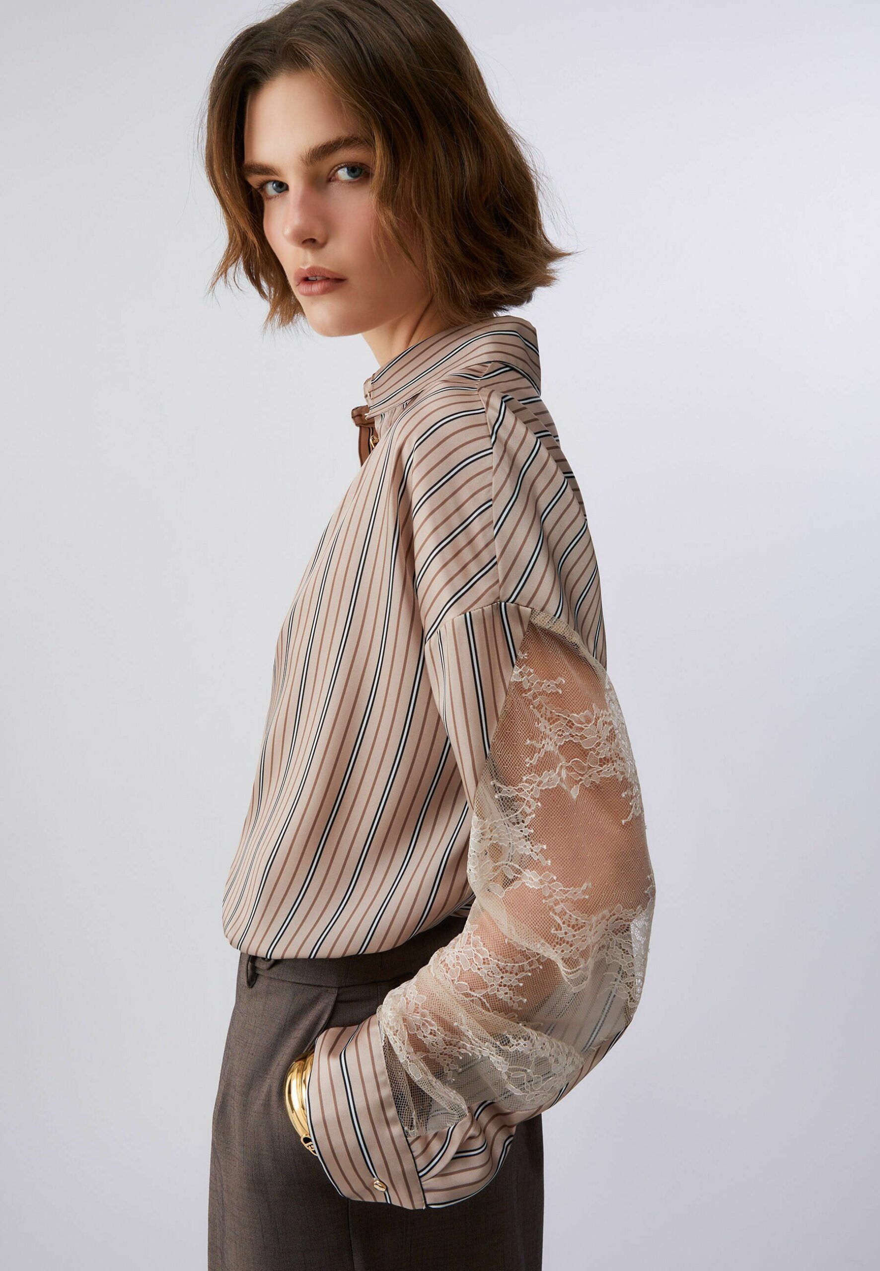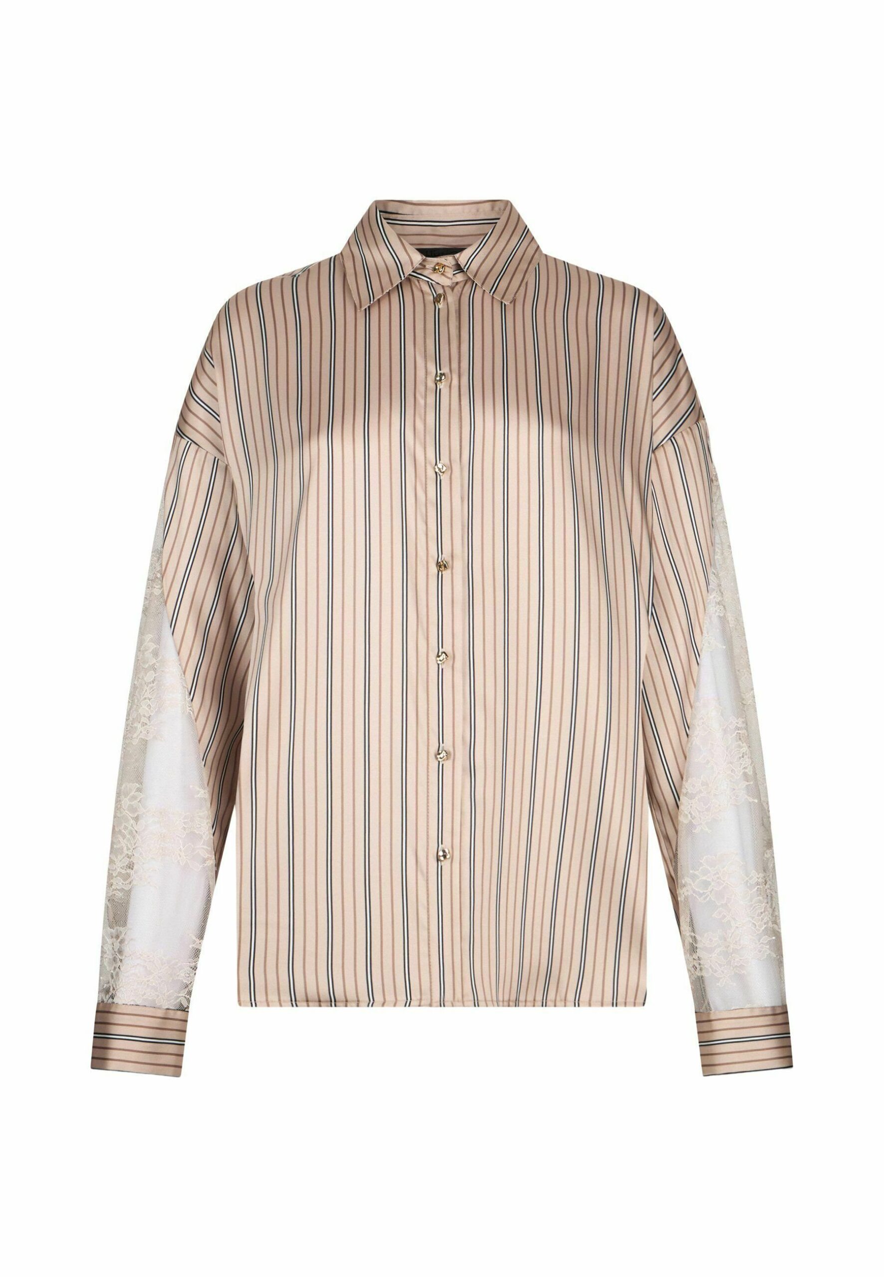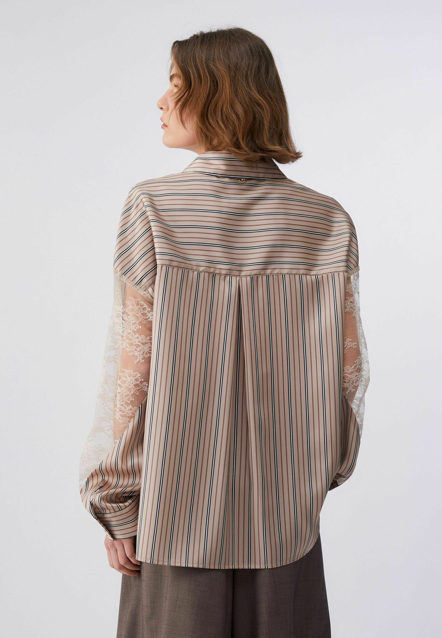 STRIPED WITH DETAILS – Button-down blouse – p brown