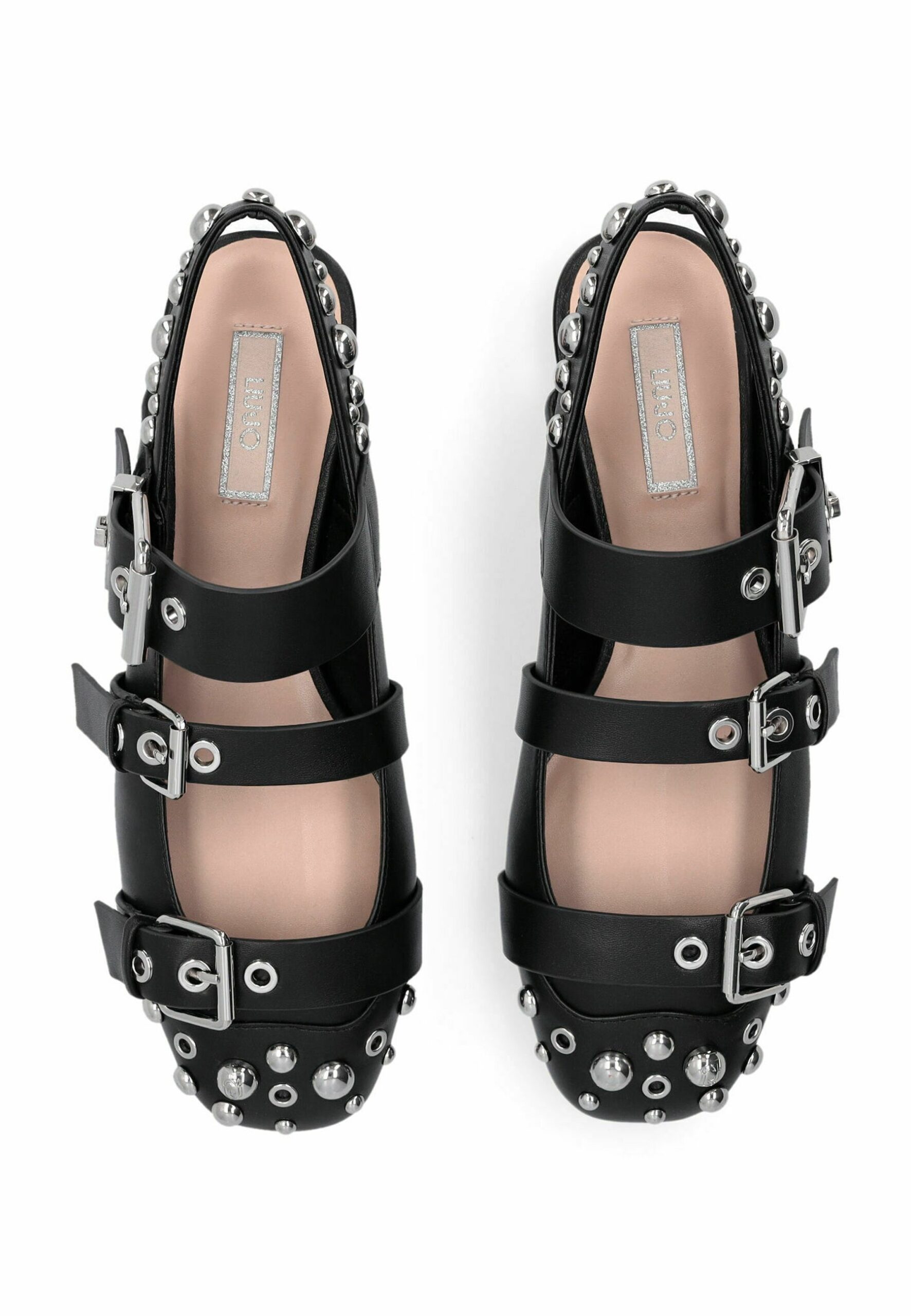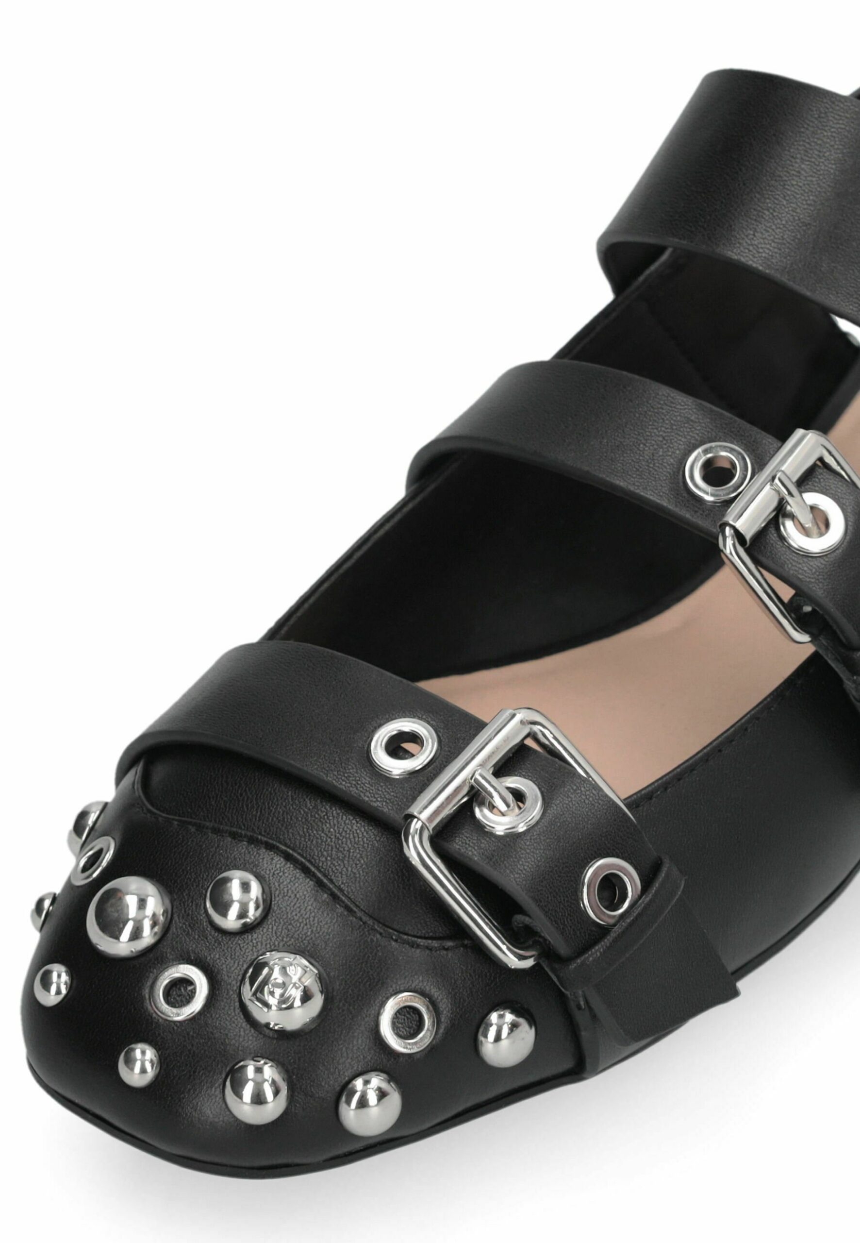 STUDDED – Ankle strap ballet pumps – black