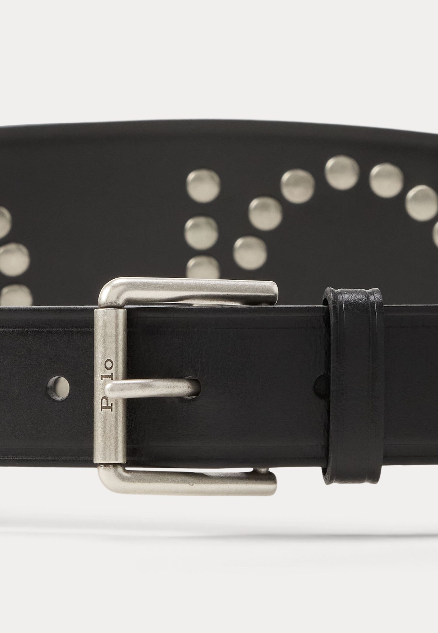 STUDDED LOGO LEATHER MOTO BELT – Belt – black/silver-coloured