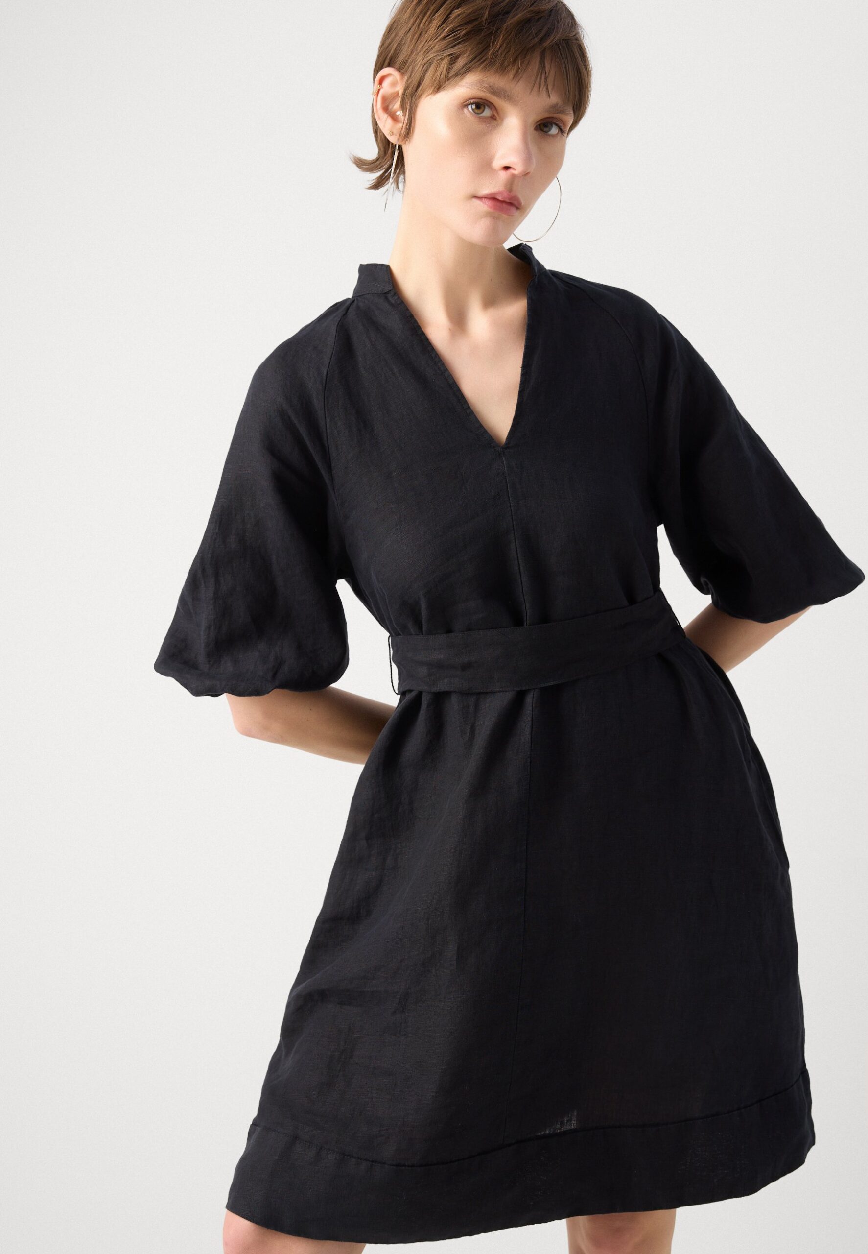STYLE RAGLAN SLEEVES BELTED AT WAIST – Day dress – black
