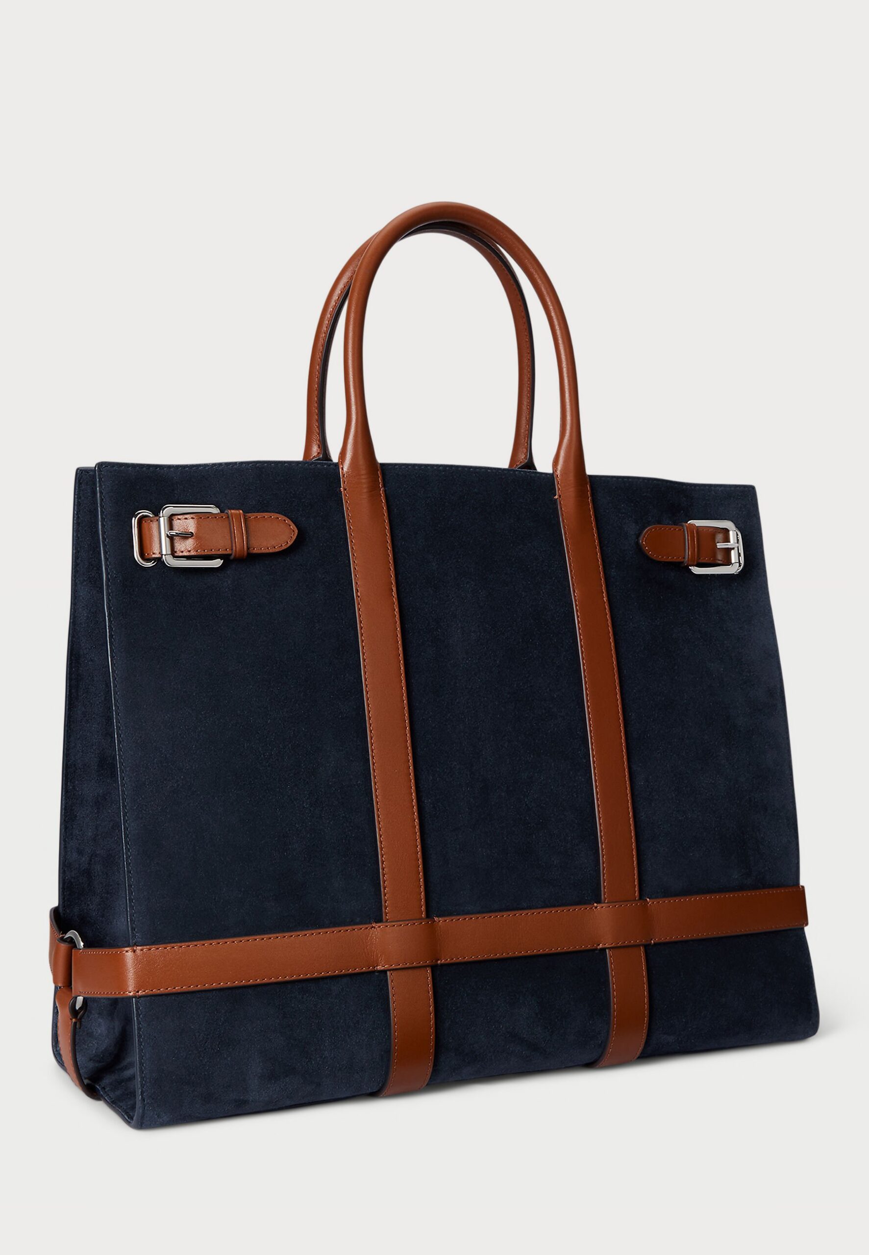 SUEDE & LEATHER LARGE DEVYN TOTE BAG – Tote bag – navy/tan
