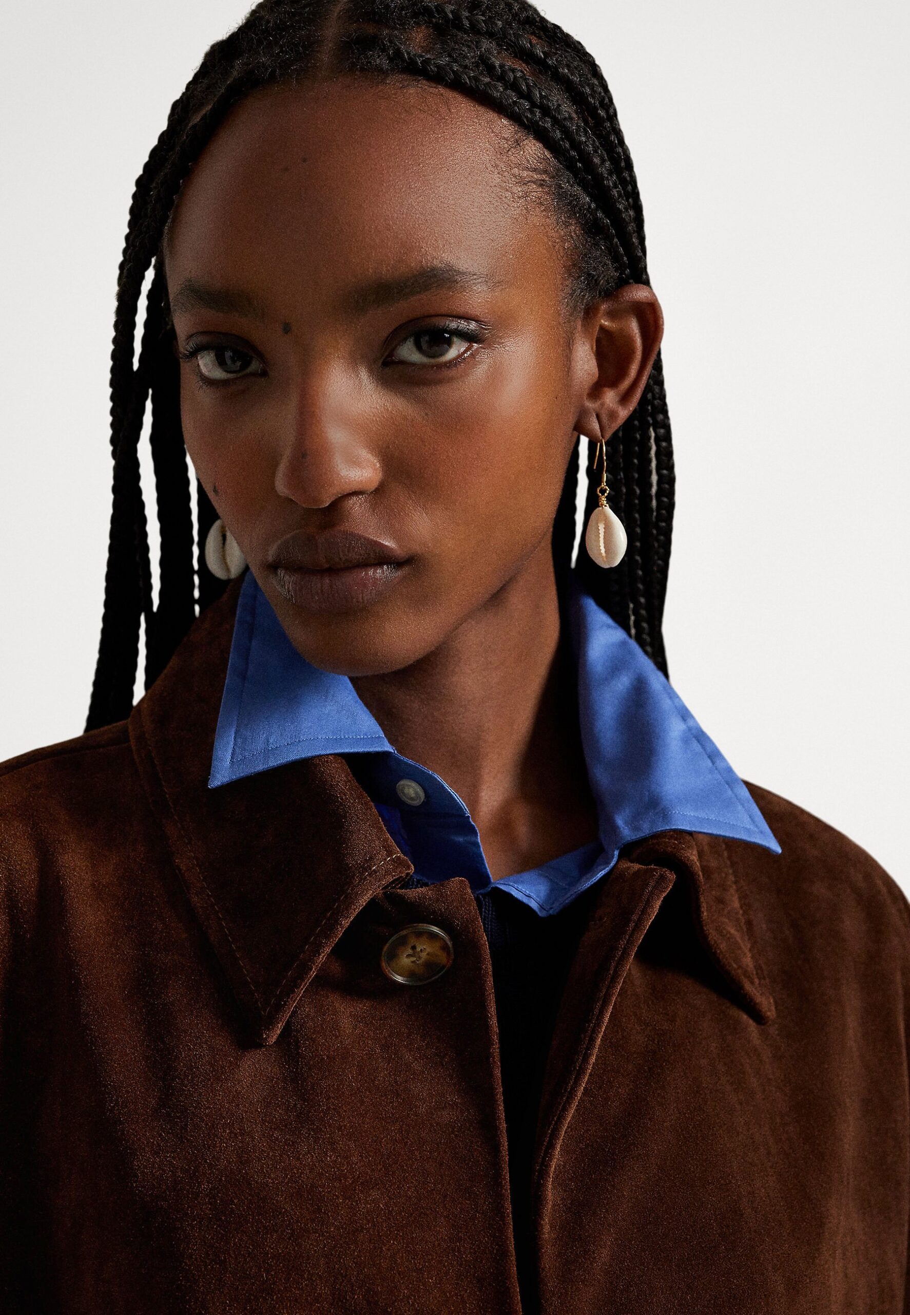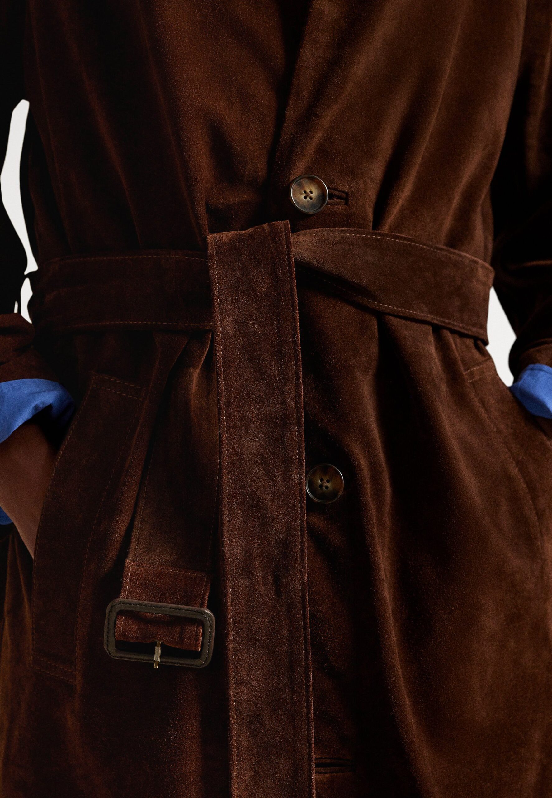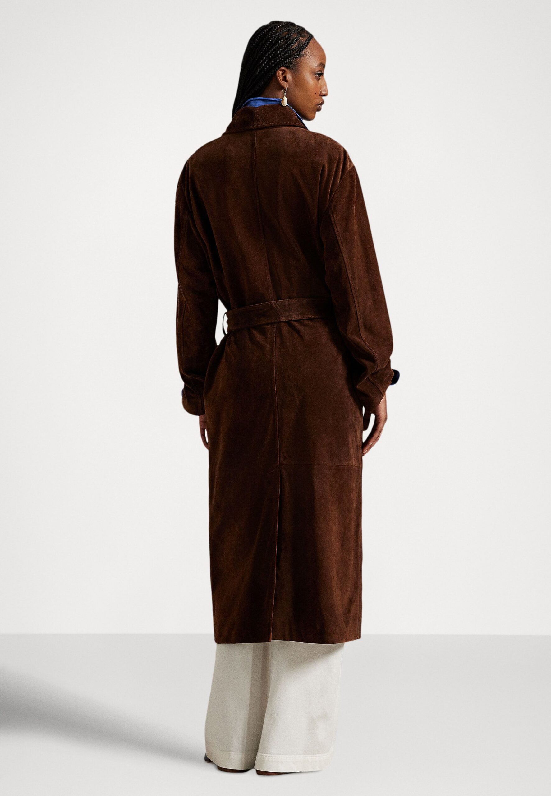 SUEDE LONG CAR COAT – Classic coat – umber