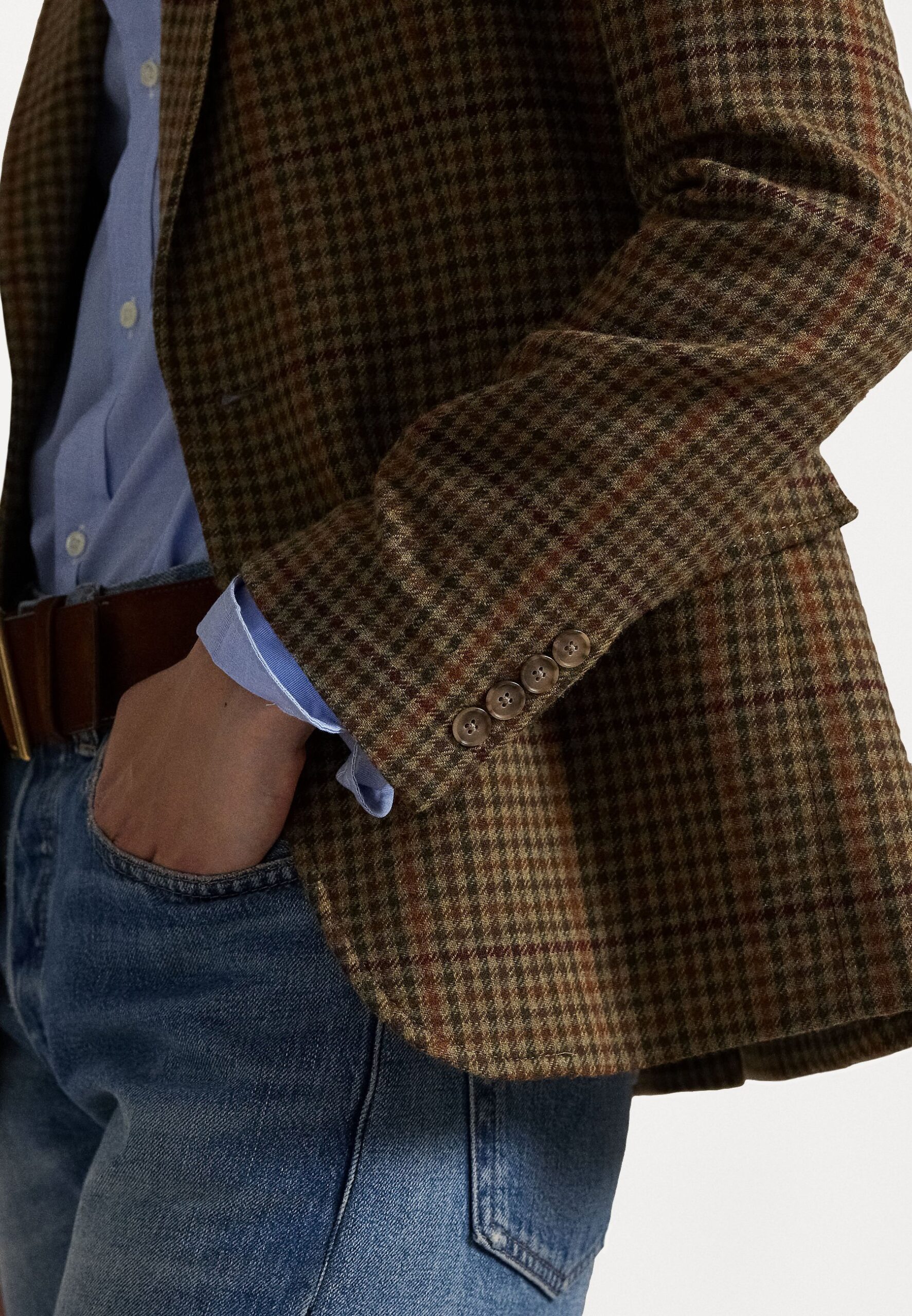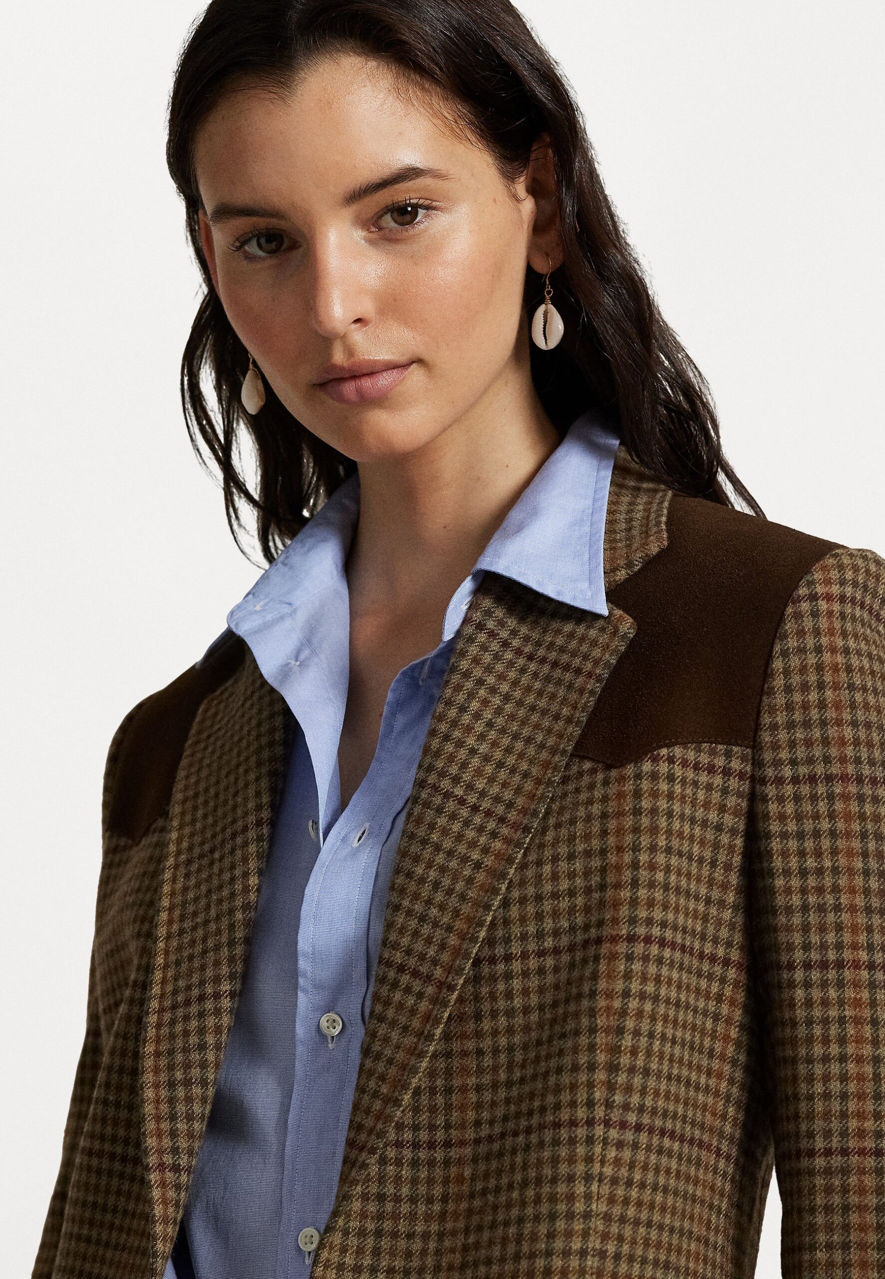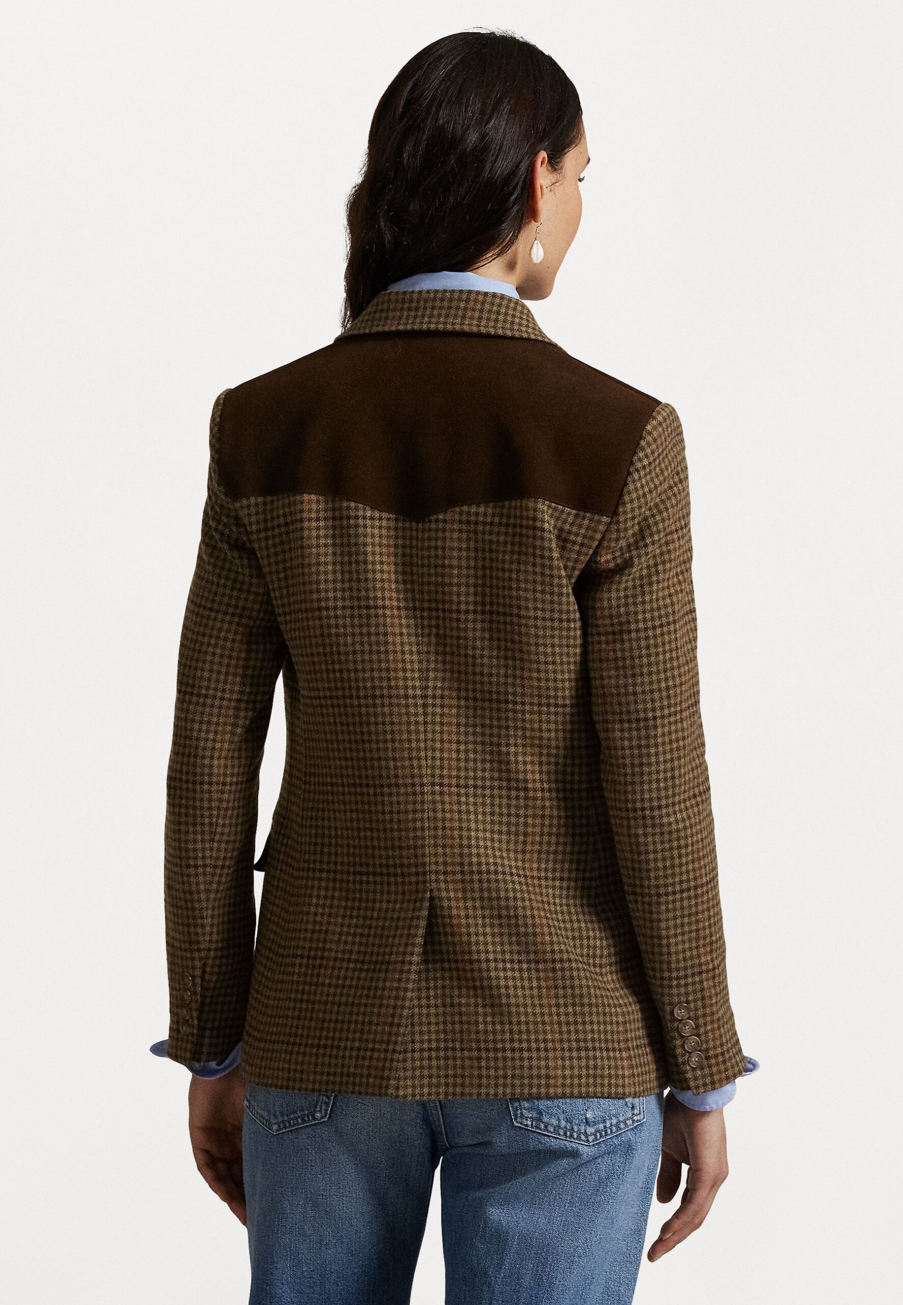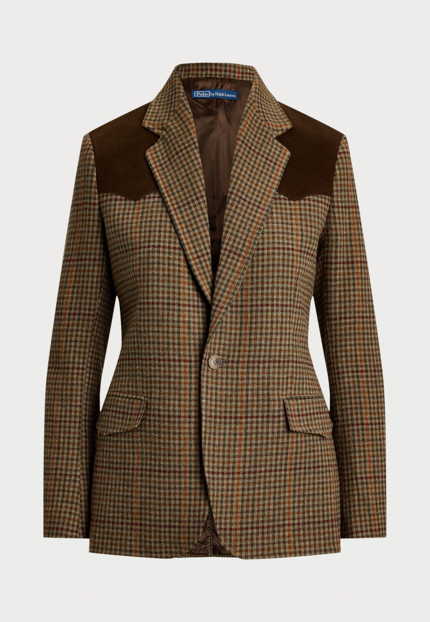 SUEDE TRIM PLAID WOOL BLAZER – Blazer – olive