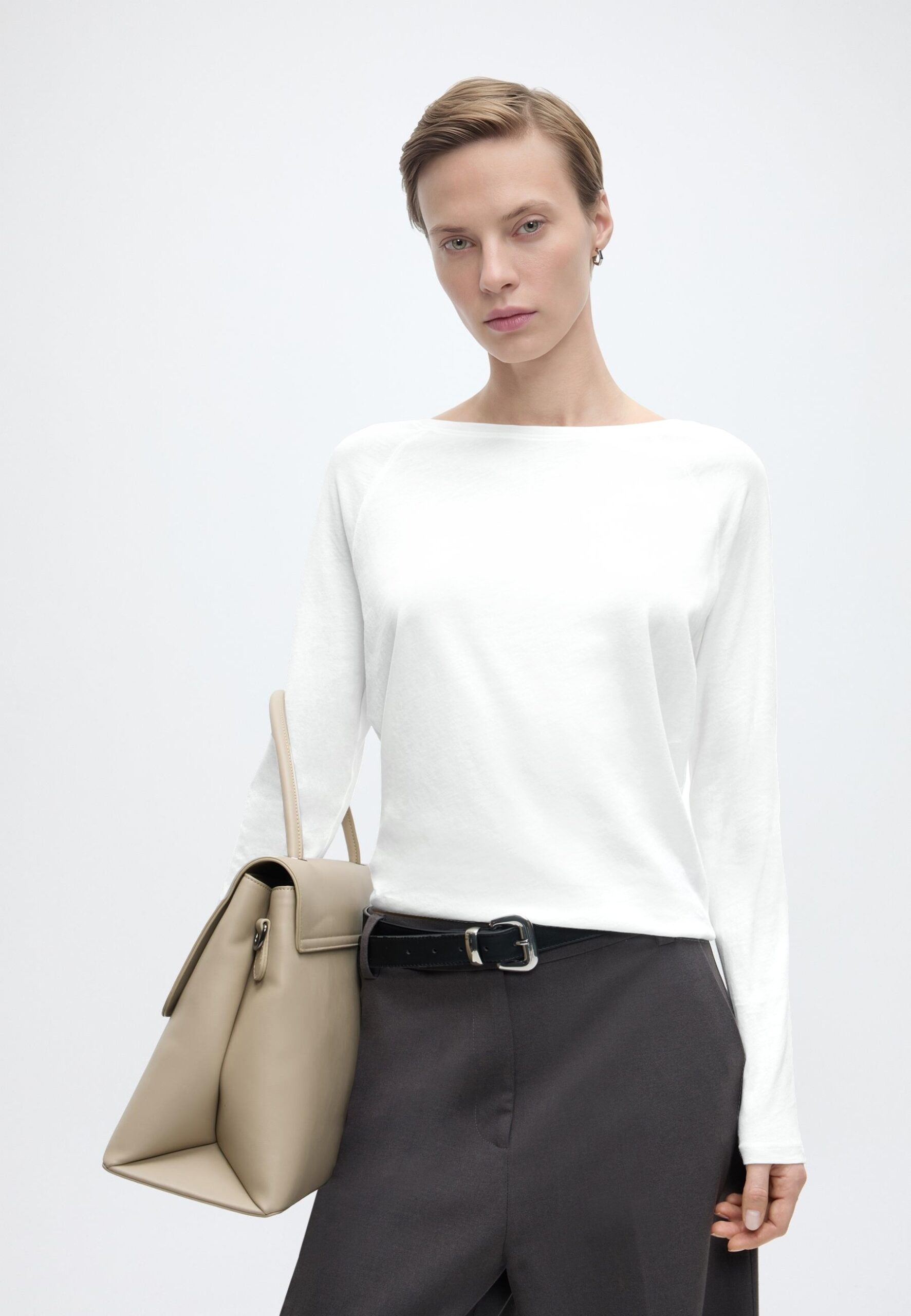 T-SHIRT, LSL, RAGLAN, LOOSE KNIT – Long sleeved top – silky white