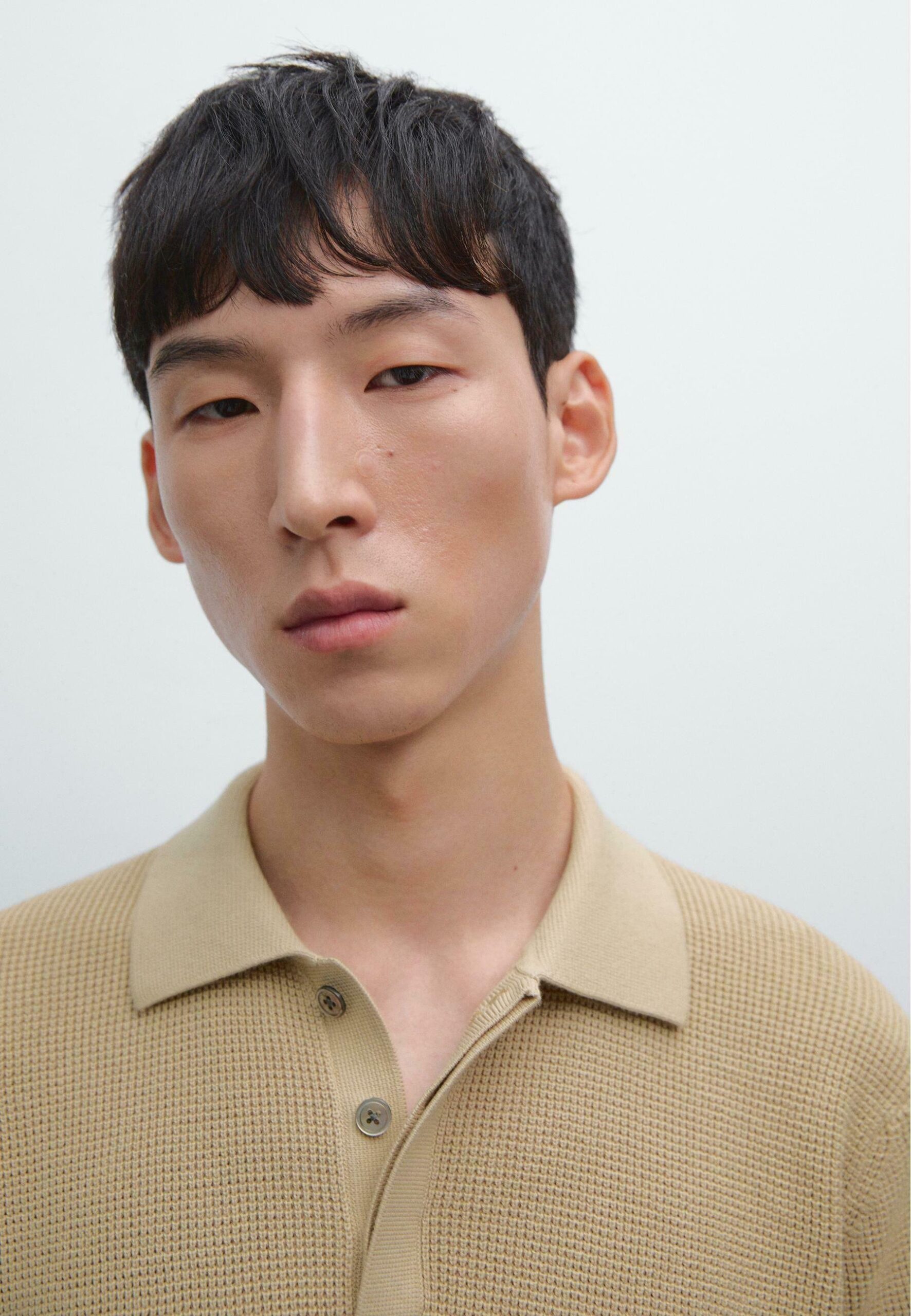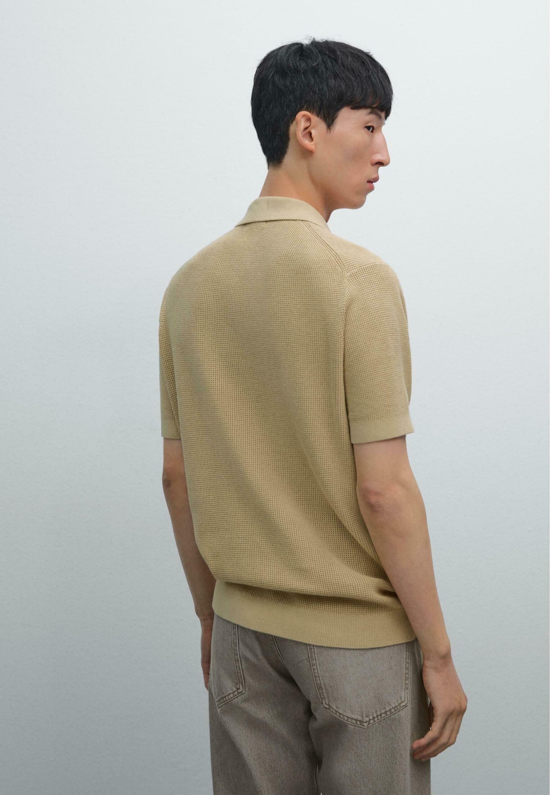 TEXTURED KNIT POLO NECK – Polo shirt – bronze