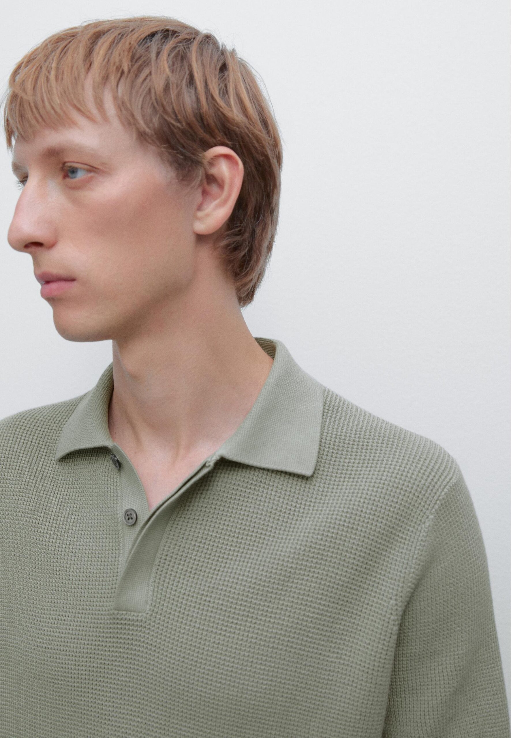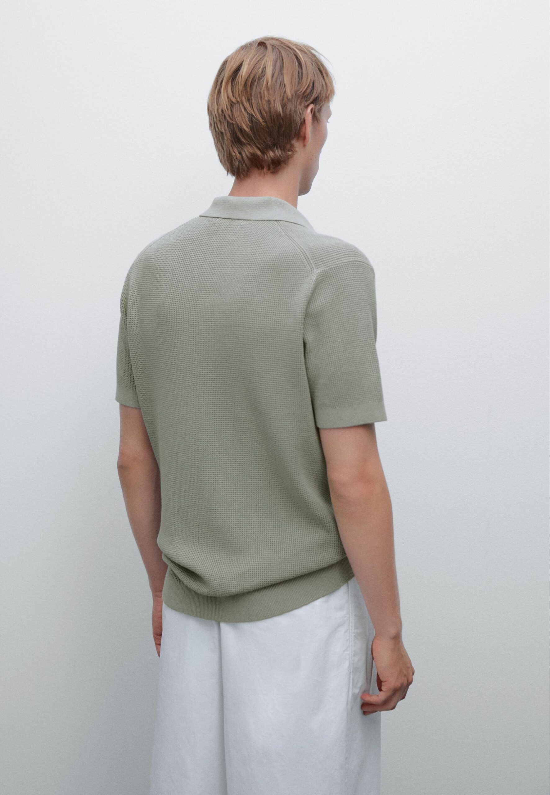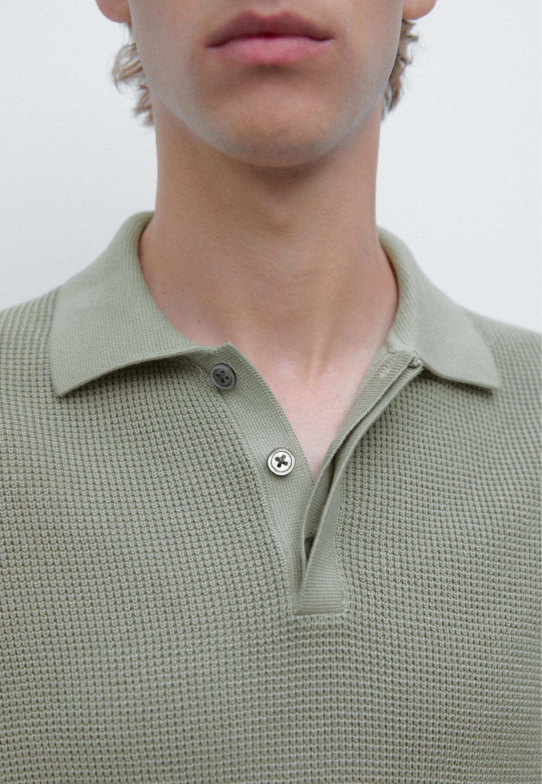 TEXTURED KNIT POLO NECK – Polo shirt – light green