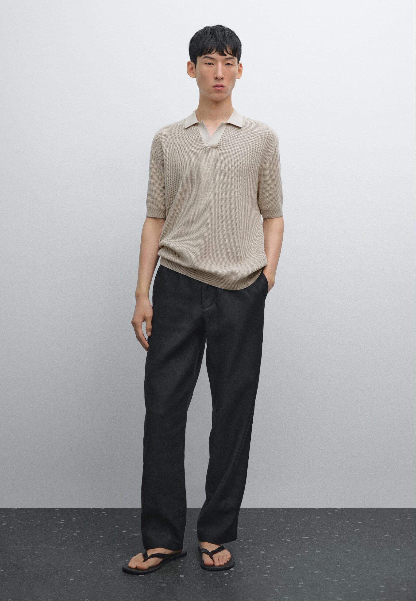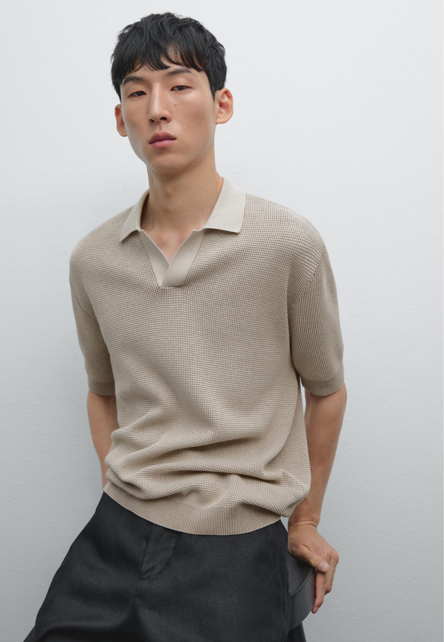 TEXTURED V-NECK – Polo shirt – light grey
