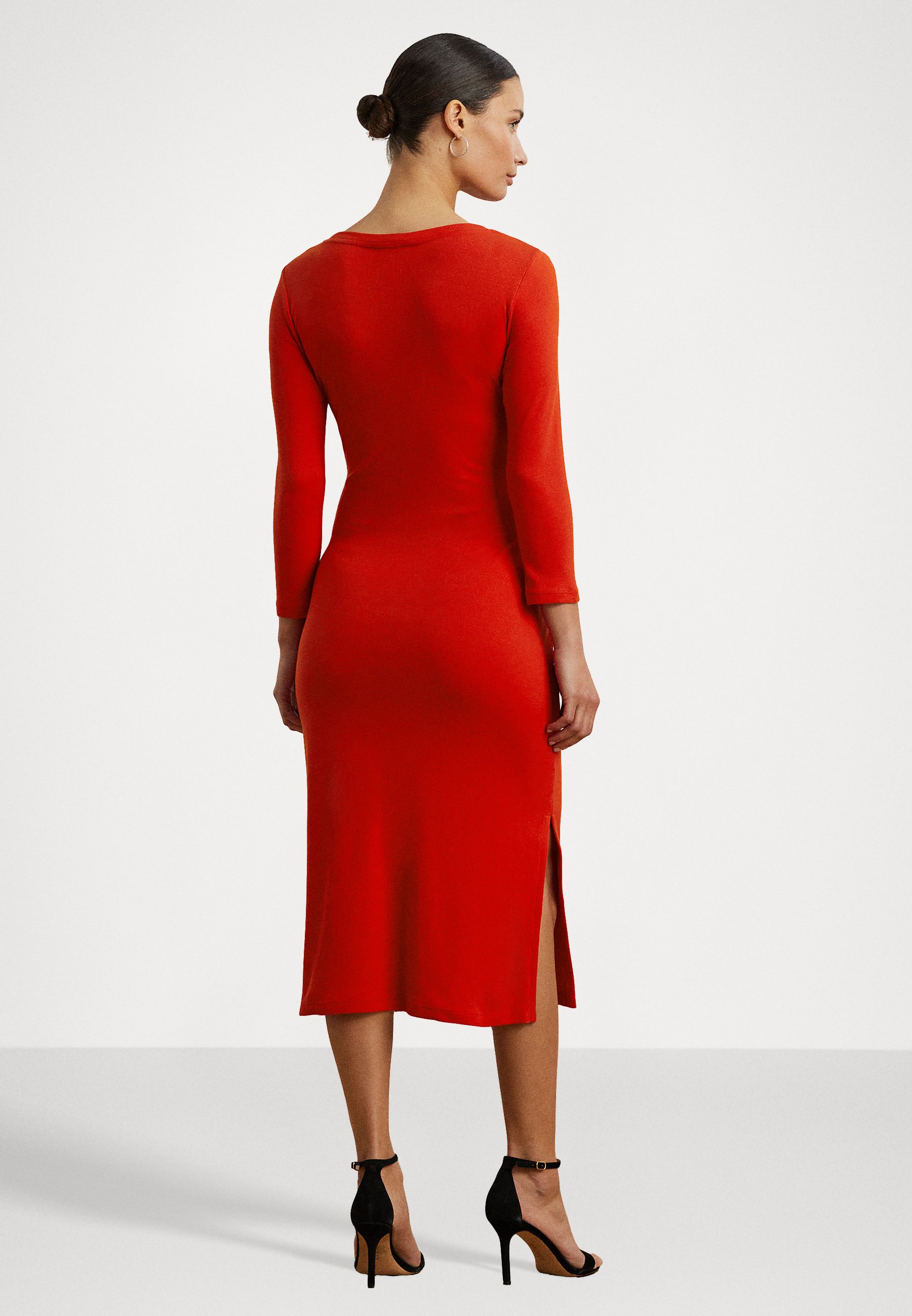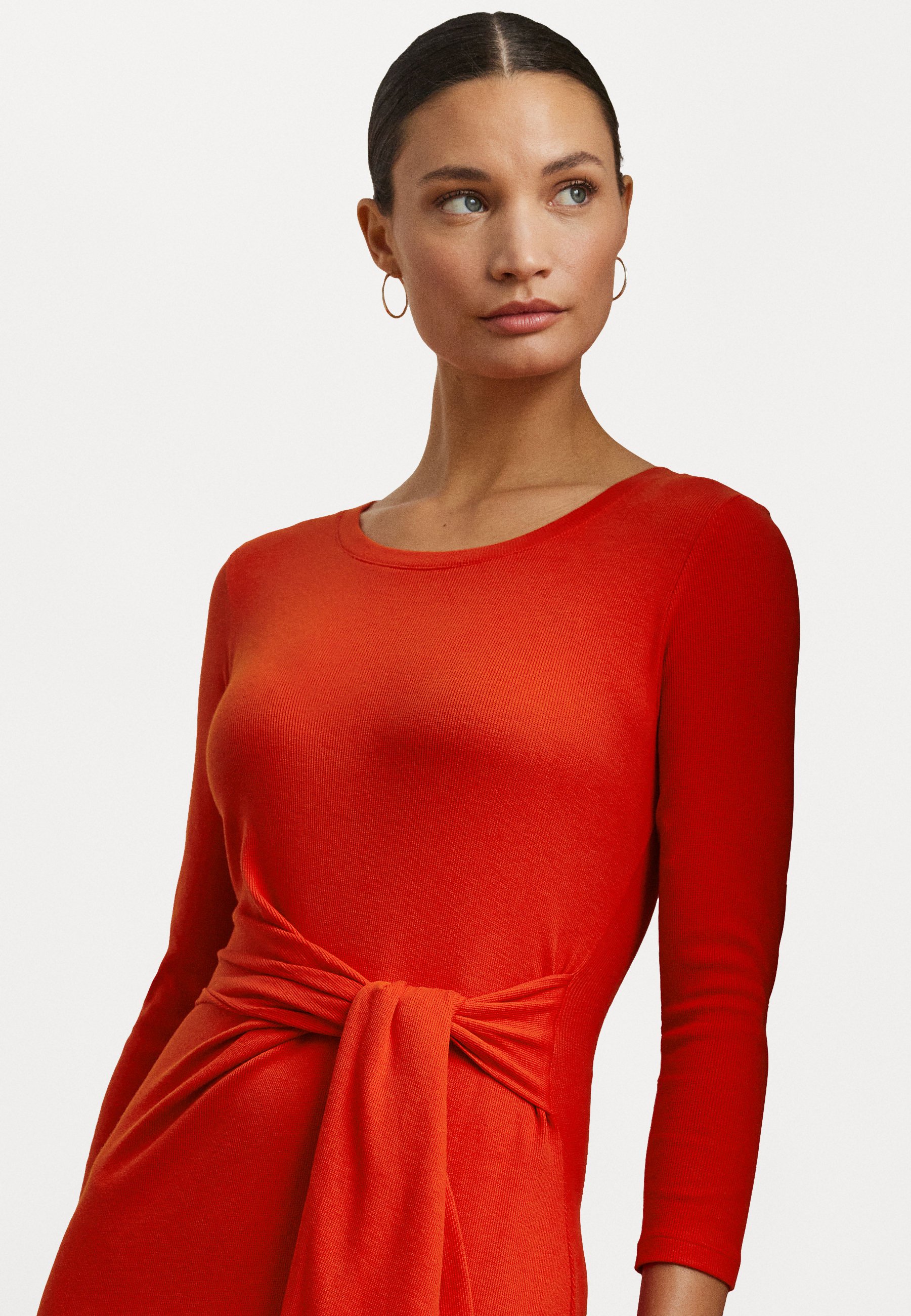 Tie Front Cotton Blend Crewneck Dress – Jersey dress – bright vermilion