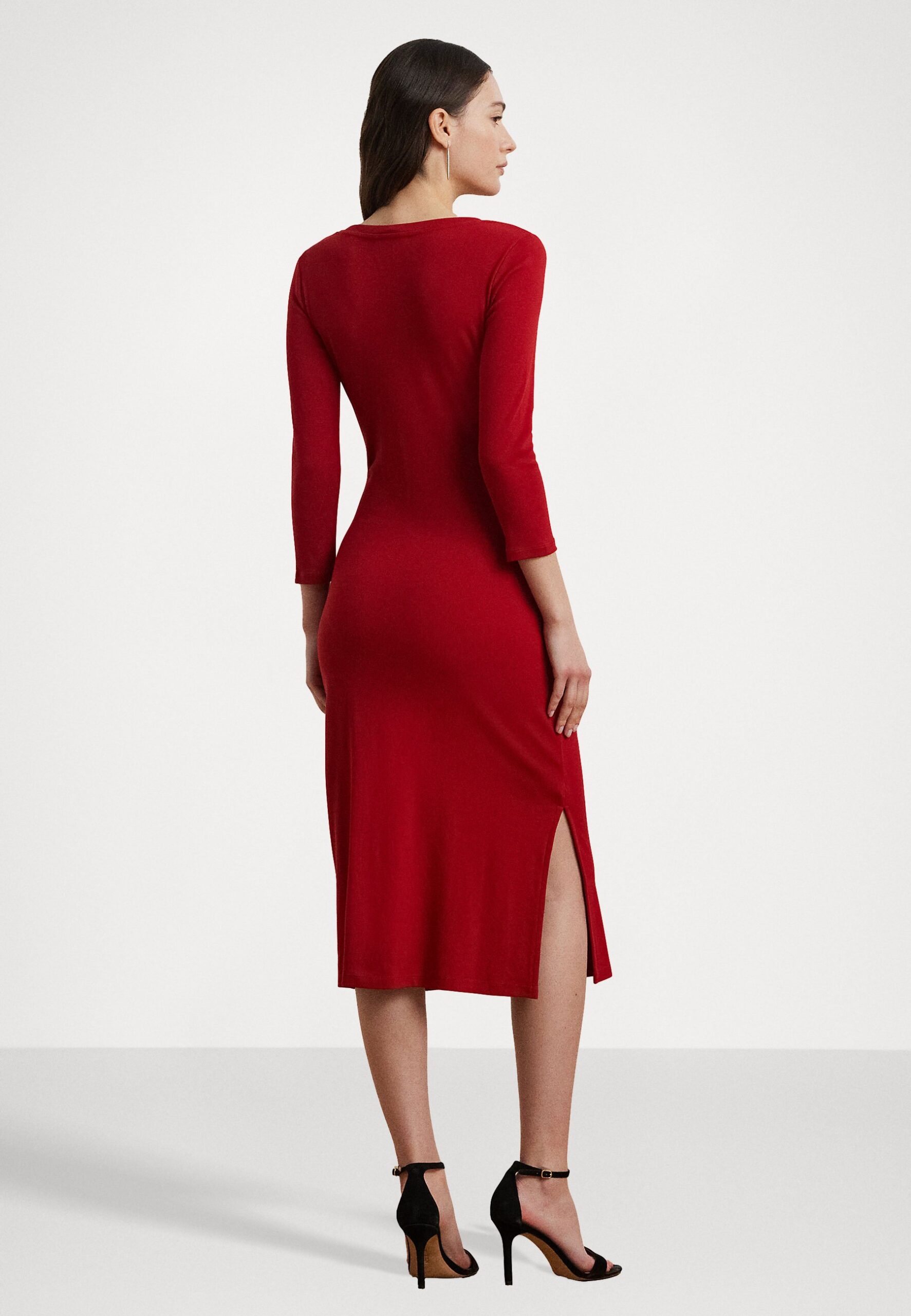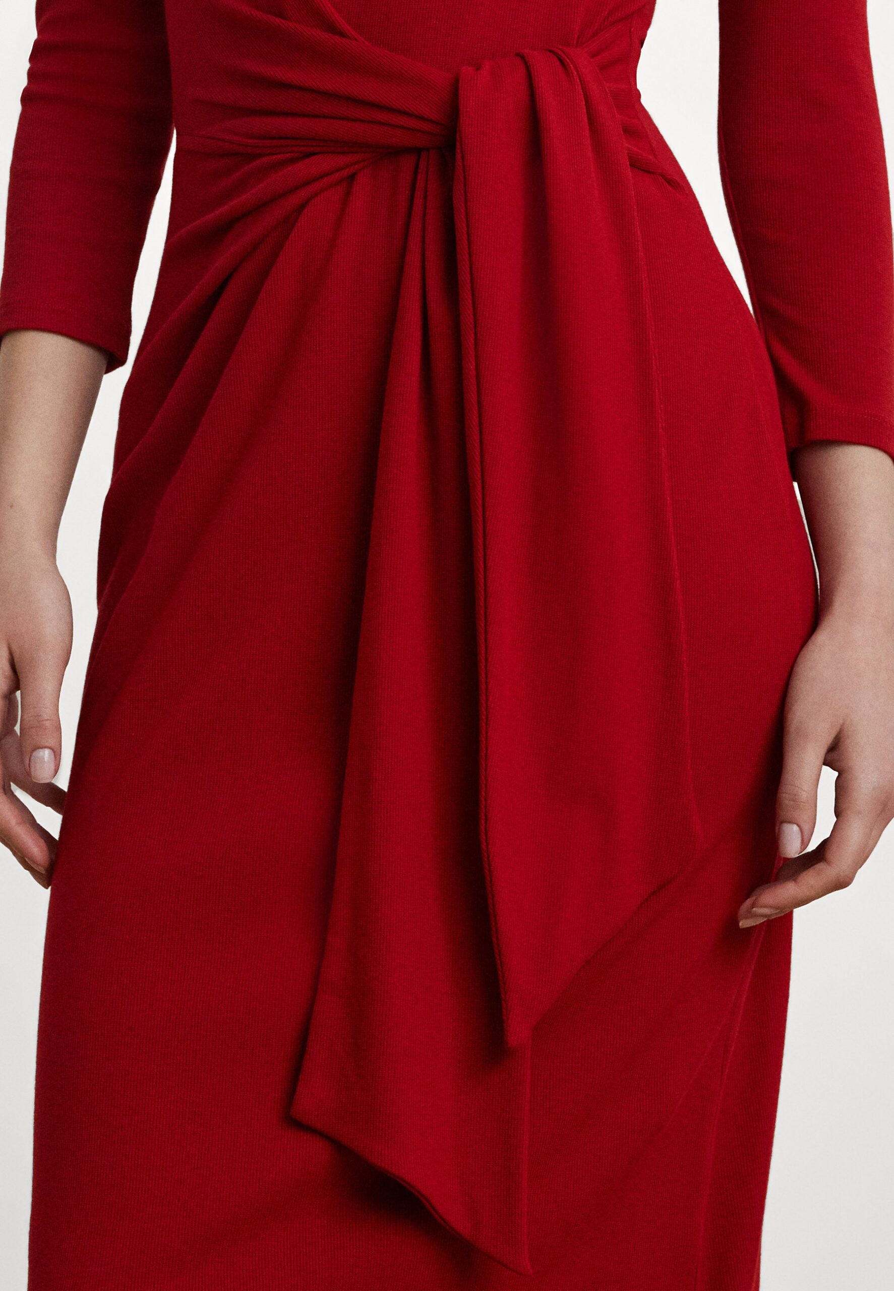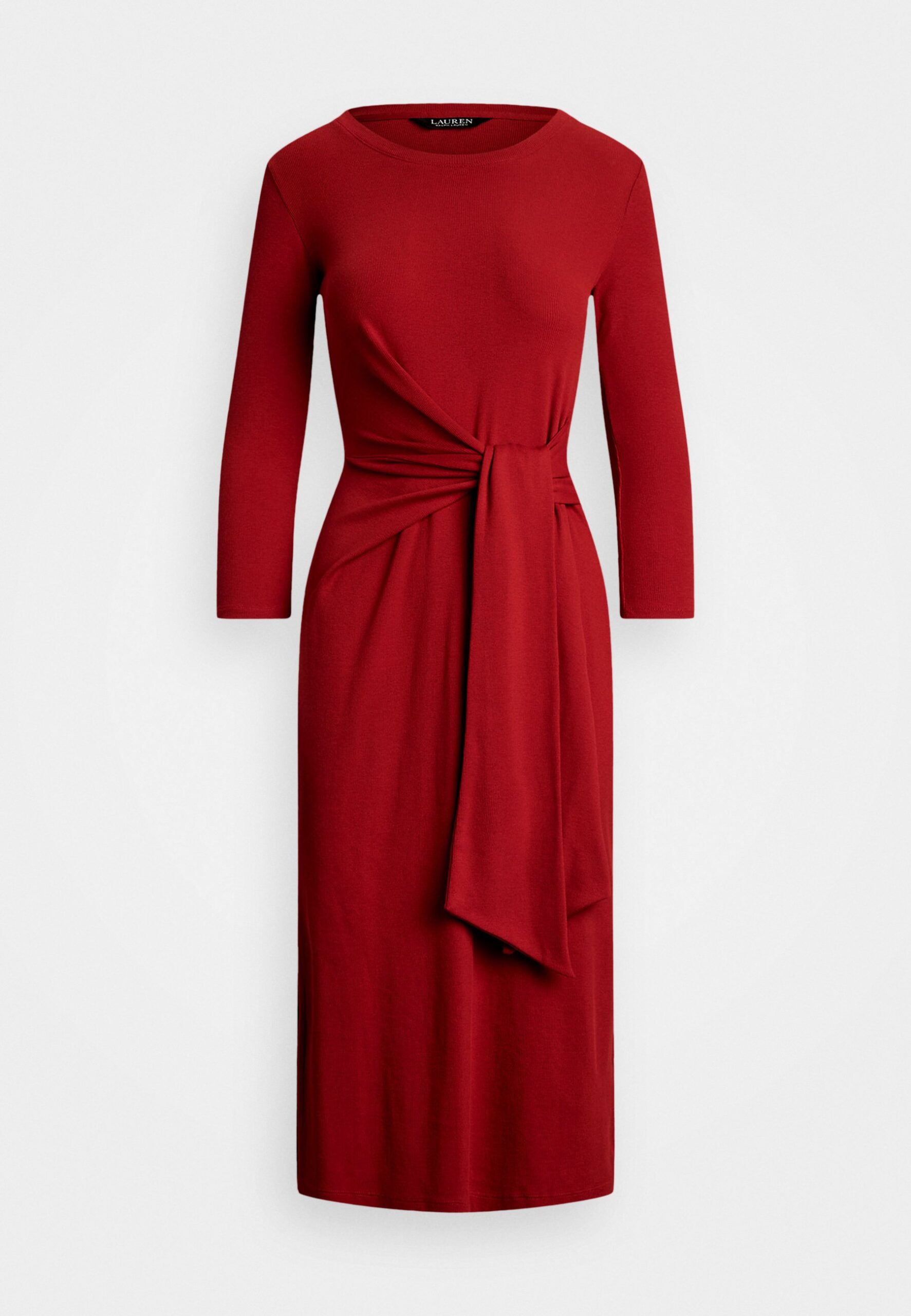 Tie Front Cotton Blend Crewneck Dress – Jersey dress – madison red