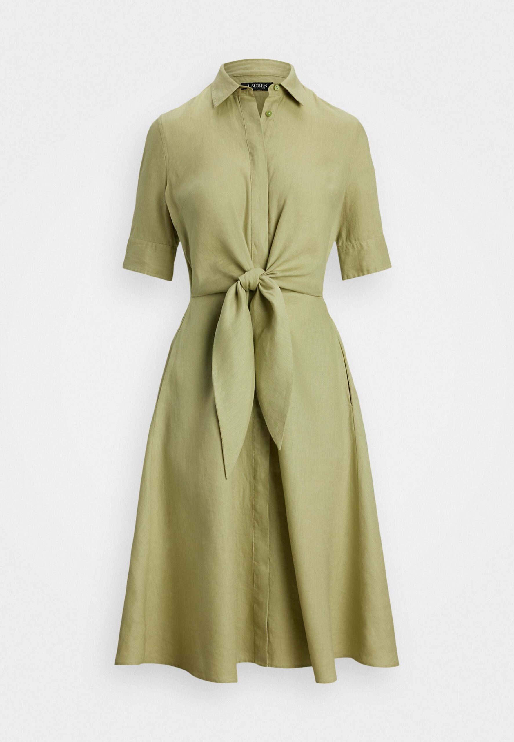 TIE-FRONT LINEN SHIRTDRESS – Shirt dress – light olive