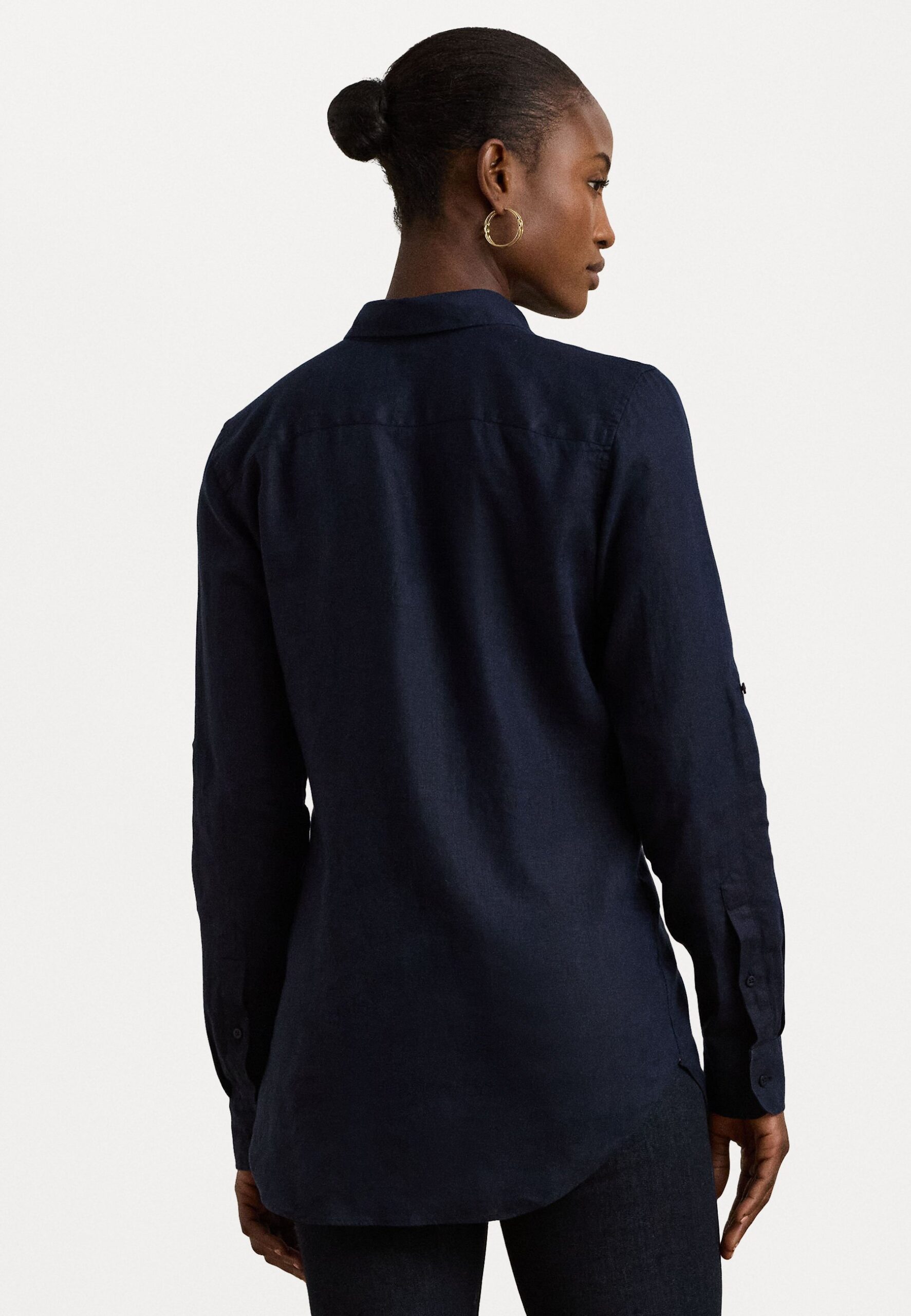 TISSUE LINEN SHIRT – Button-down blouse – navy