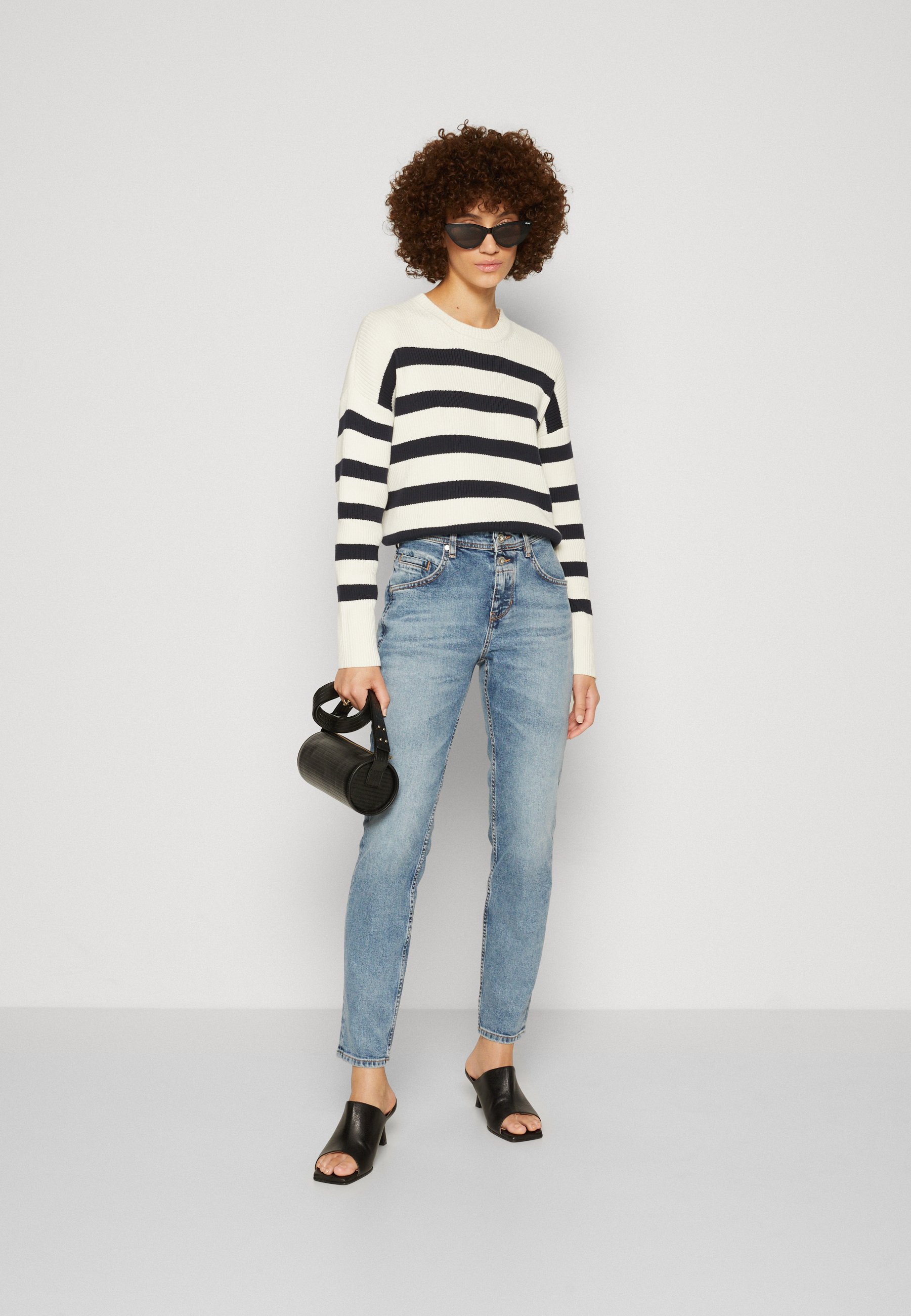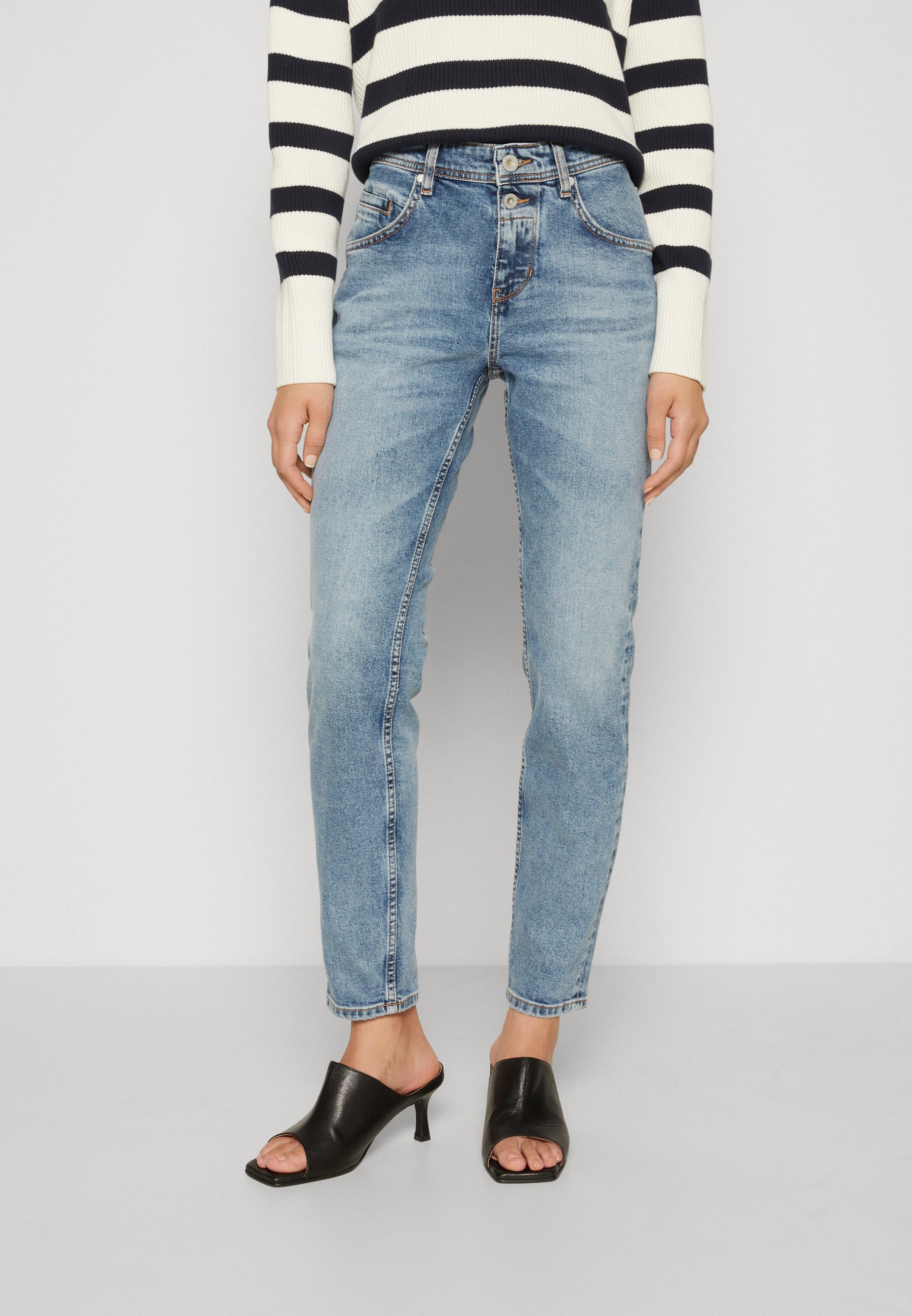 TROUSER BOYFRIEND FIT CROPPED LENGTH MID WAIST – Mom Jeans – blue wash