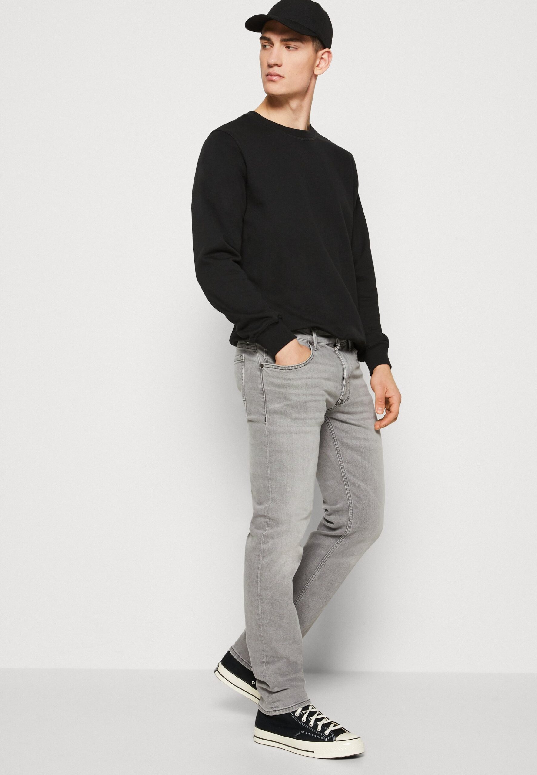 TROUSERS SHAPED FIT SHAPED LEG LOW WAIST CROTCH REGULAR LENGTH – Straight leg jeans – light grey wash