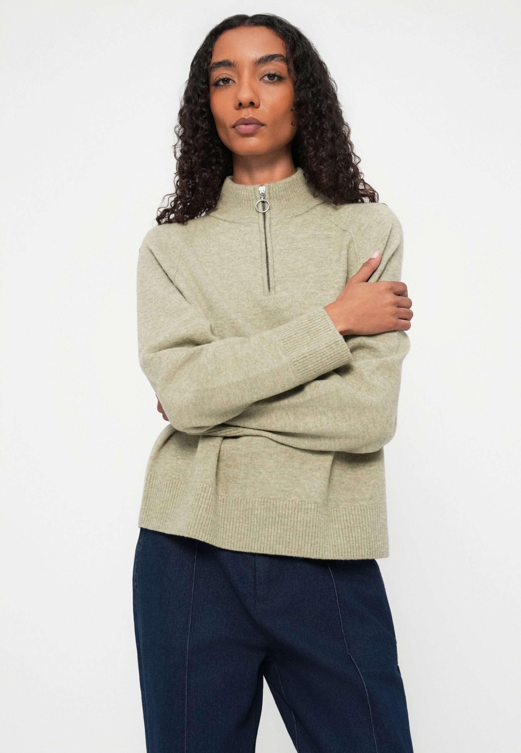 TROYER LONG SLEEVE ZIPPER – Jumper – medium green melange