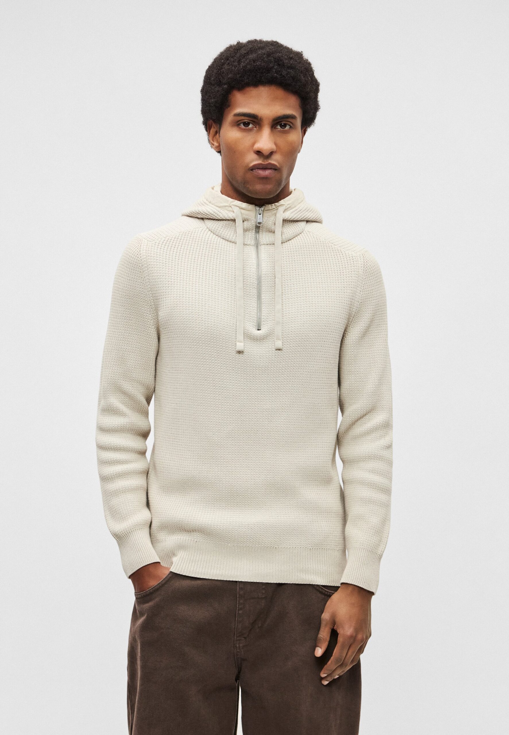 TROYER WITH HOOD STRUCTURED – Hoodie – light oat