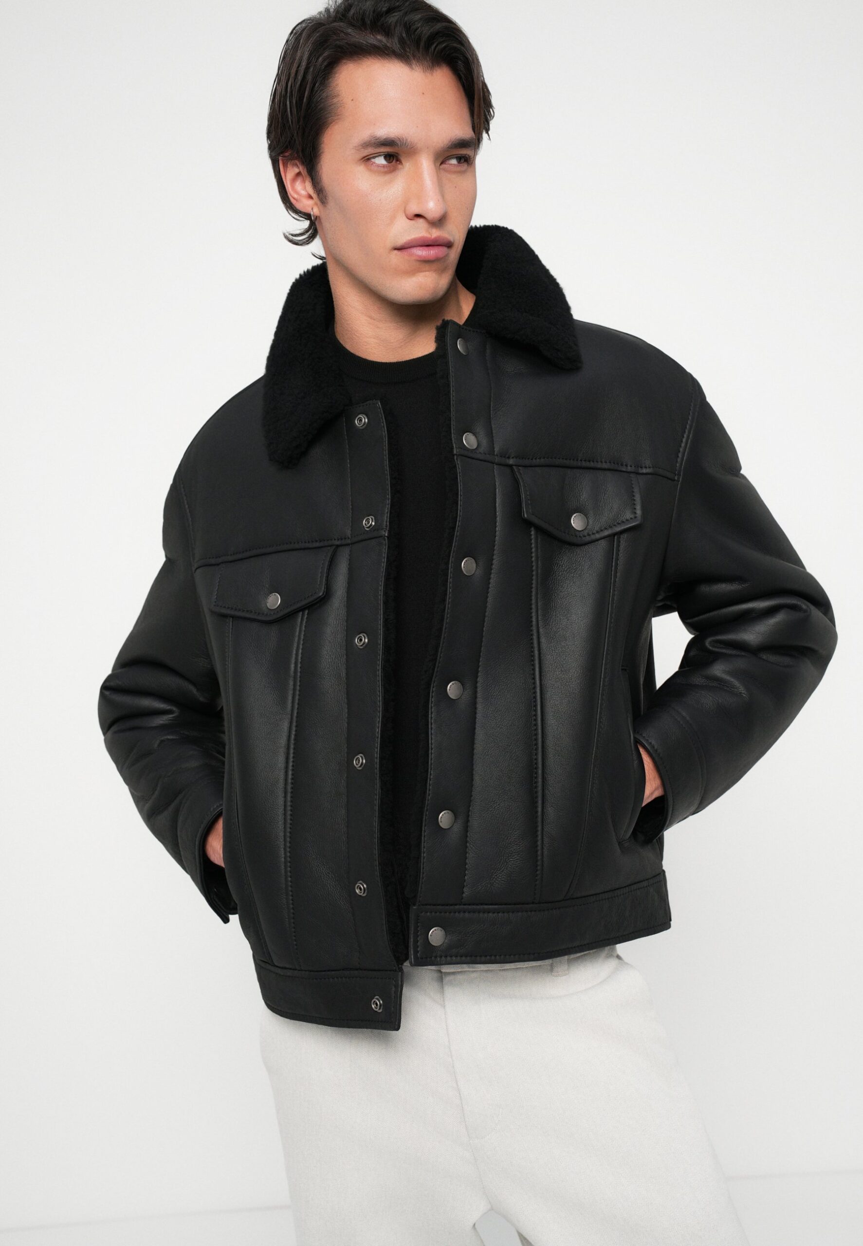 TRUCKER JACKET – Leather jacket – black