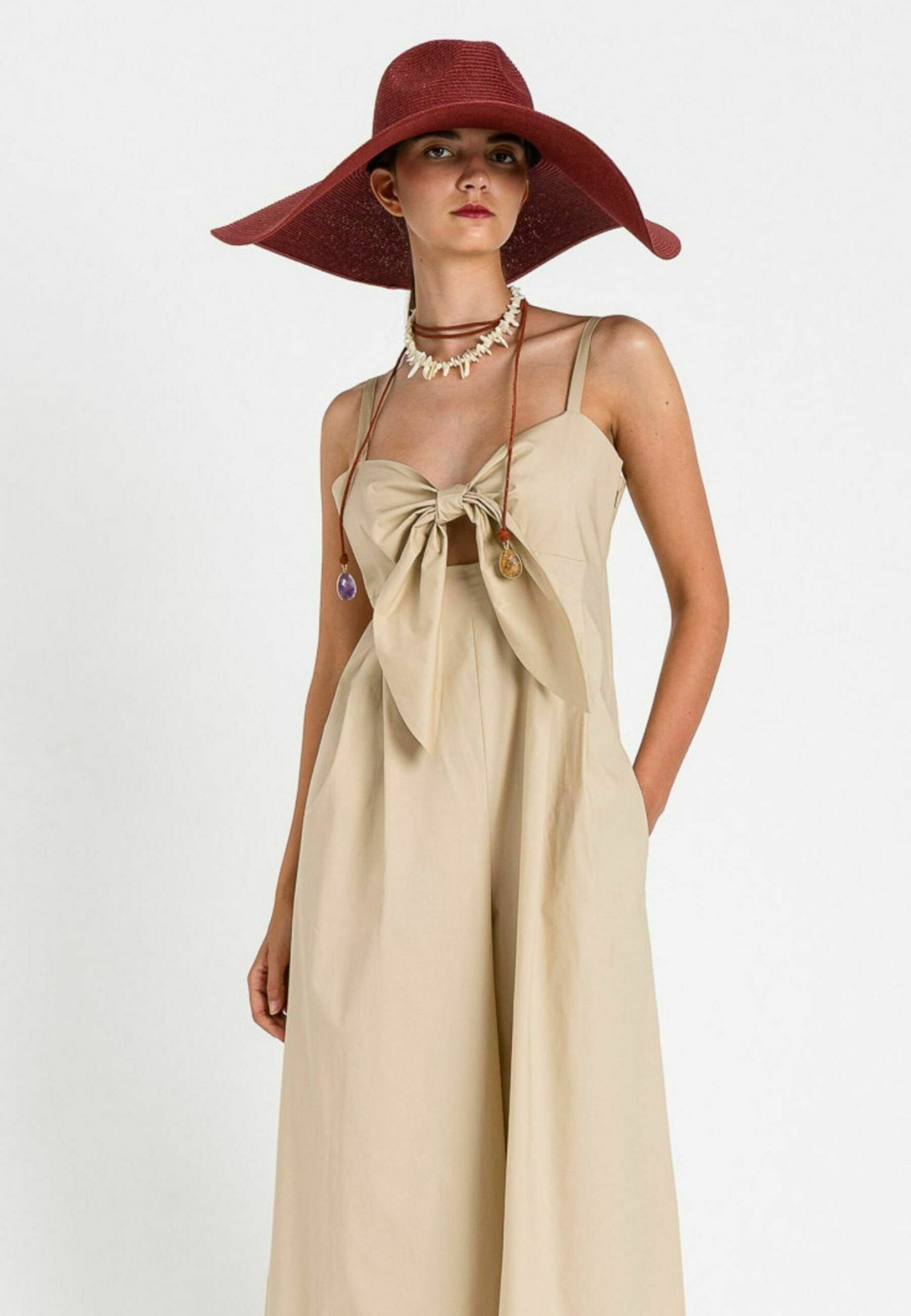 TUTA LUNGA CON FIOCCO FRONTALE – Jumpsuit – beige