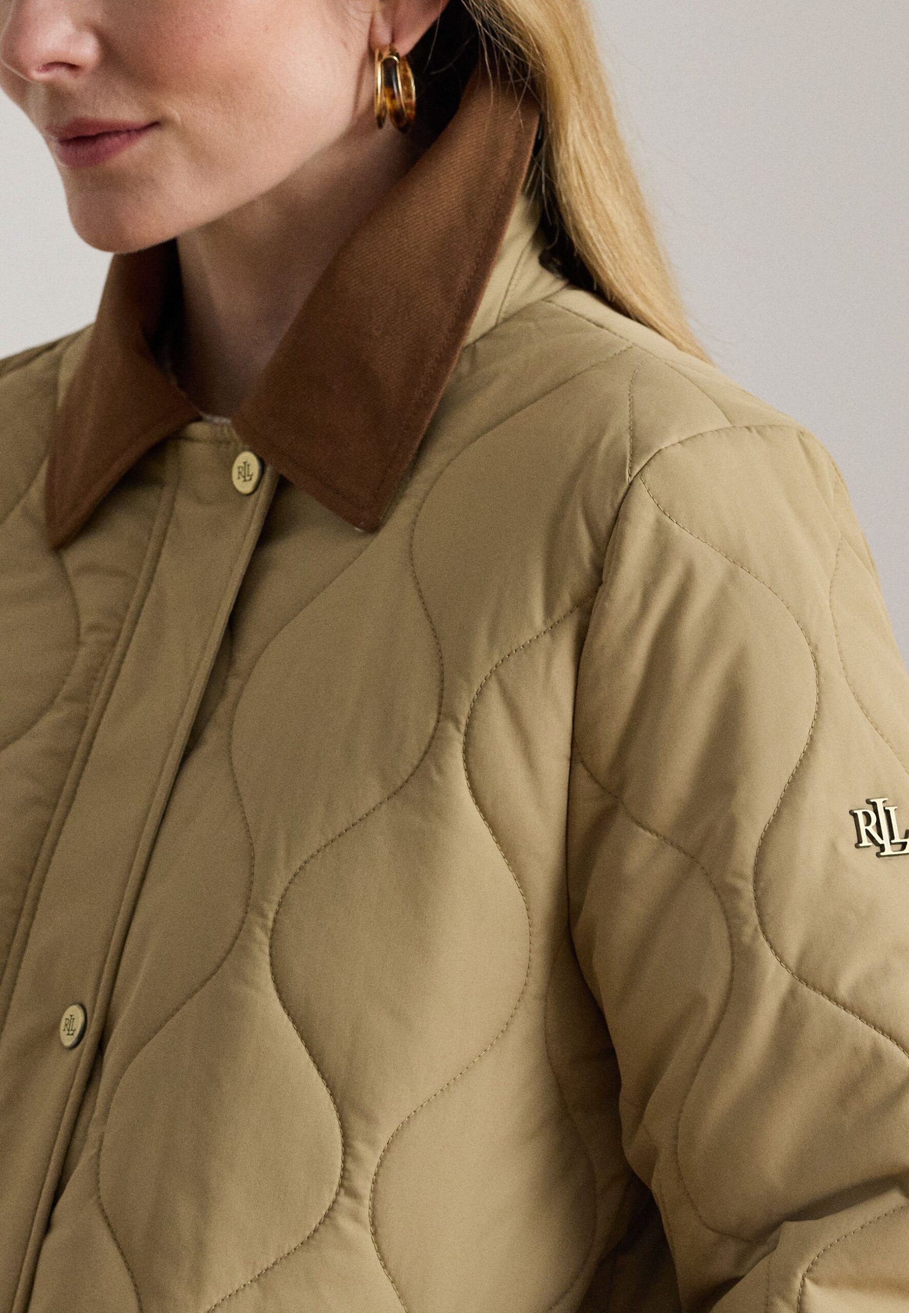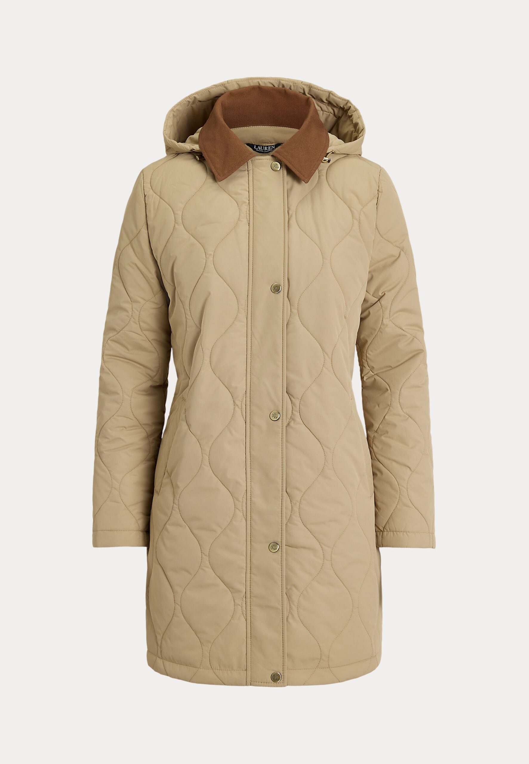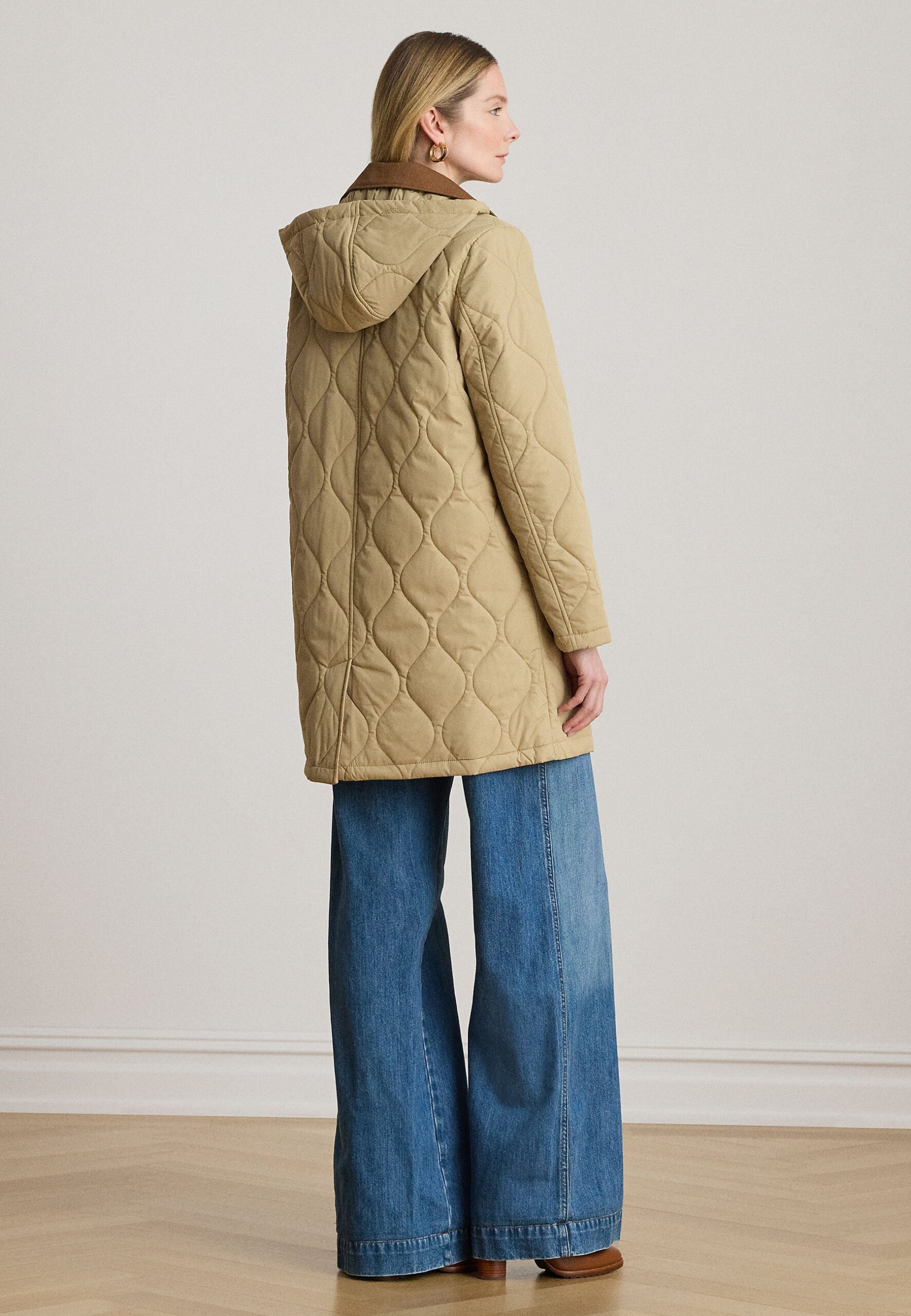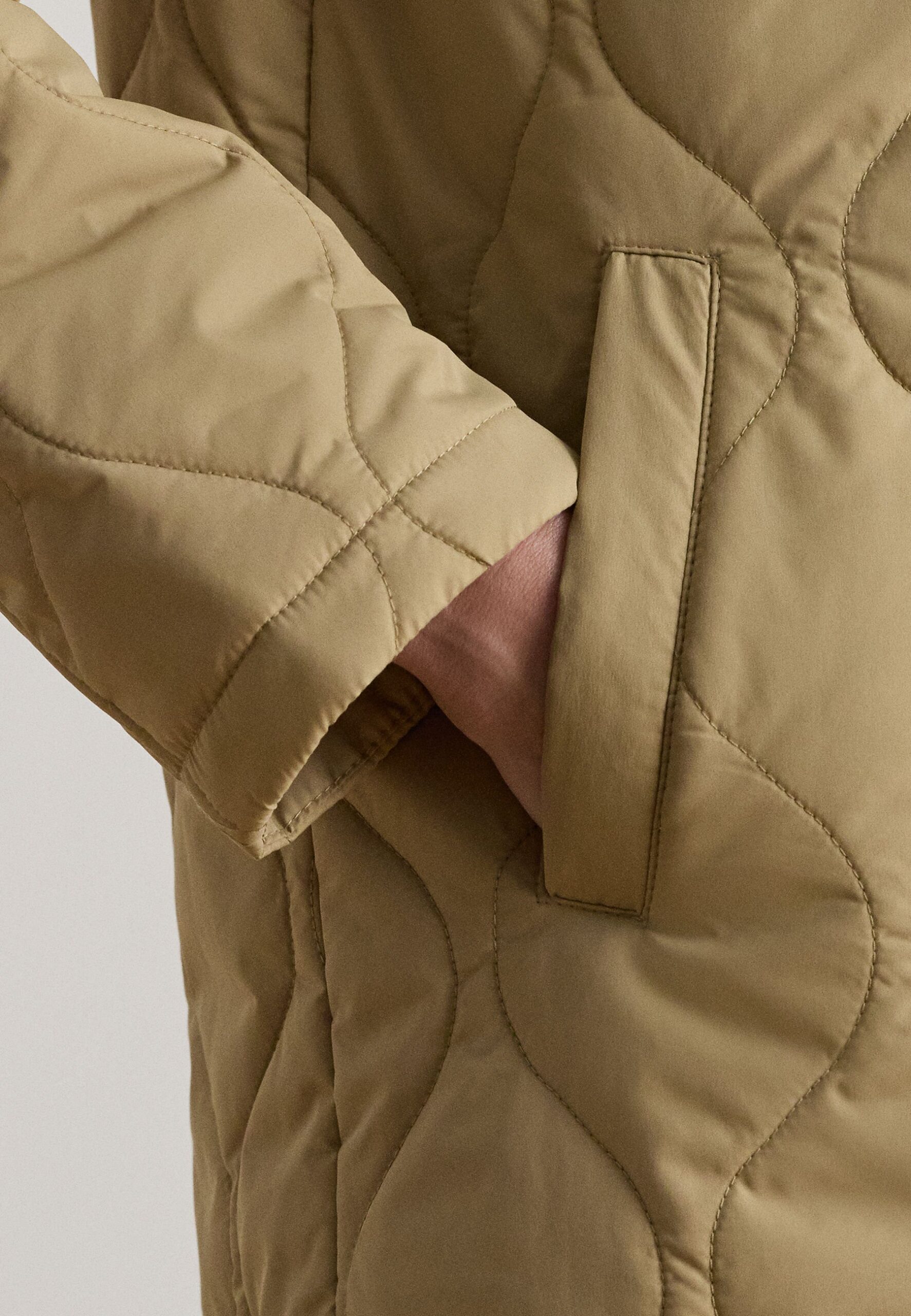 TWILL-TRIM ONION-QUILTED HOODED JACKET – Winter coat – birch tan