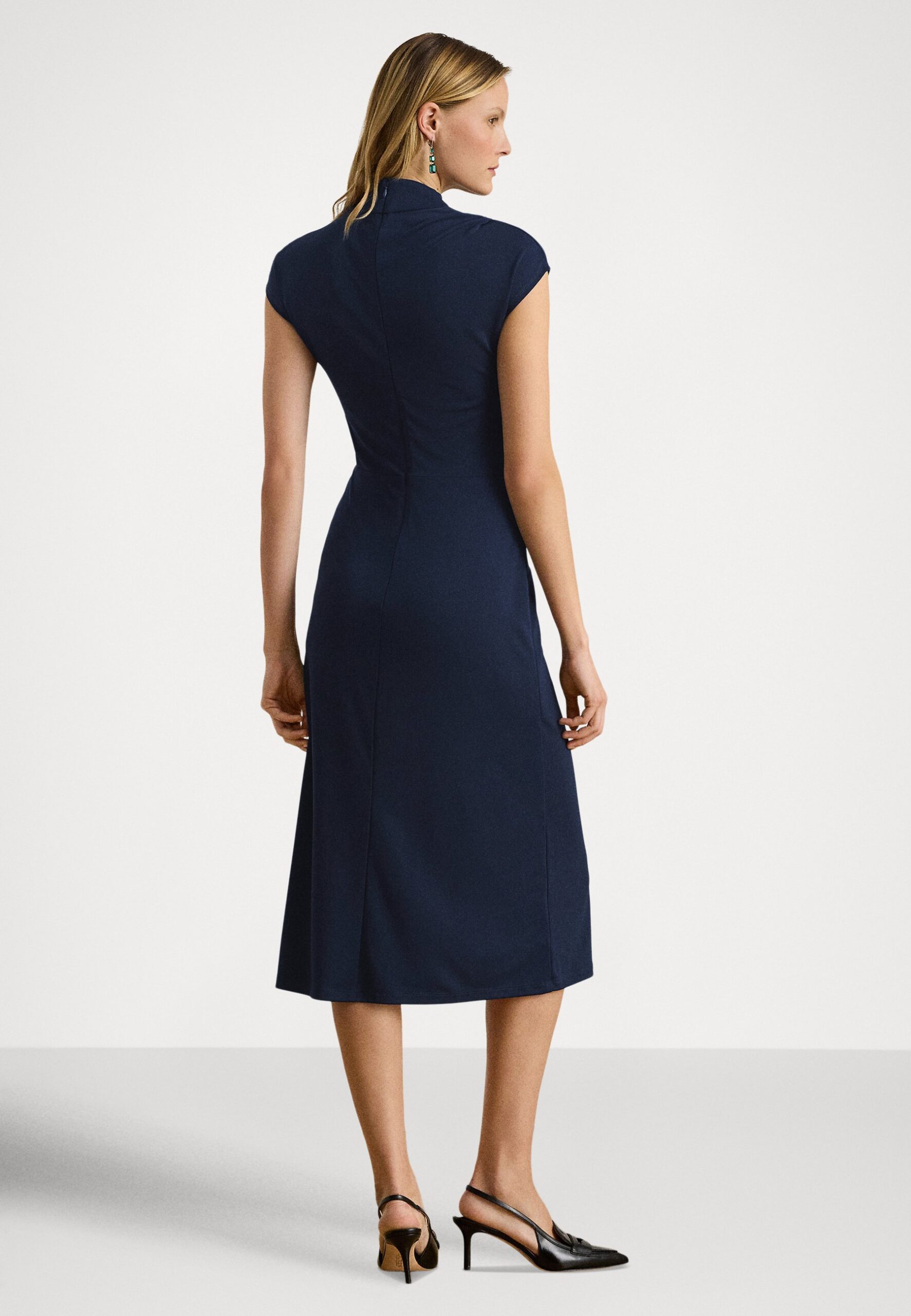 TWIST-FRONT JERSEY MOCKNECK DRESS – Jersey dress – navy
