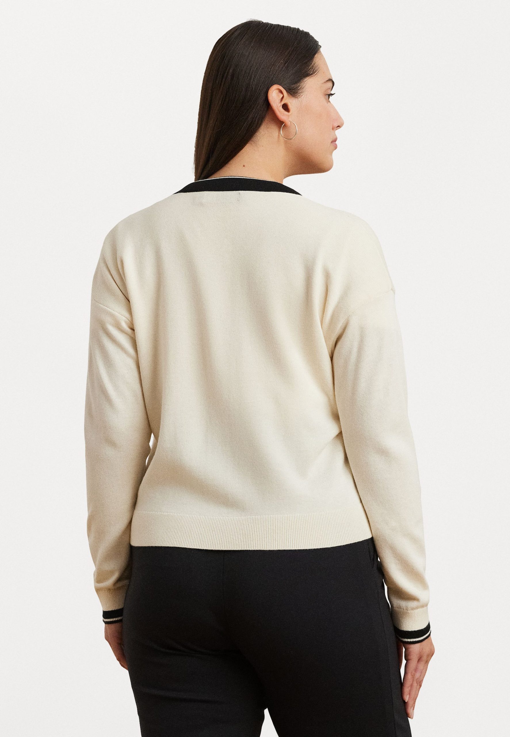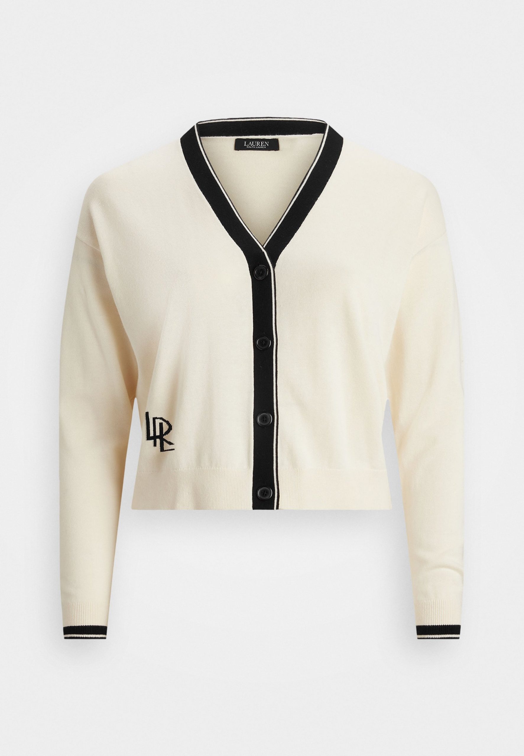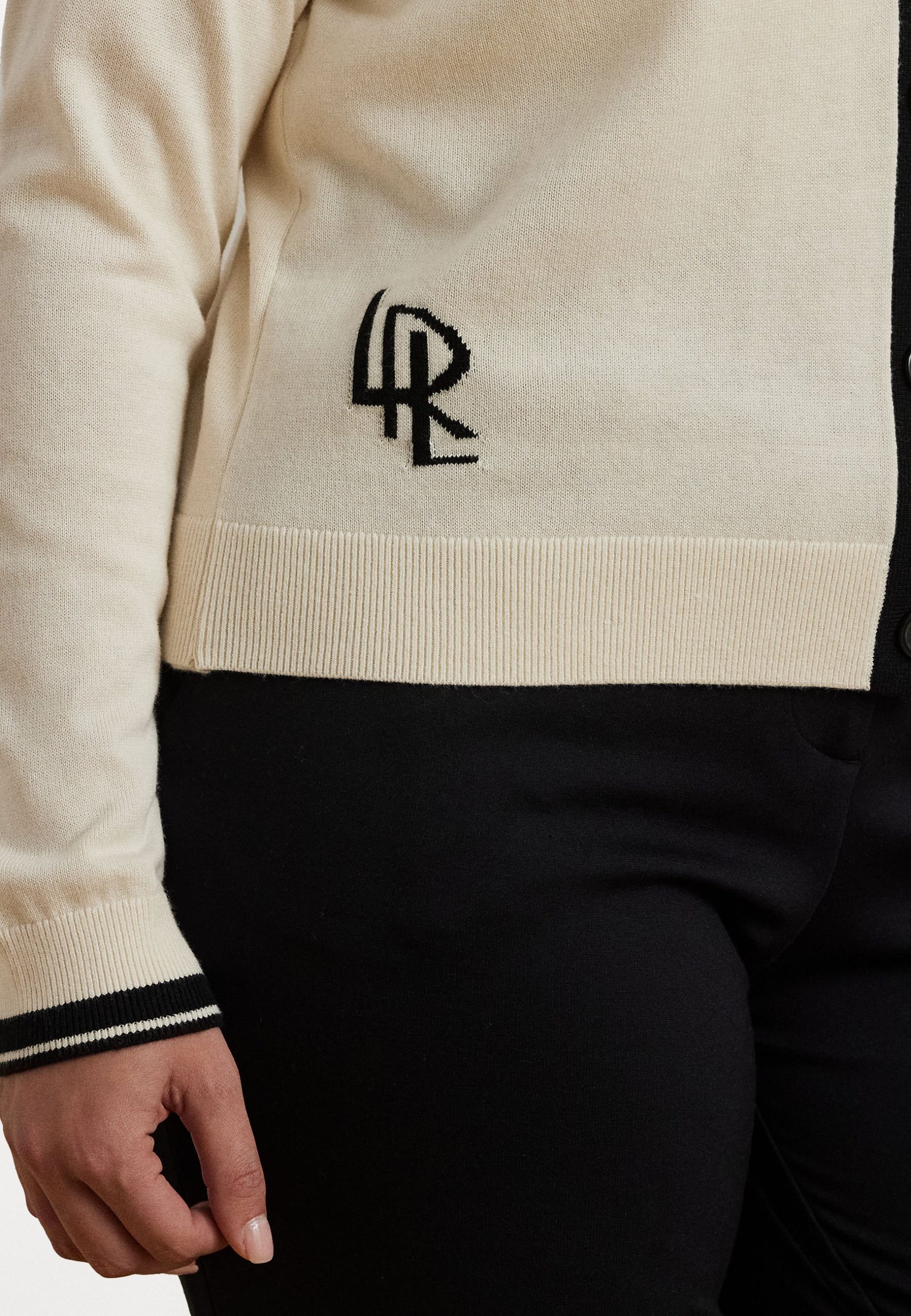 TWO-TONE COTTON-BLEND CARDIGAN – Cardigan – mascarpone cream/black