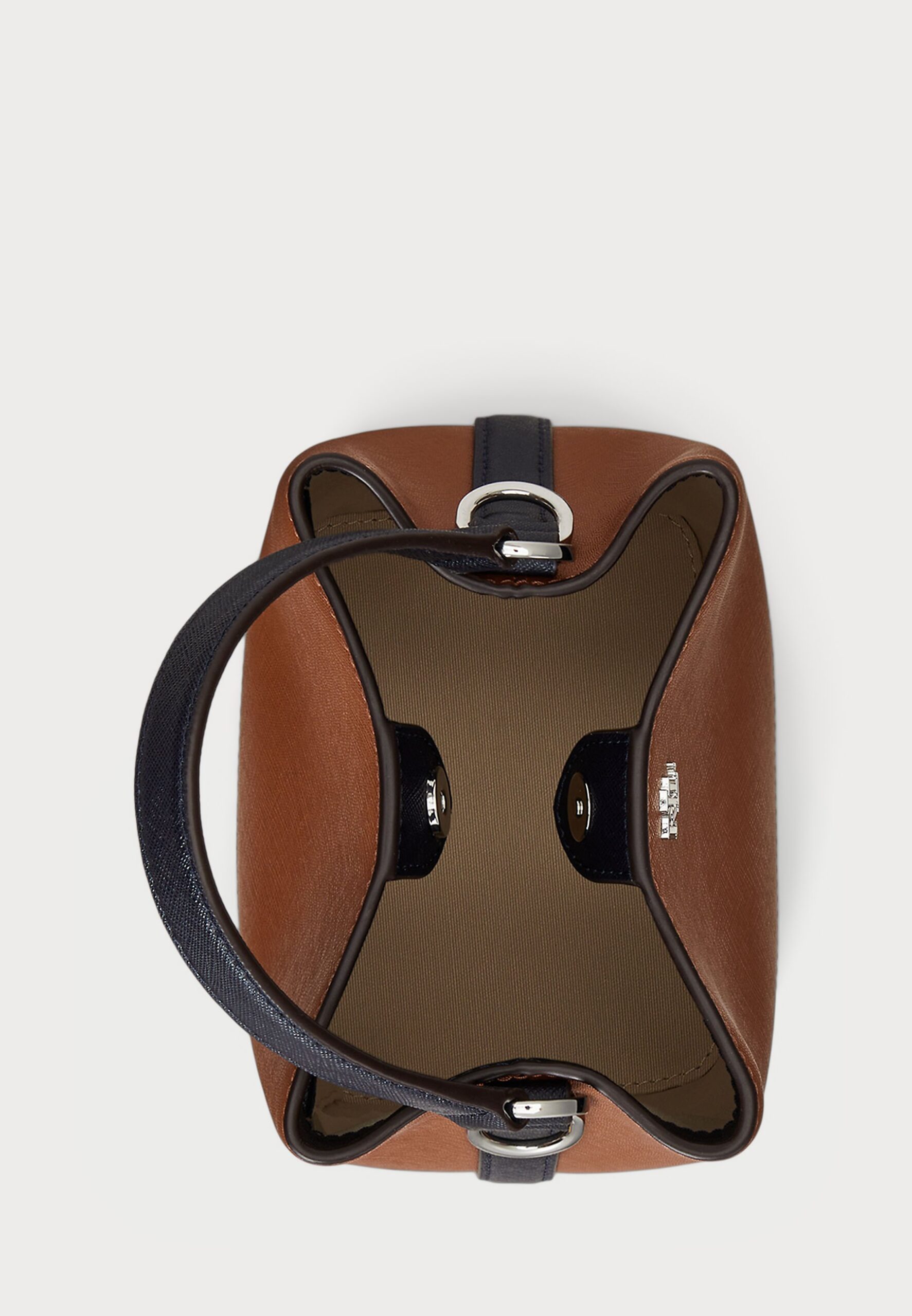 TWO-TONE LEATHER SMALL REESE BUCKET BAG – Handbag – tan/navy