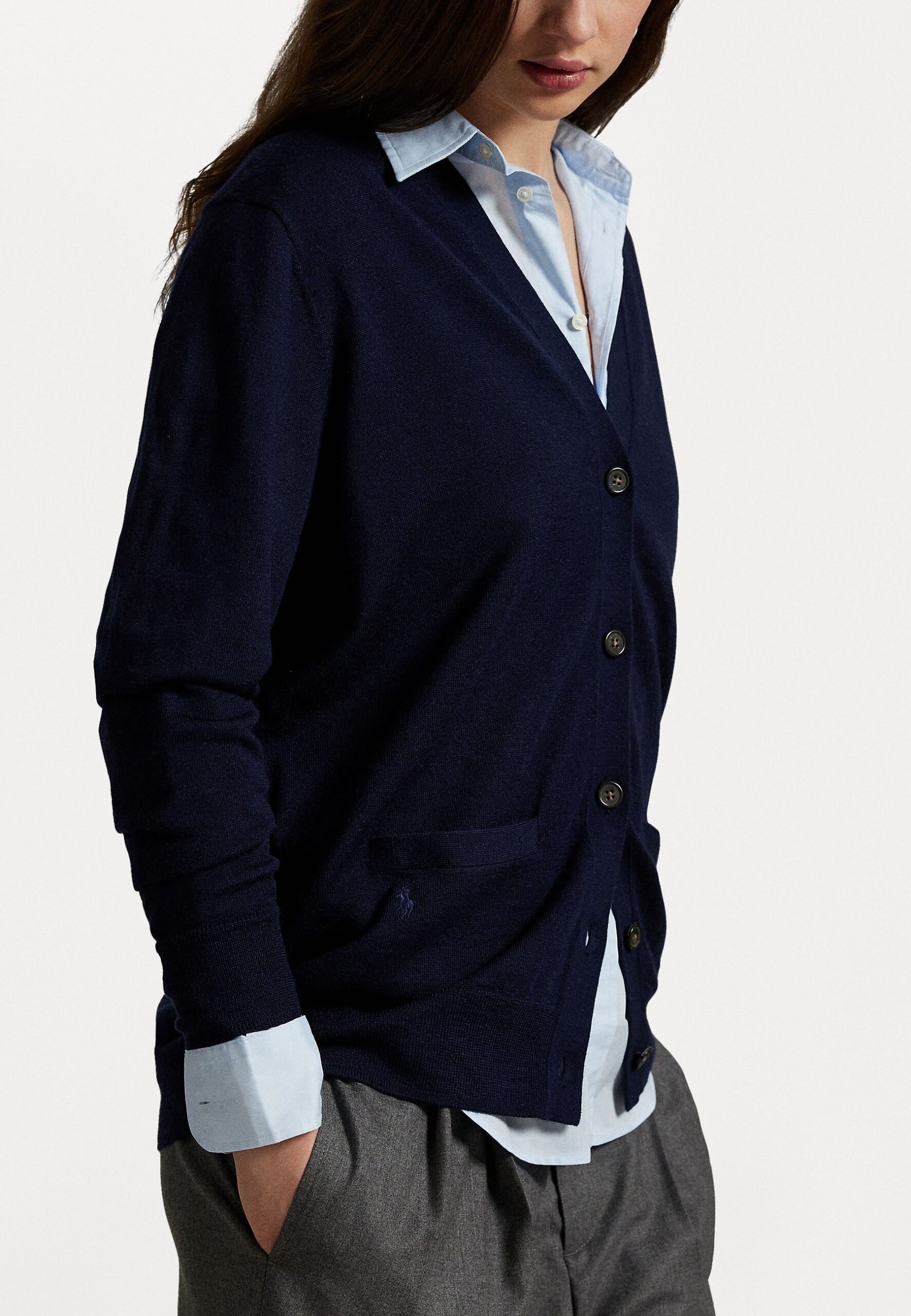 V-NECK CARDIGAN SWEATER – Cardigan – navy