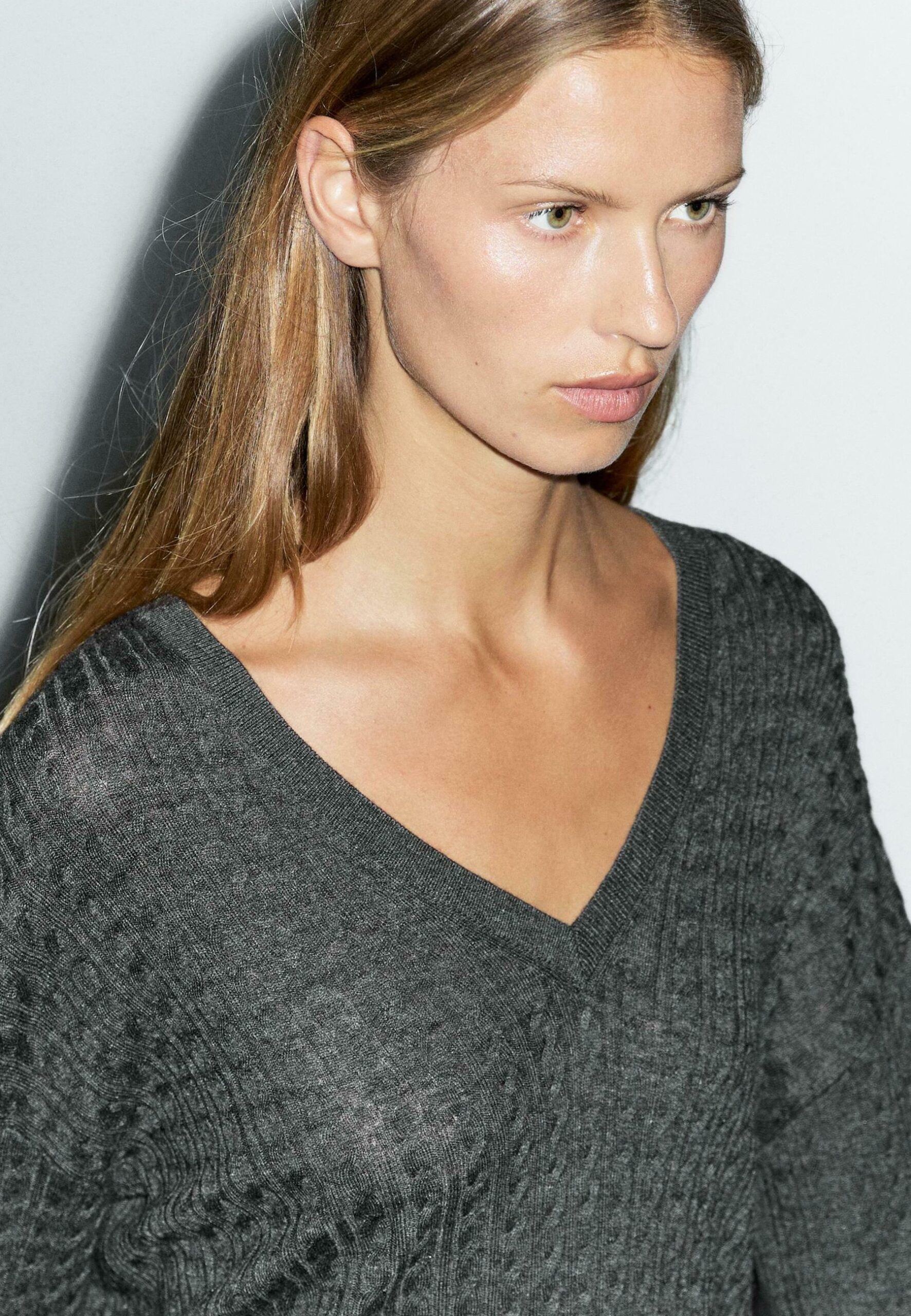 V-NECK WITH BRAIDED DETAIL – Jumper – grey