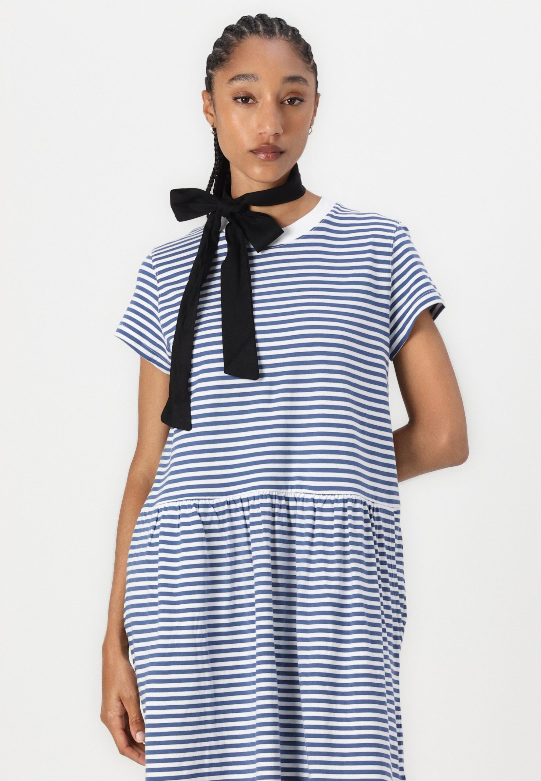 VOLANT STRIPES – Jersey dress – medium blue