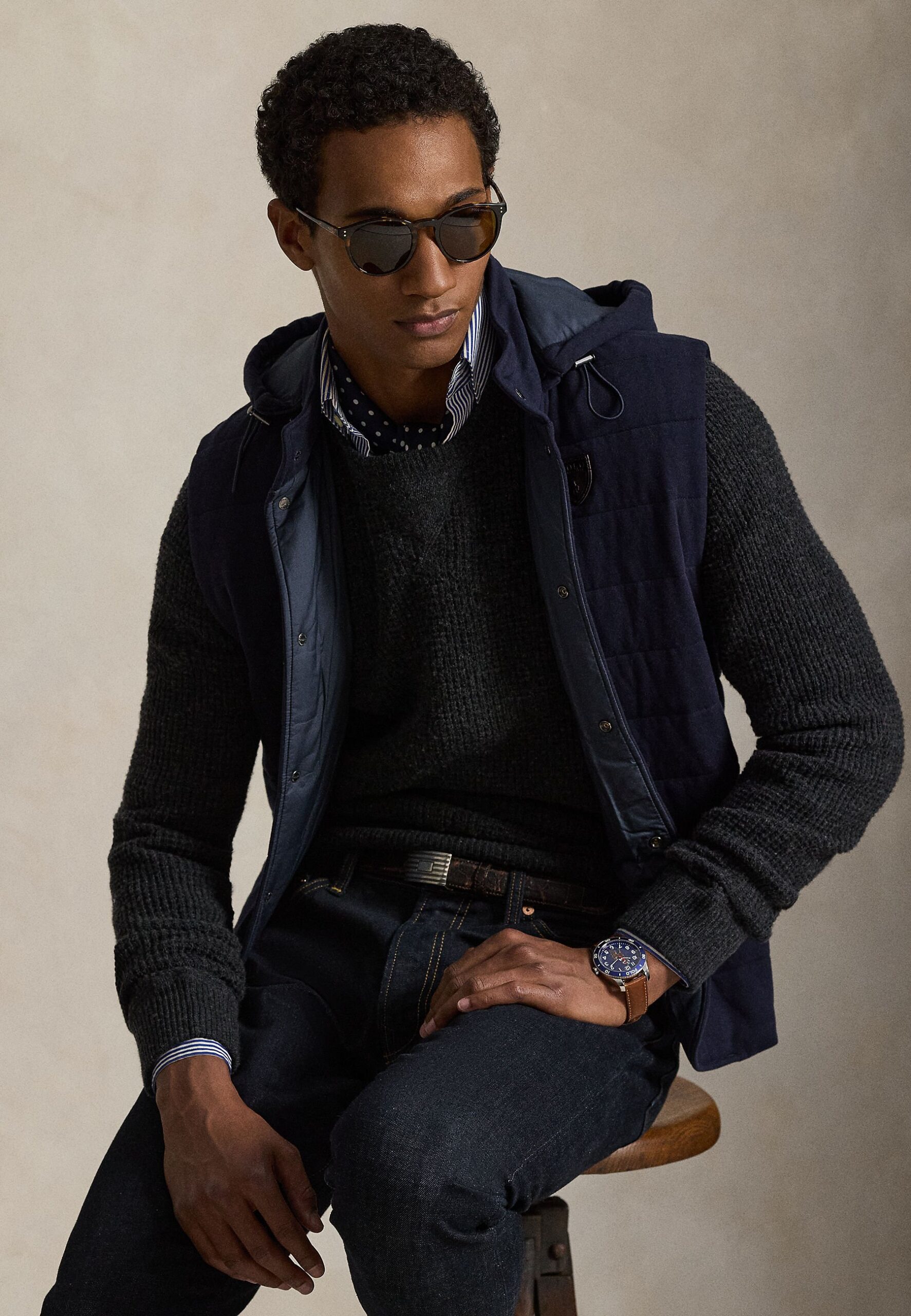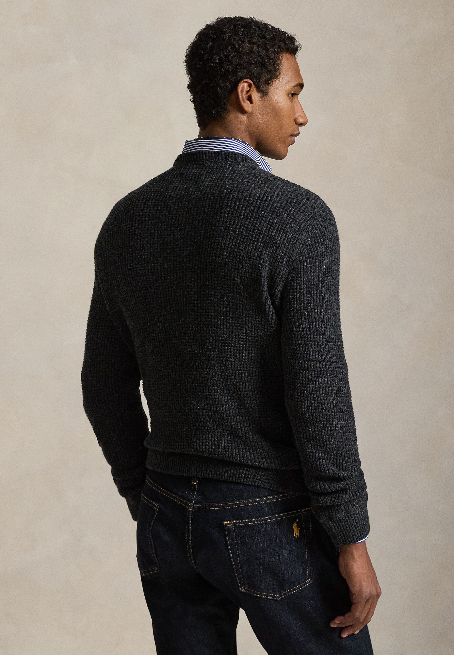 WAFFLE-KNIT WOOL-COTTON SWEATER – Jumper – mottled dark grey