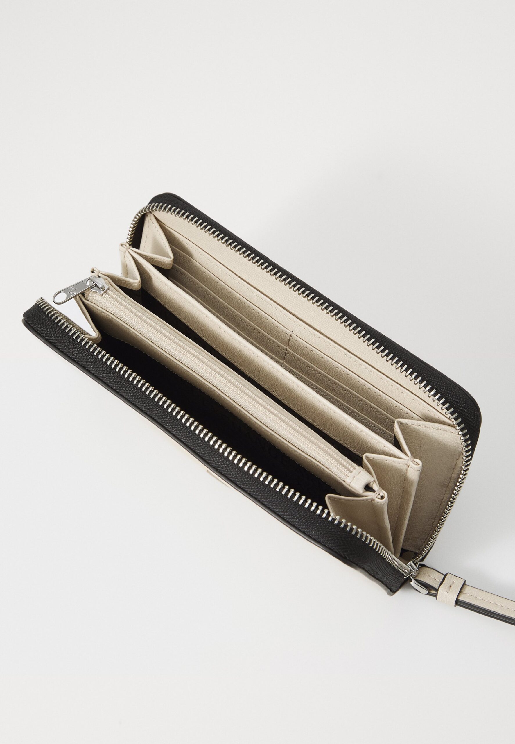 Slip compartment, zip compartment, note compartment, card slots |