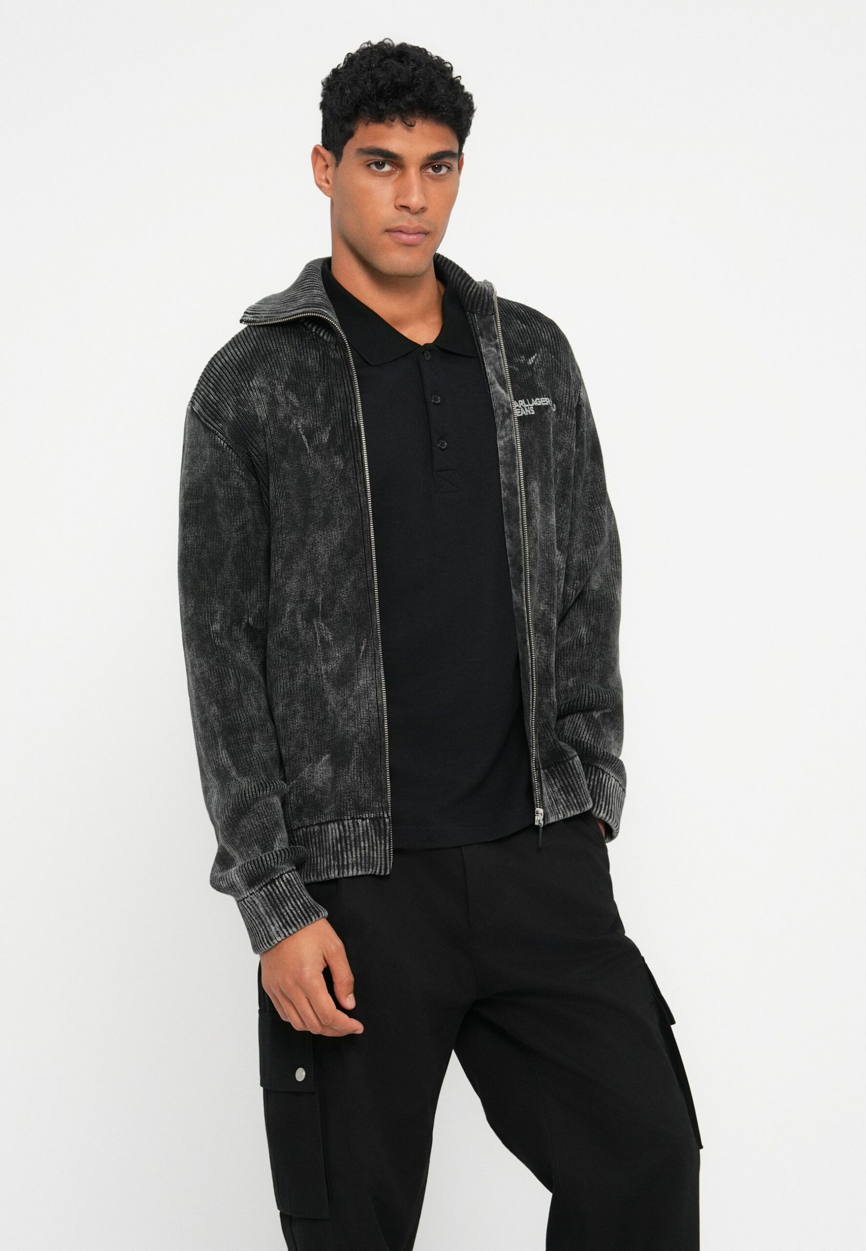 WASHED ZIP-UP – Cardigan – black