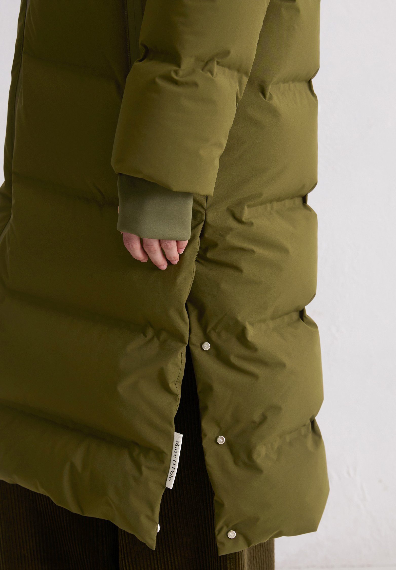 WATER-REPELLENT FABRIC AND DETAILS WITH HOOD SIDE SLITS – Down coat – mossy olive