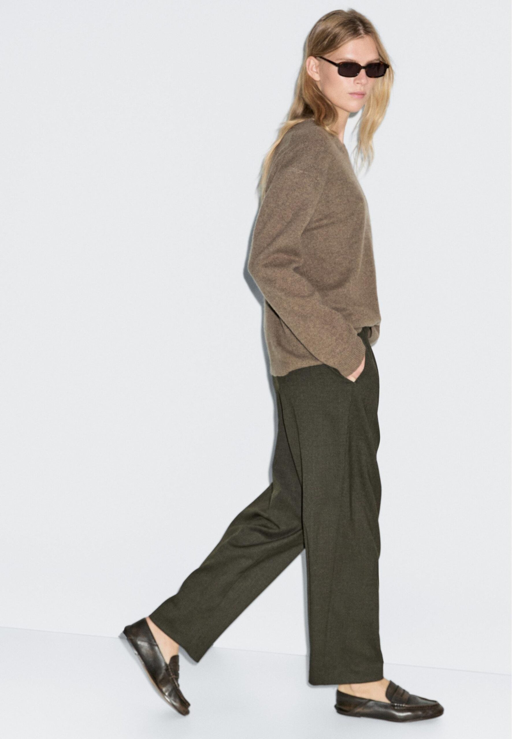 WIDE AND ELASTICATED WAISTBAND – Trousers – dark green