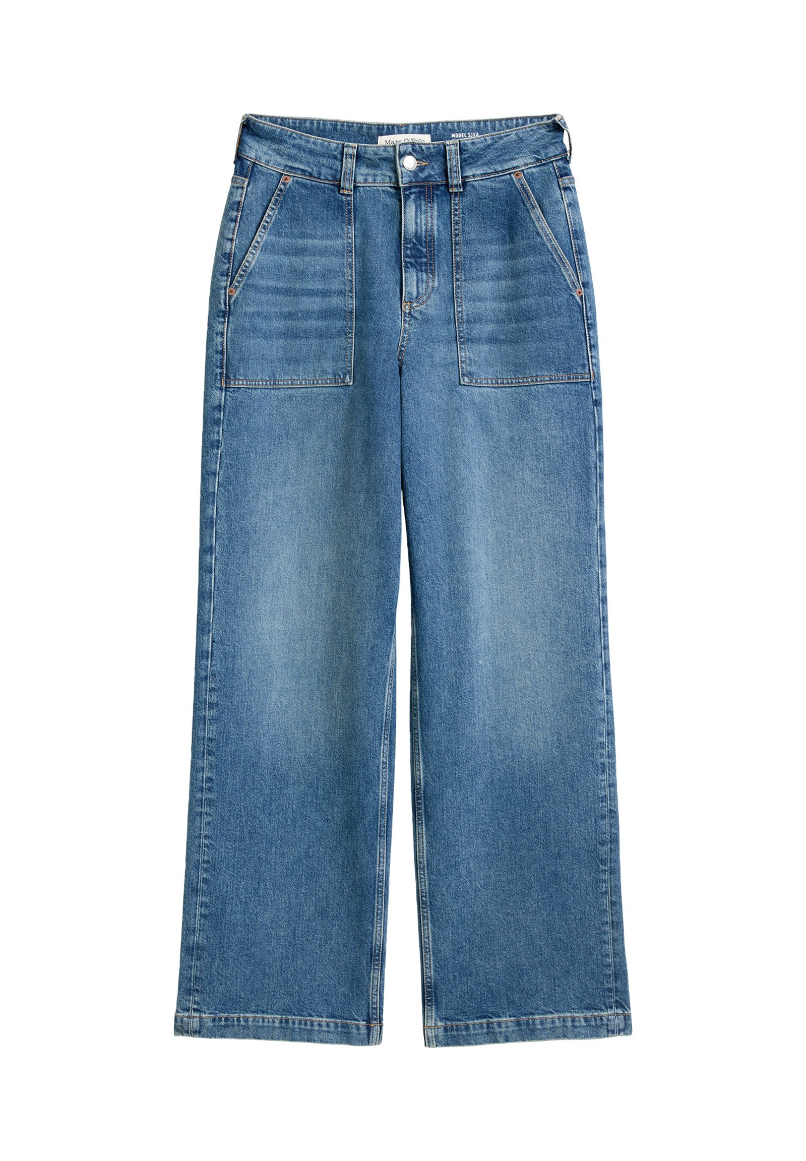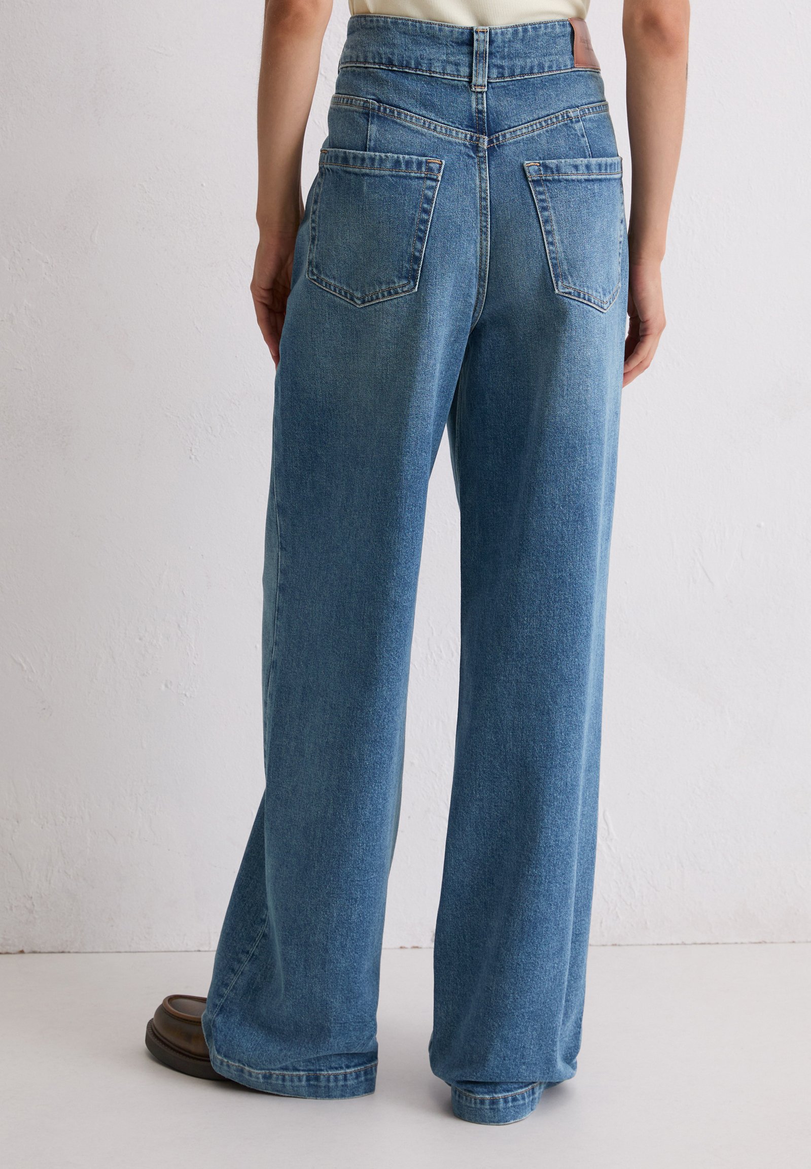 WIDE FIT REGULAR LENGTH HIGH WAIST PATCHED POCKETS DARTS – Wide Leg – tinted vintage blue wash