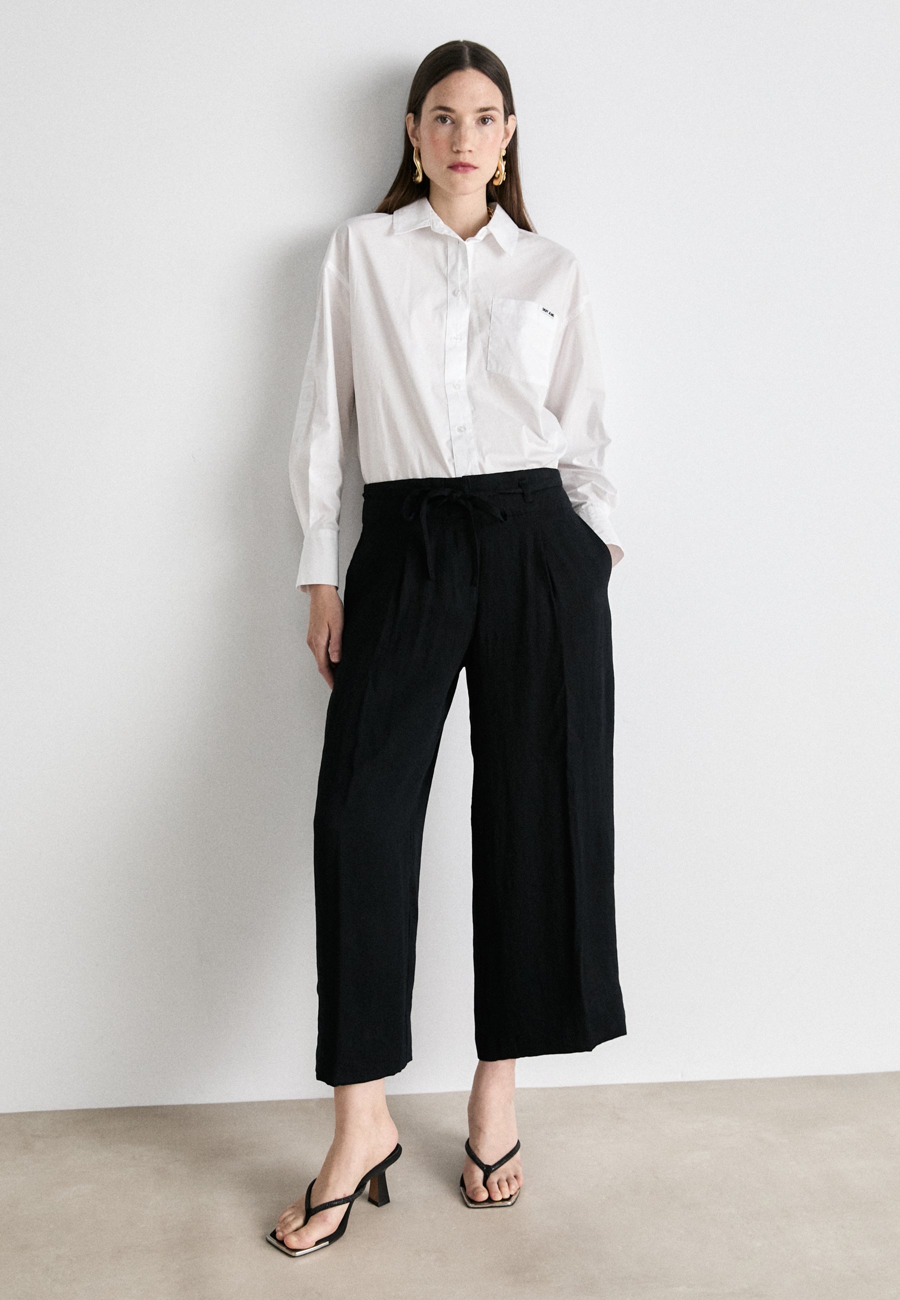 WIDE LEG PANT TIE WAIST – Trousers – black