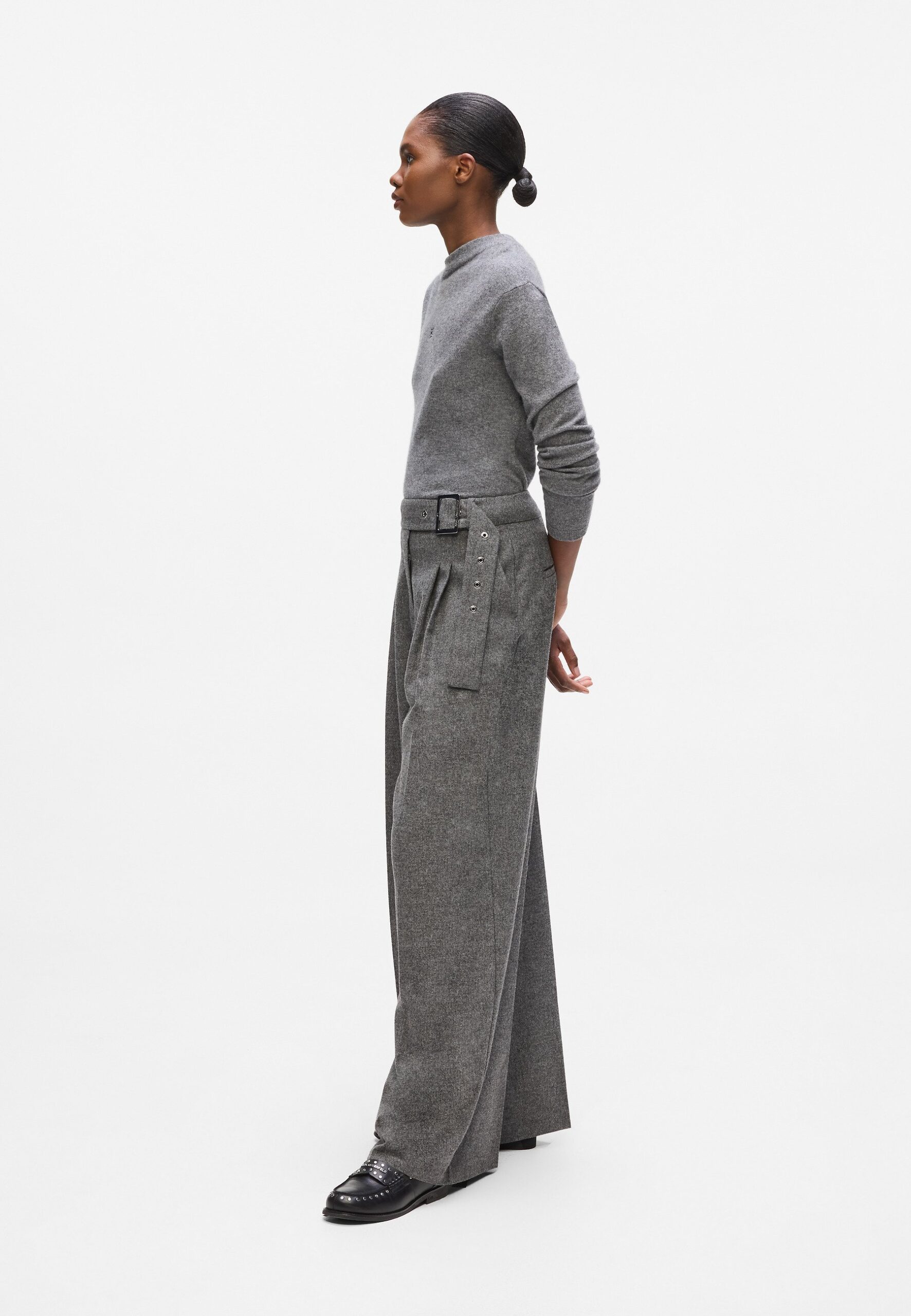 WIDE LEG – Trousers – medium grey melange