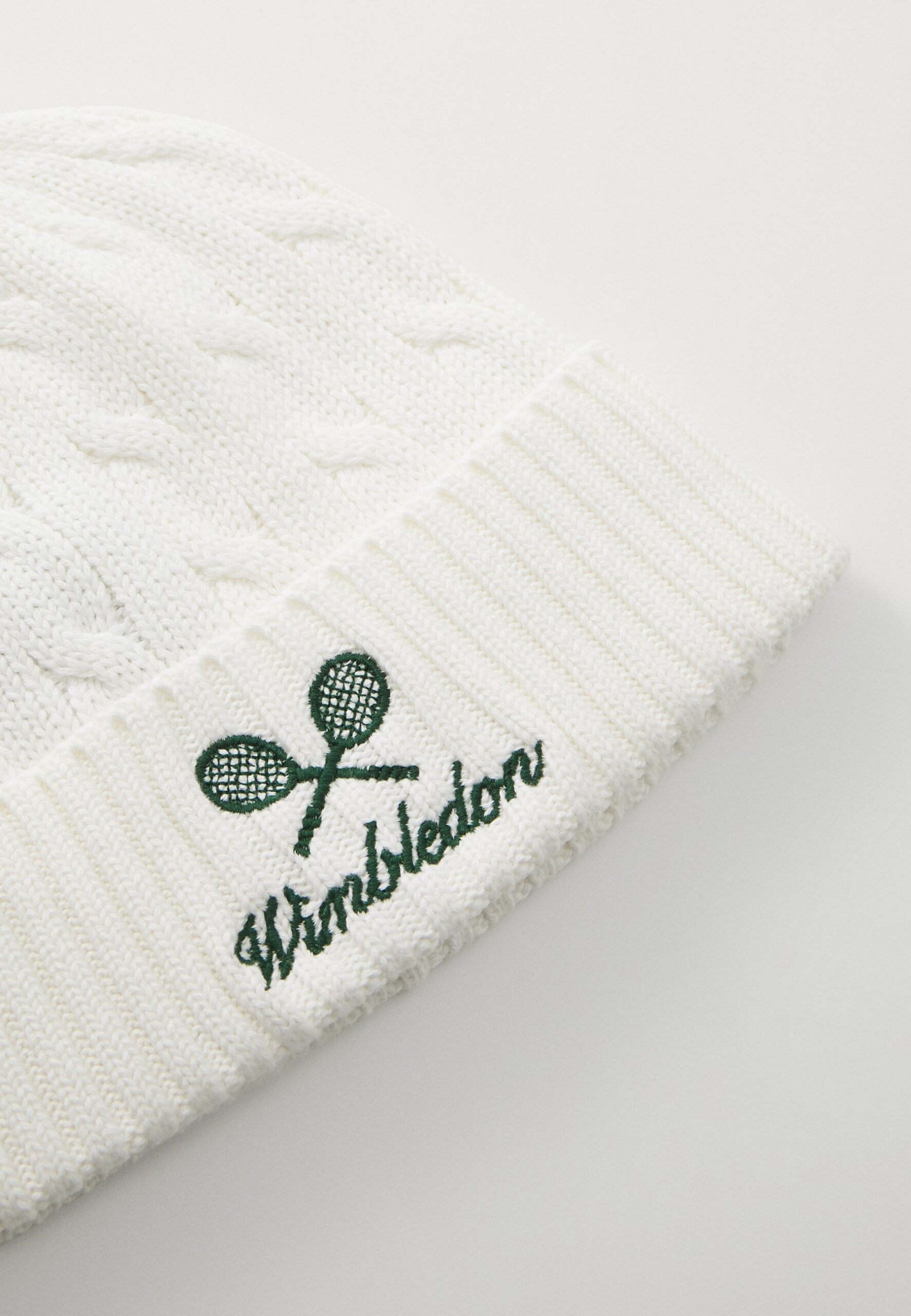 WIMBLEDON CABLE KNIT LOGO BEANIE – Beanie – cream